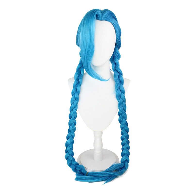 1.2m LOL Jinx Wig Synthetic Long Short Straight Women Blue Heat Resistant Game Cosplay Party Hair Wig