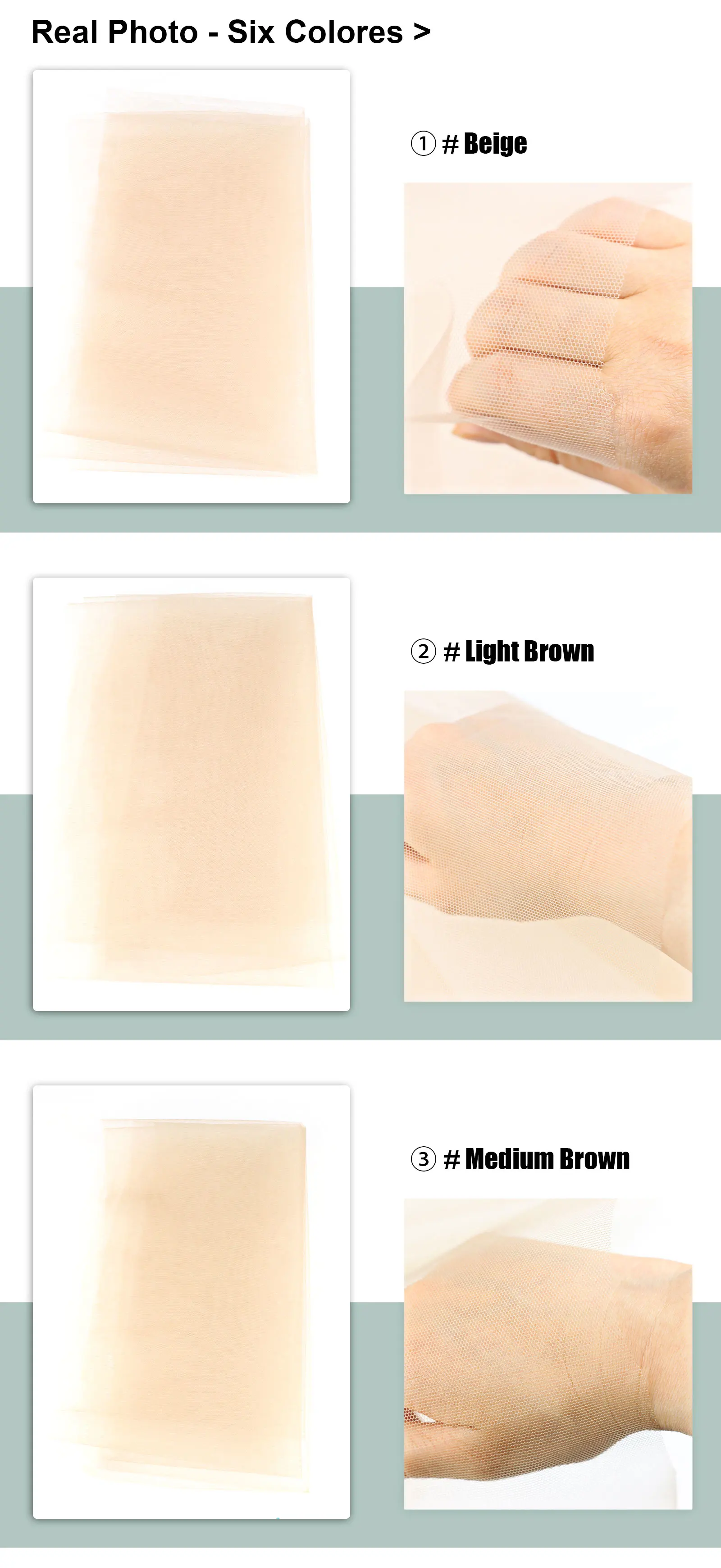 6 colors are available for you to choose.One yard size is 90cm x 120cm.Great quality lace is more sturdy,easy to create your own full lace wigs, toupee, closures,lace frontal,simply hair ventilation.