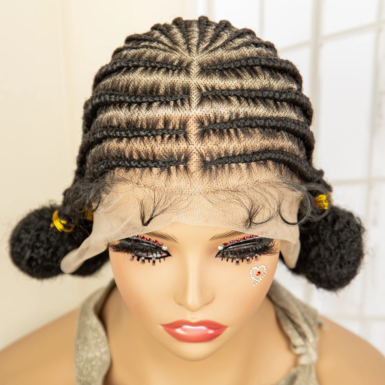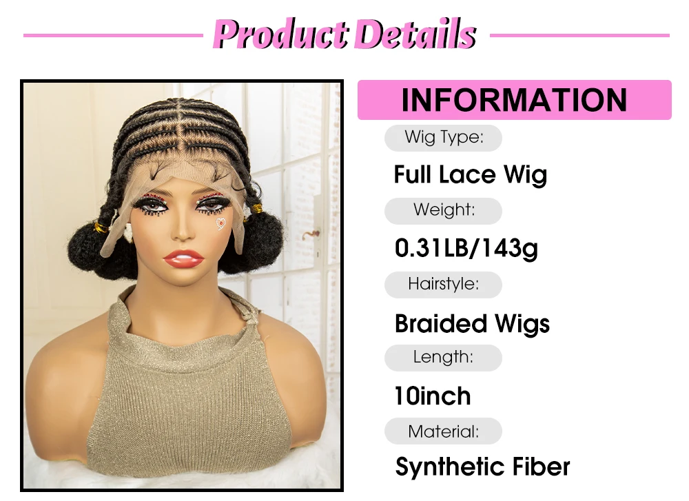 10 Inches Short Bantu Synthetic Full Lace African Cornrow Braided Wigs with Baby Hair for Black Women Knotless Braiding Wig