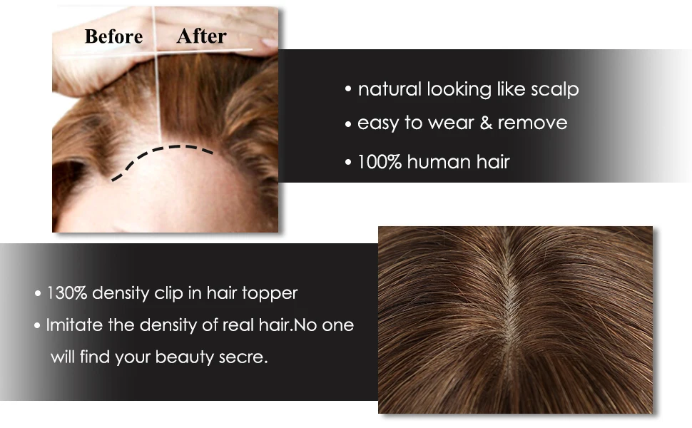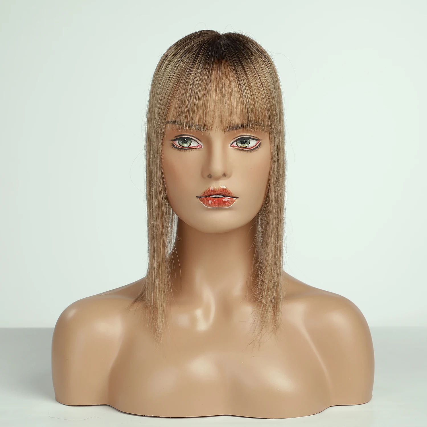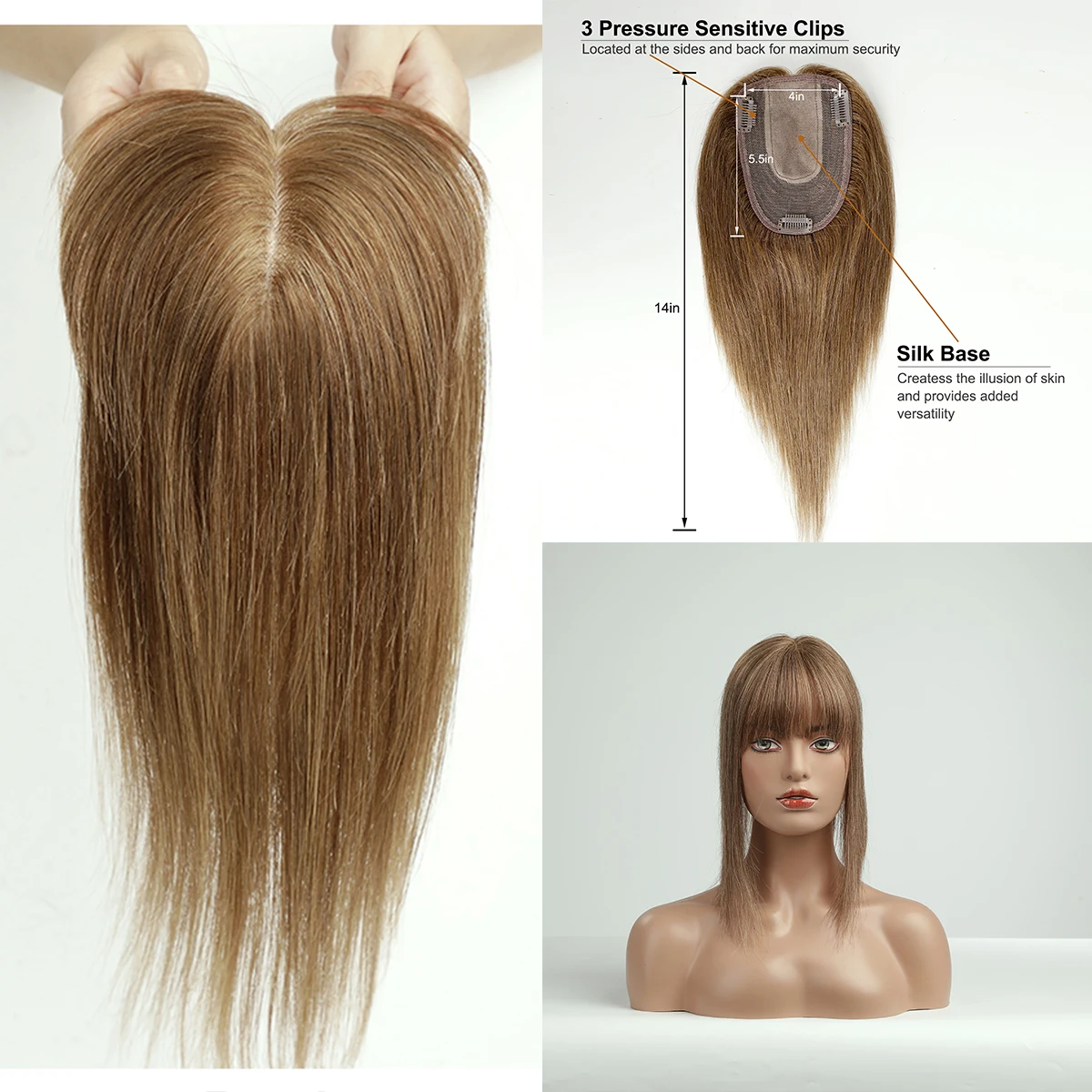 100% Remy Human Hair Toppers Ombre Brown 10 Inch Hairs Topper Wigs With Bangs Silk Base Clip Pieces in Hair Extension for Women