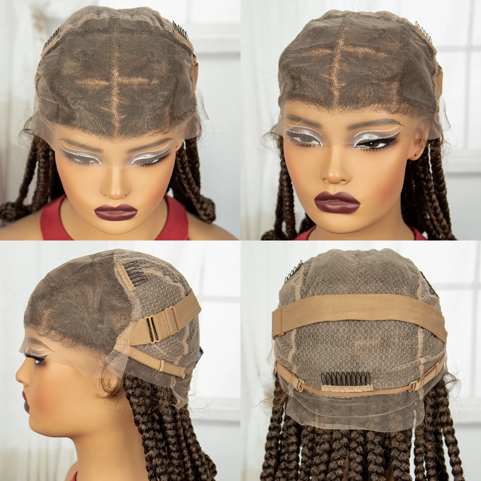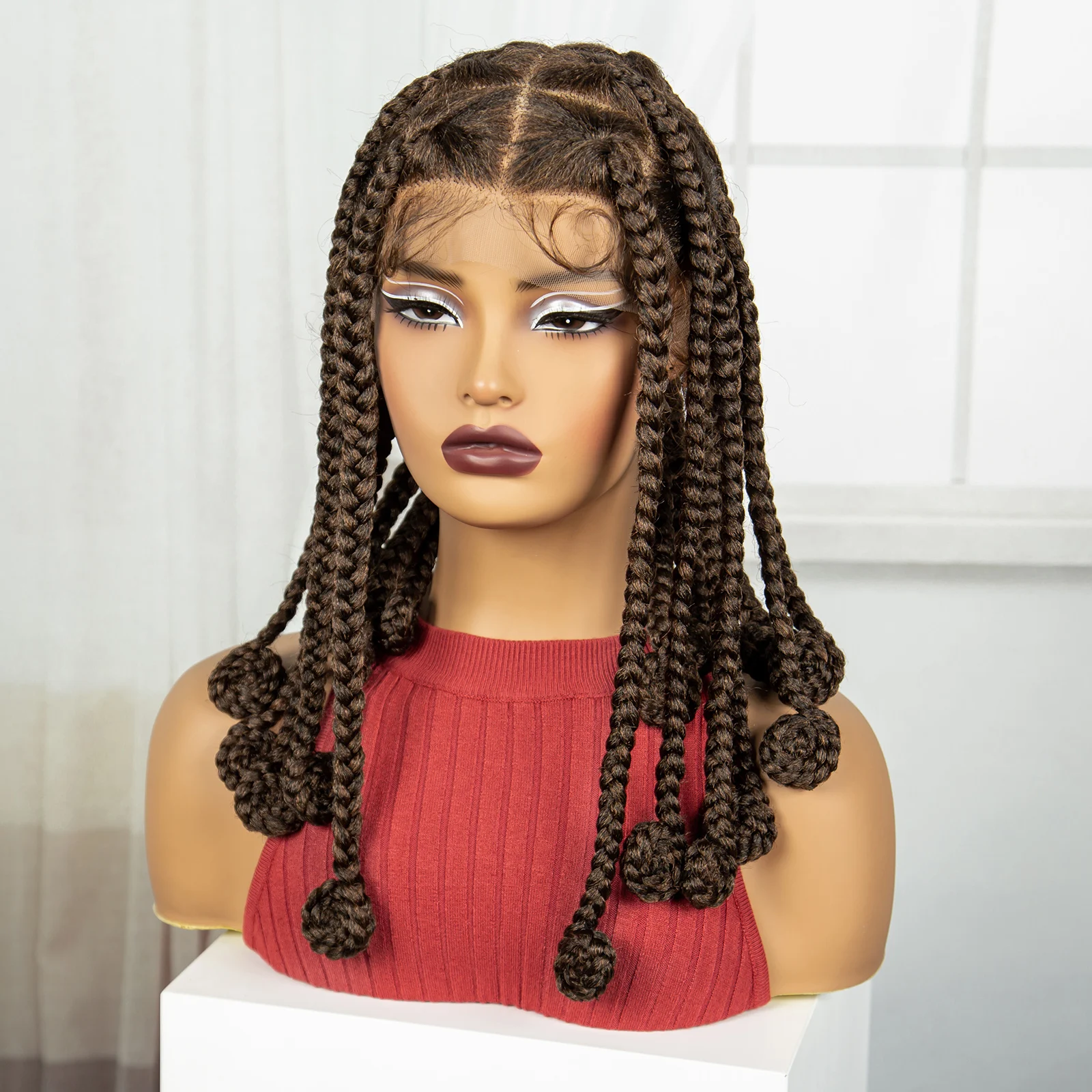 12 Inch 1B-30 Color Synthetic Braided Wigs Transparent Full Lace Hair Wigs Bantu Knotless Box Braids with Baby Hair for Women