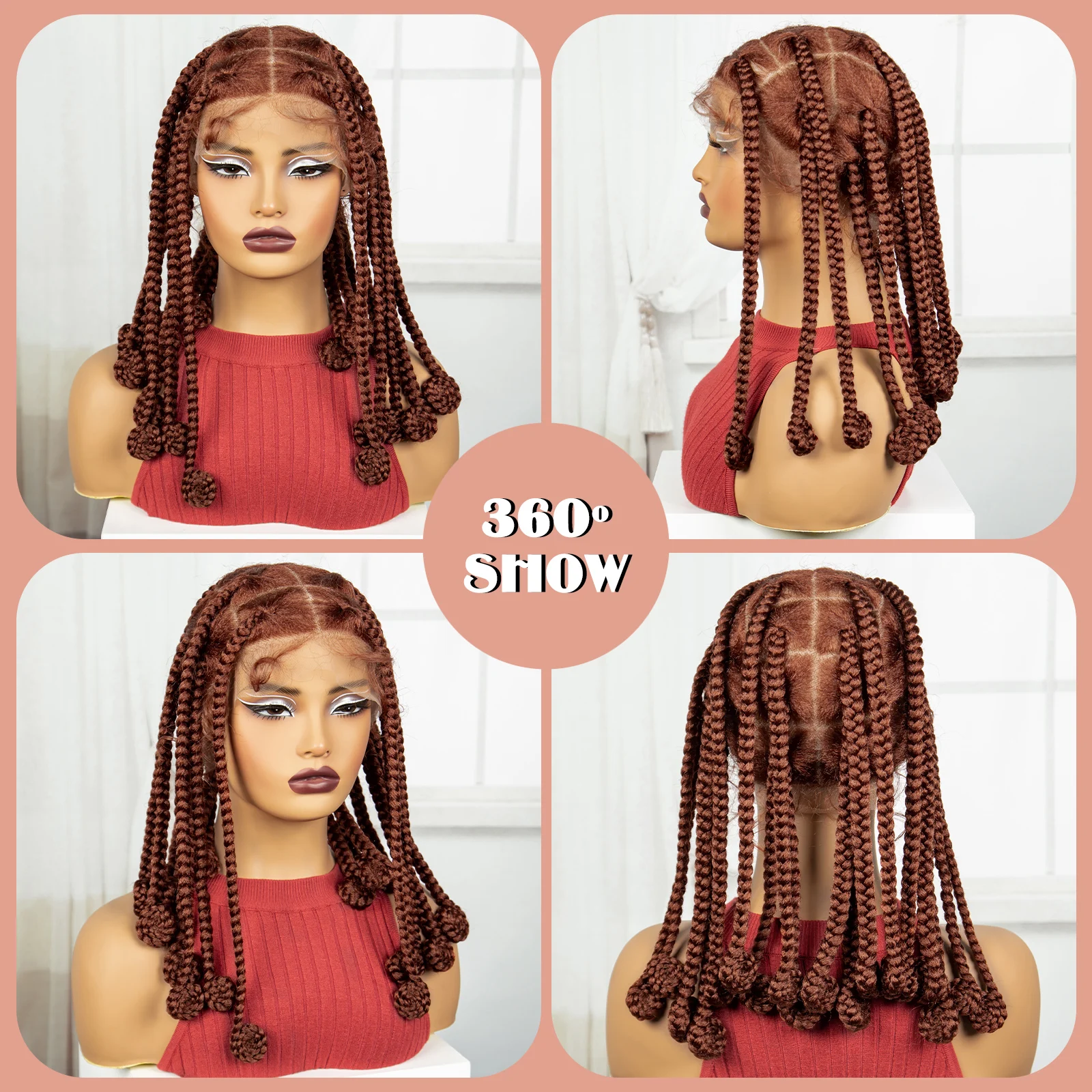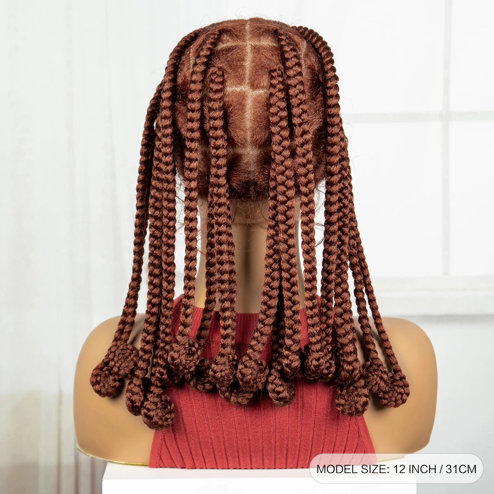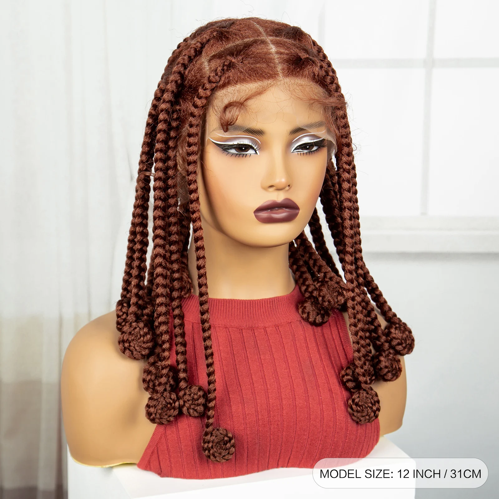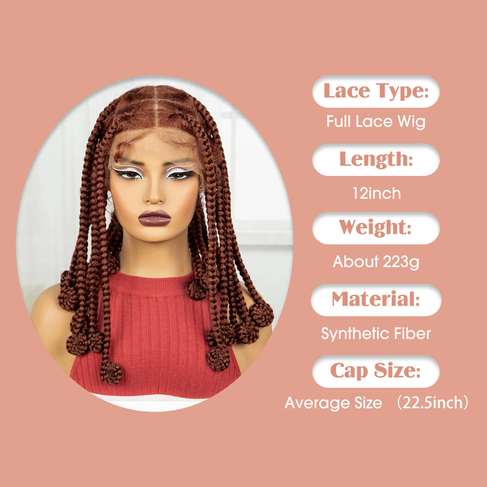 12 Inch Ginger Orange Synthetic Braided Wigs Transparent Full Lace Hair Wigs Bantu Knotless Box Braids with Baby Hair for Women