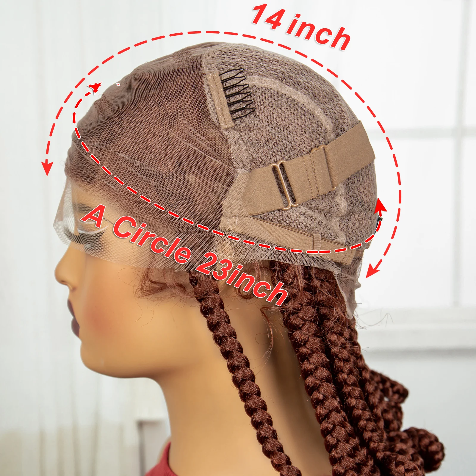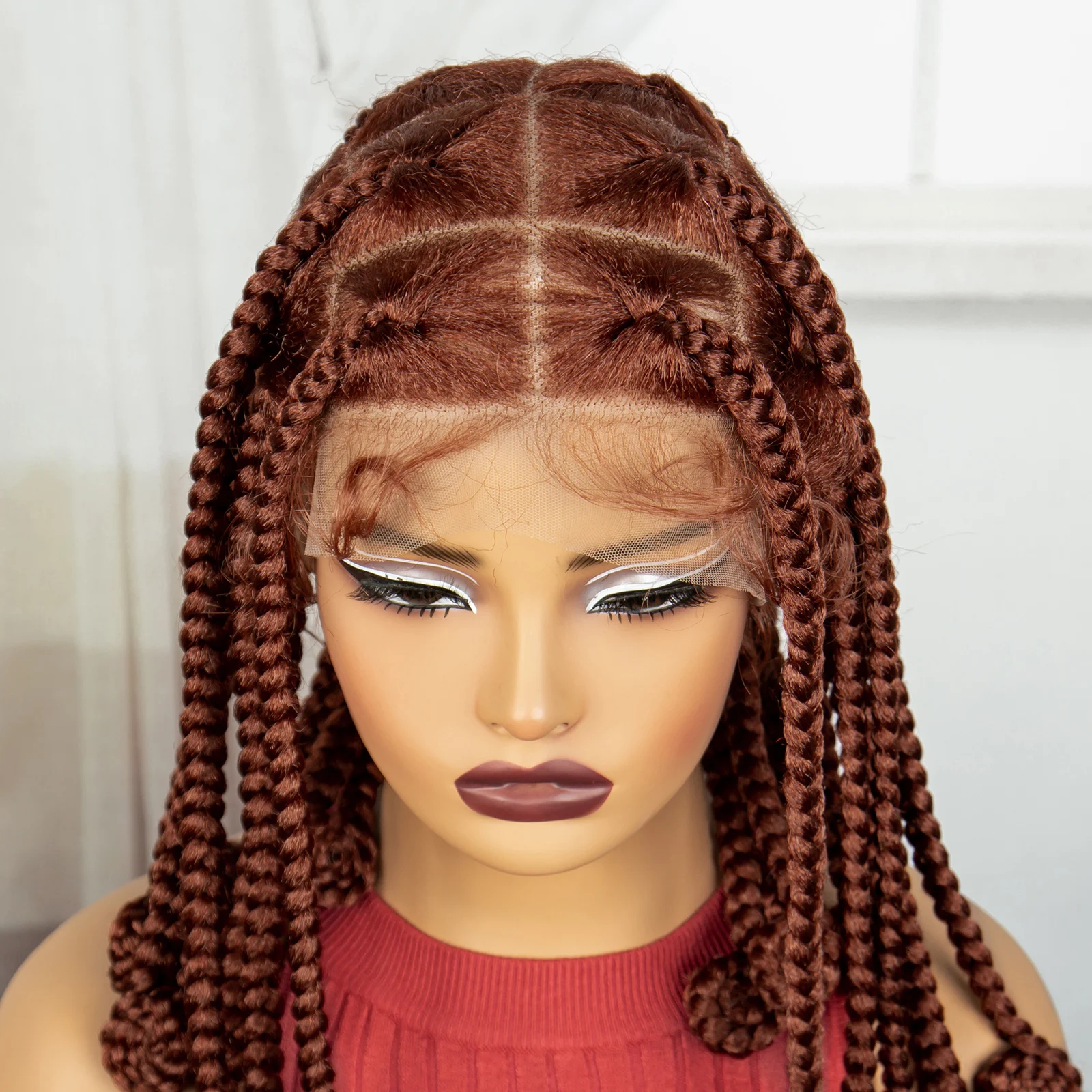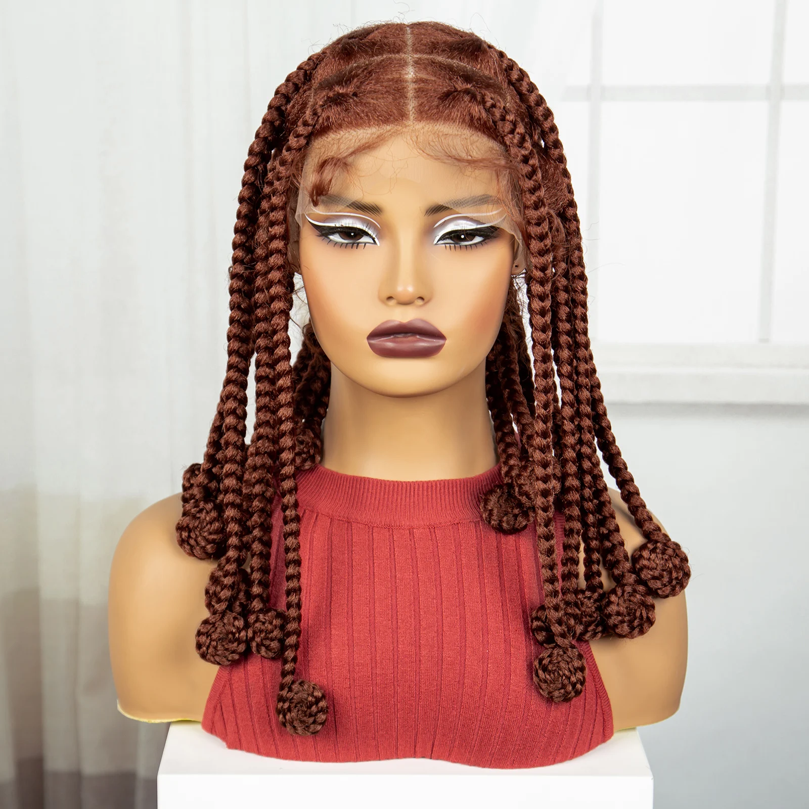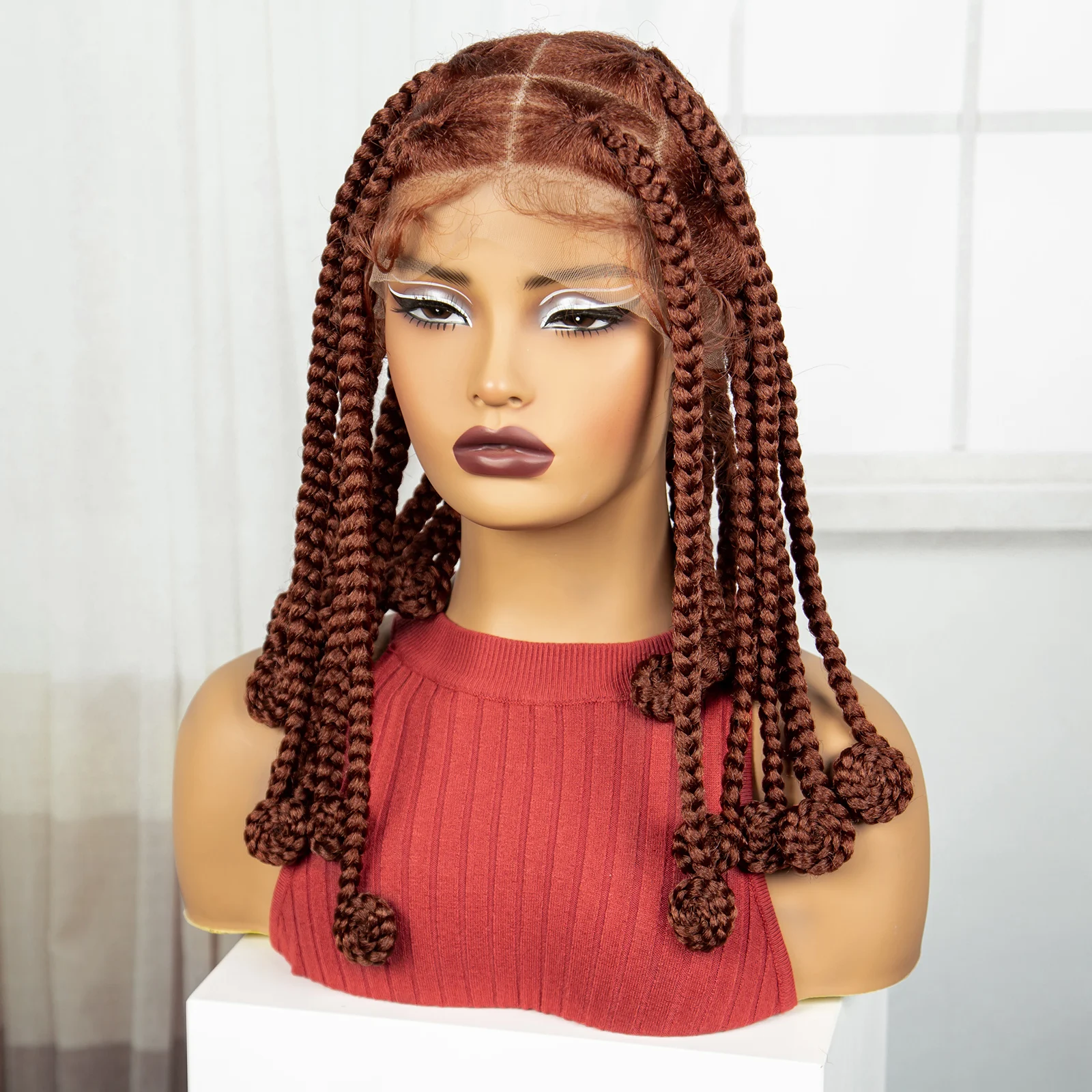 12 Inch Ginger Orange Synthetic Braided Wigs Transparent Full Lace Hair Wigs Bantu Knotless Box Braids with Baby Hair for Women