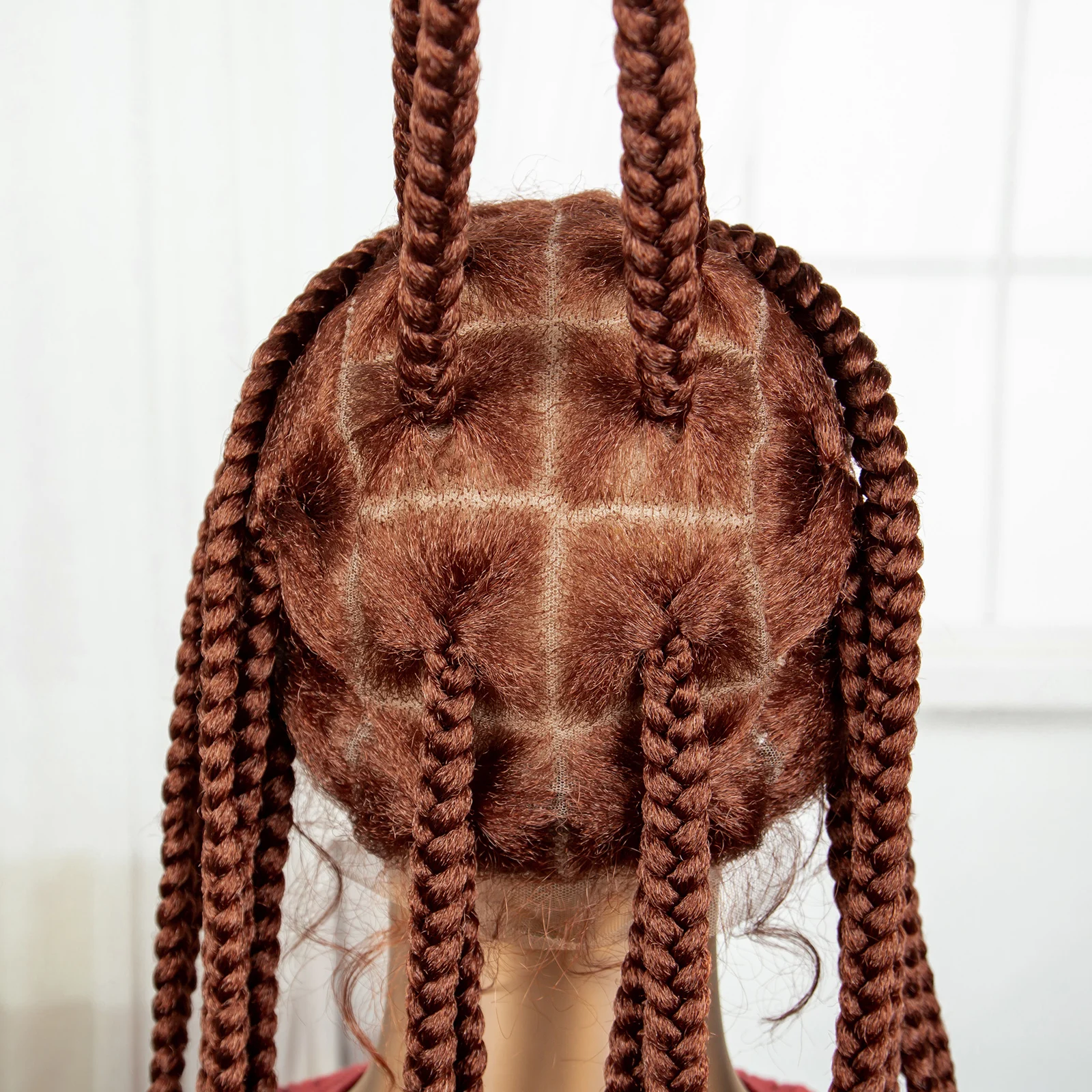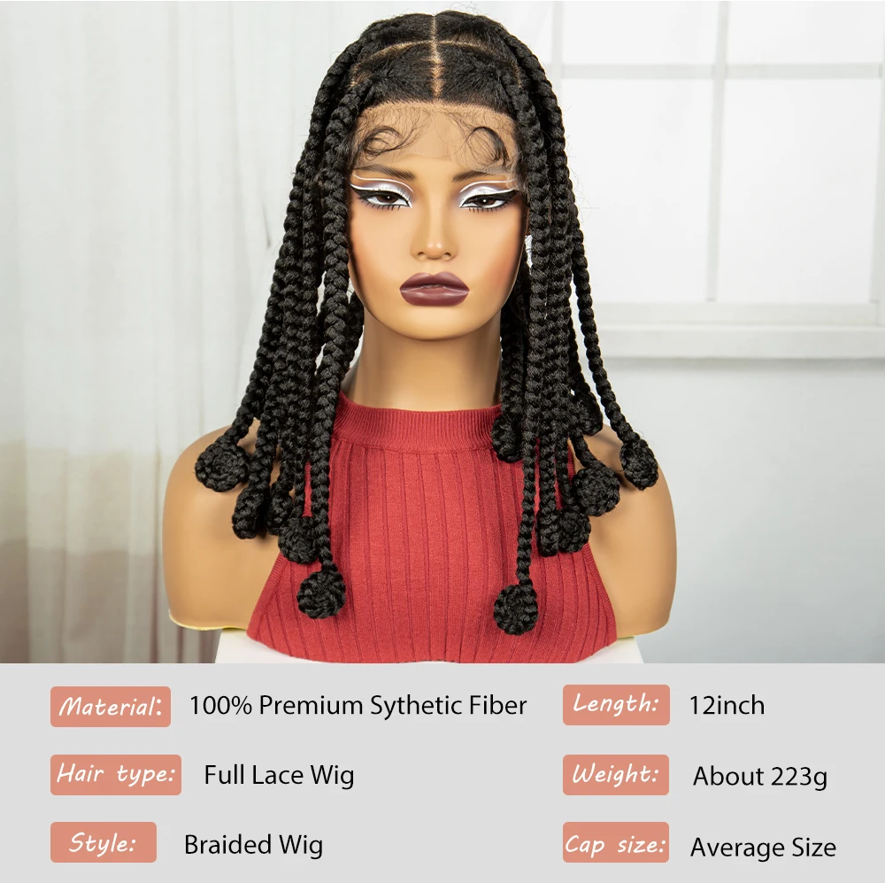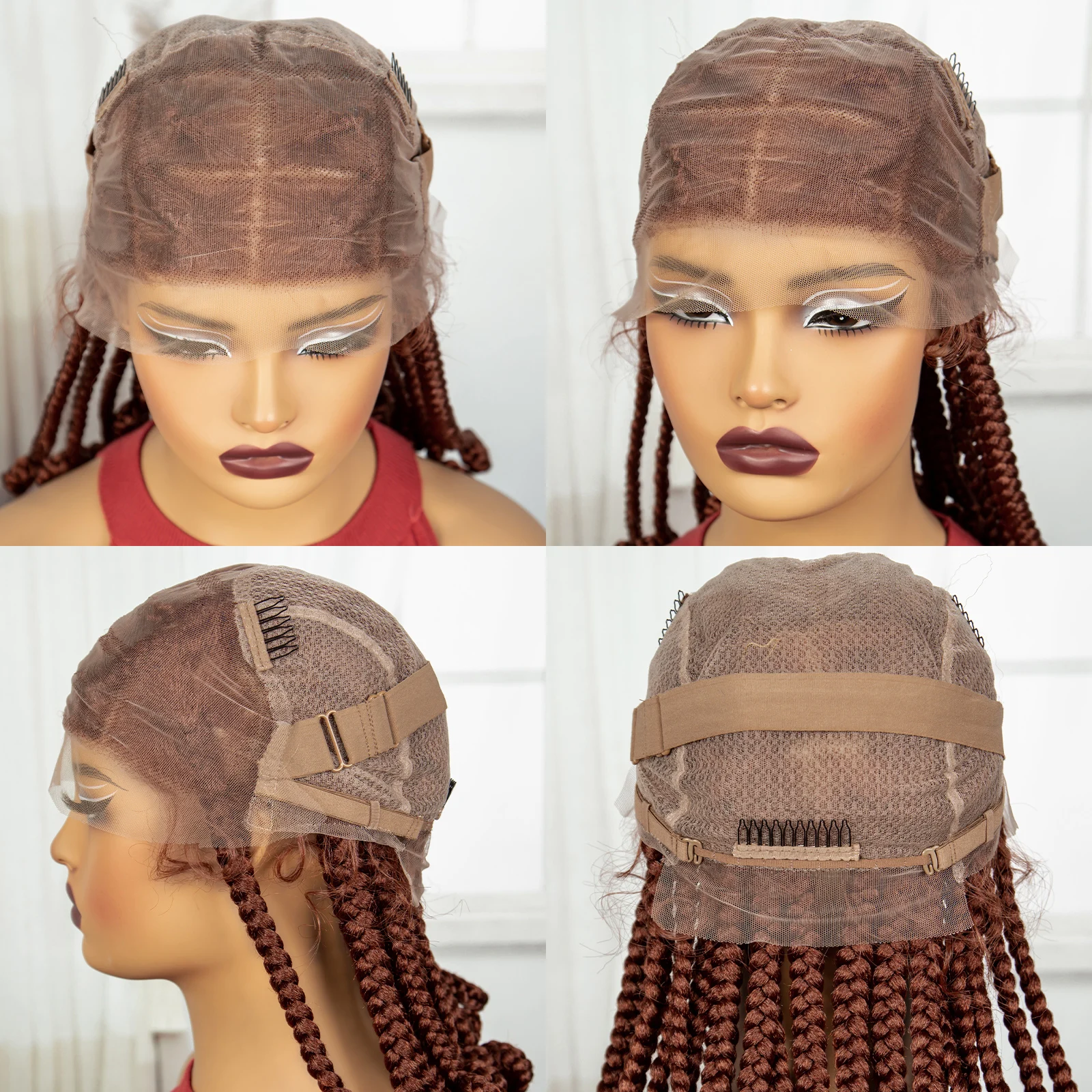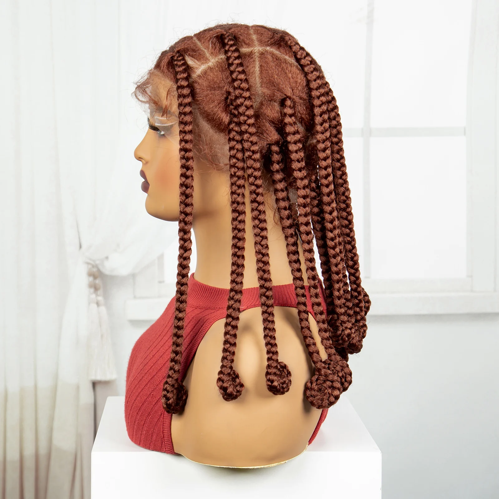 12 Inch Ginger Orange Synthetic Braided Wigs Transparent Full Lace Hair Wigs Bantu Knotless Box Braids with Baby Hair for Women
