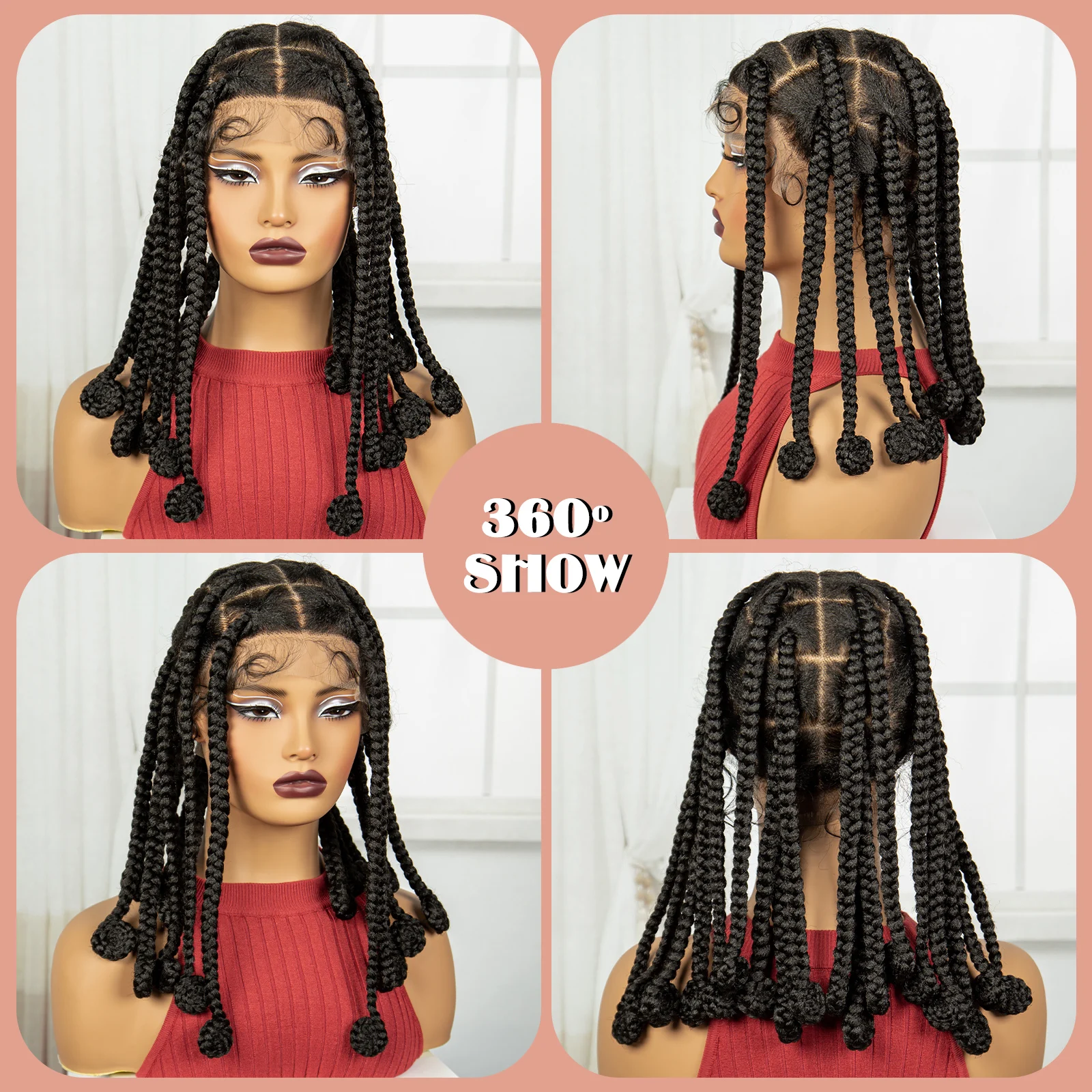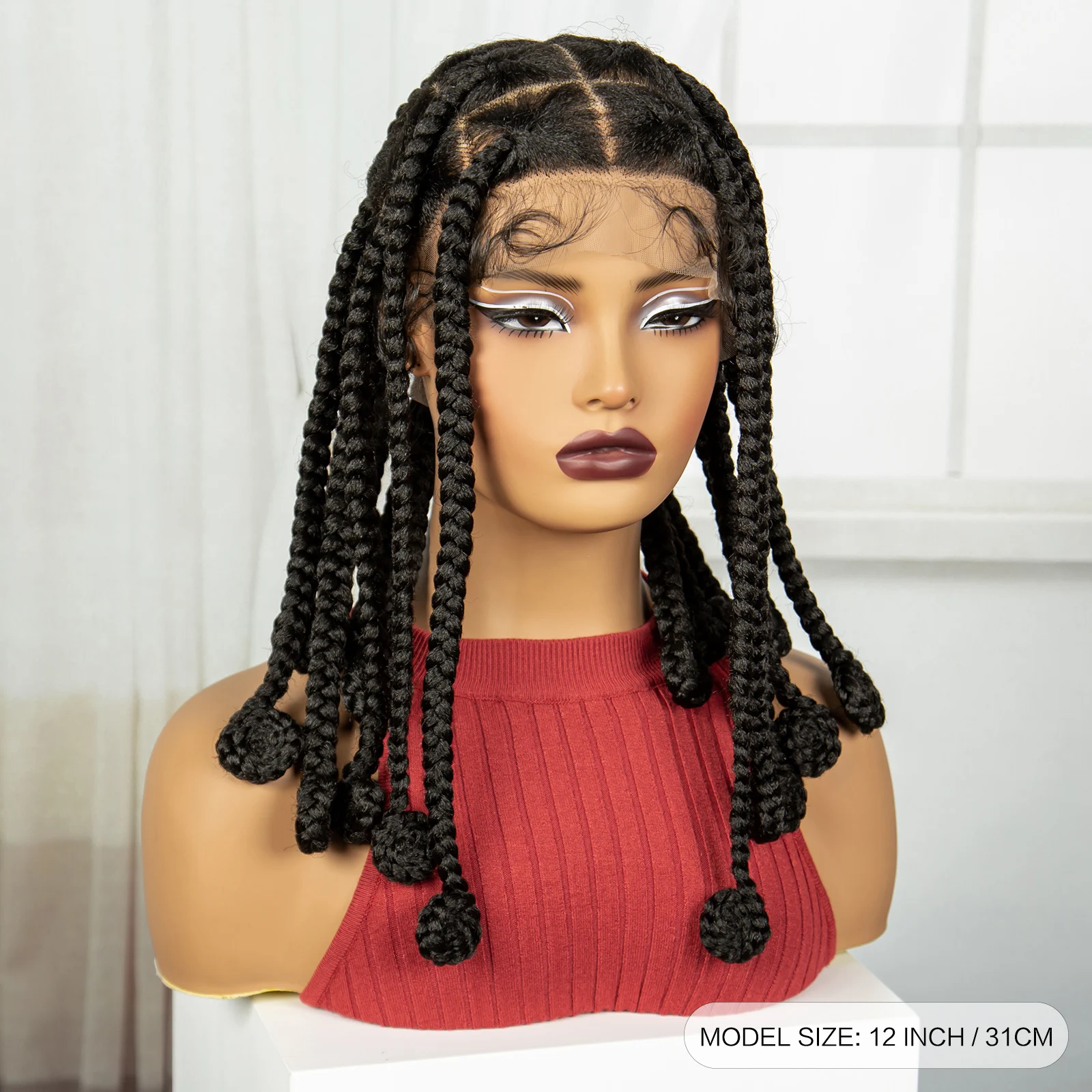 12 Inch Natural Synthetic Braided Wigs Transparent Full Lace Hair Wigs Bantu Knotless Box Braids with Baby Hair for Black Women