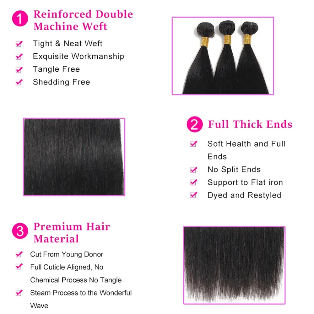 Peruvian Hair Bundles Straight Human Hair Weave Bundles Remy Hair Extension Natural 1/3/4 Pcs 8-28 Inches