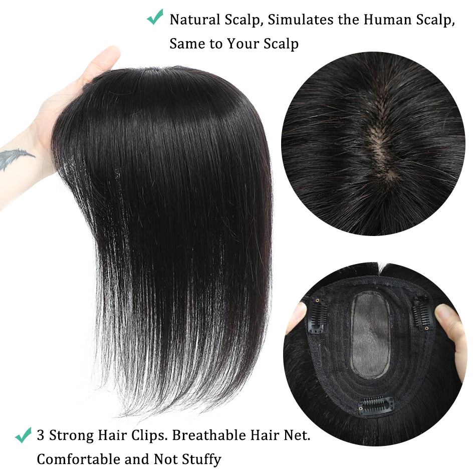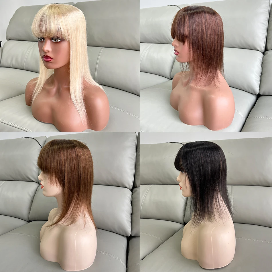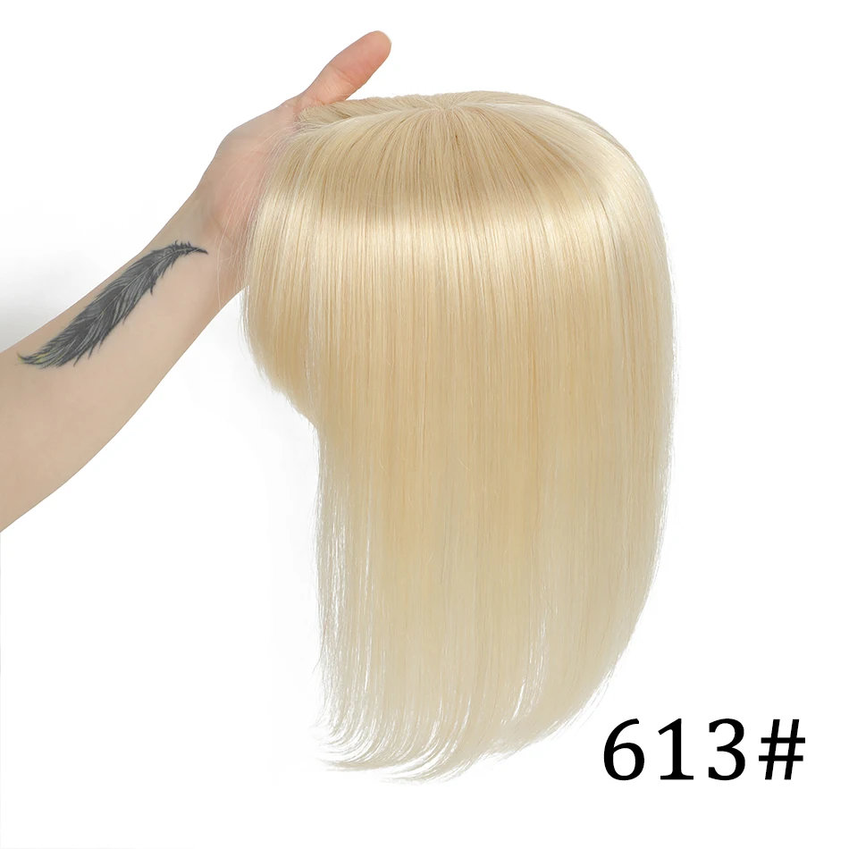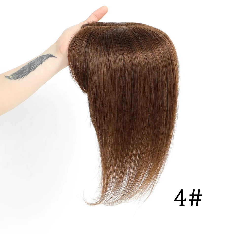 12x13cm Straight Human Hair Topper With Bangs for Women European Invisible 3D Hair Toupee Clips In Hair Extensions Hairpiece