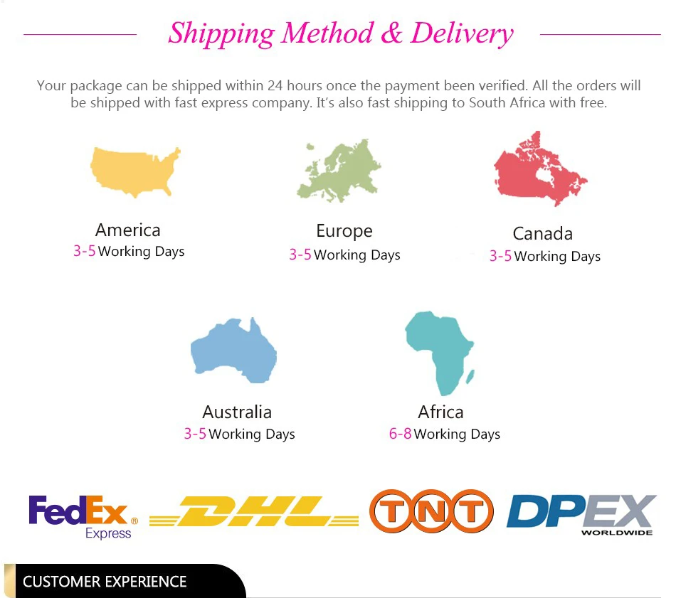 Delivery Time : 3-5 working days to US , Canada , 4-6 working days to European countries