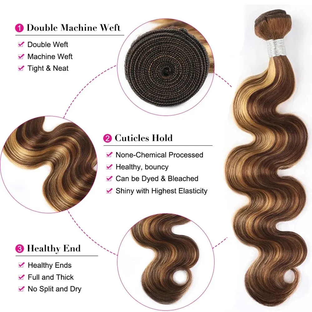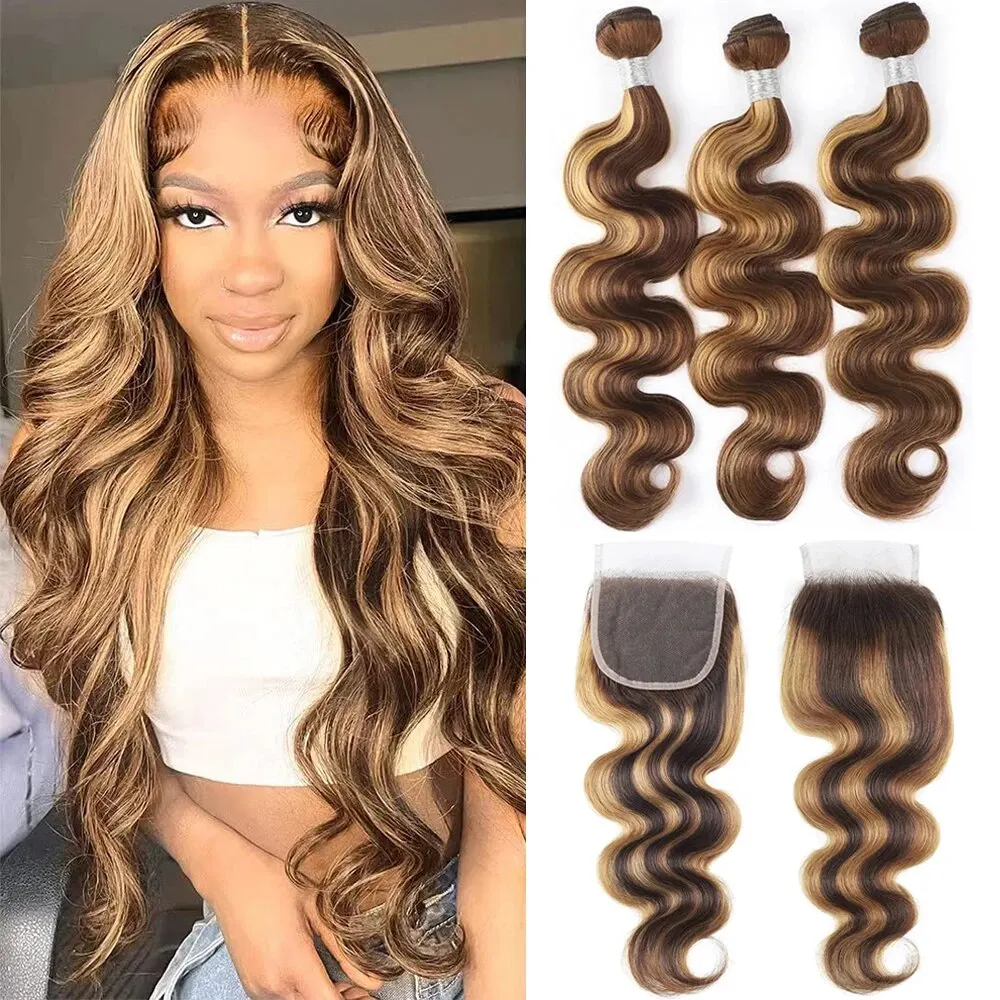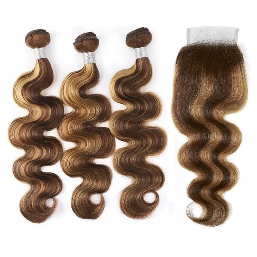 13×4 Brazilian Body Wave Human Hair Honey Blonde Body Wave Bundles With Closure Colored Highlight Weave Bundles