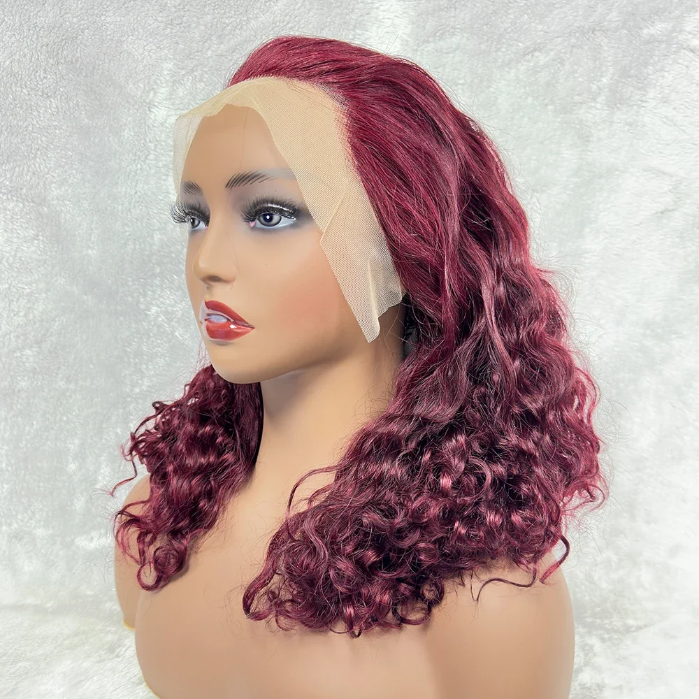 13x4 Deep Wave Lace Frontal Wig Human Hair 99J Burgundy Full Lace Front Wigs Red Colored HD Pixie Curly India Human Hair Wigs