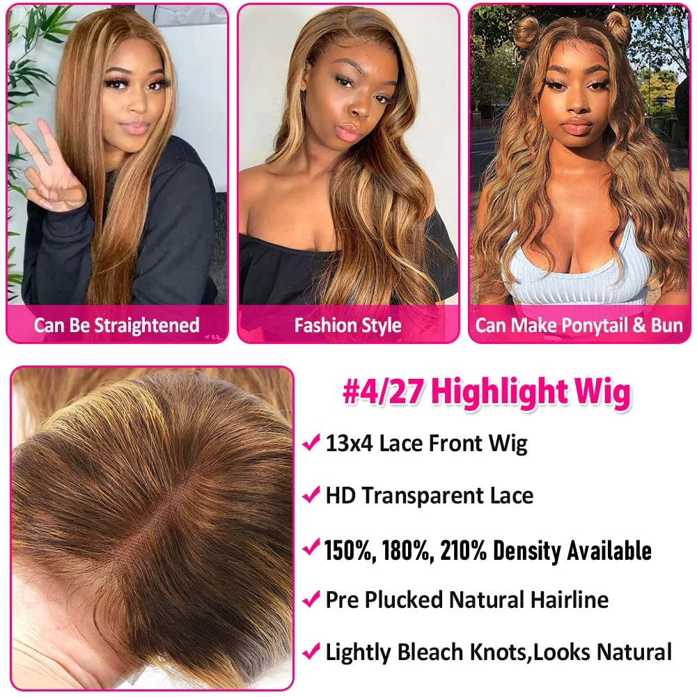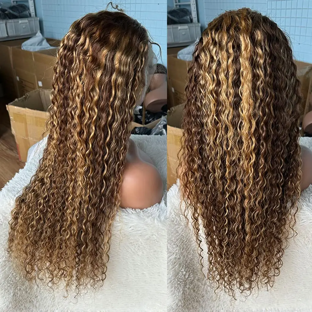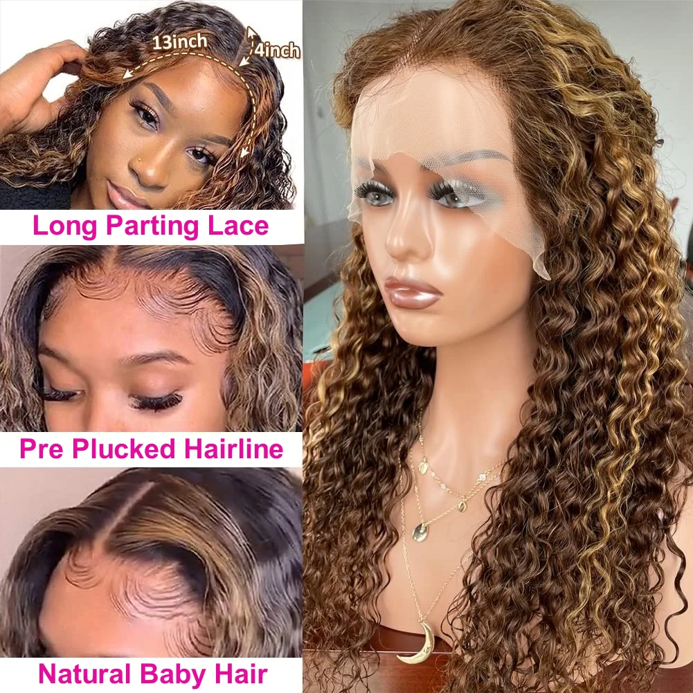 13x4 HD Lace Front Wig for Women Water Deep Wave Remy Human Hair P4/27 Piano Ombre Blonde Brown Highlight Glueless Pre Plucked