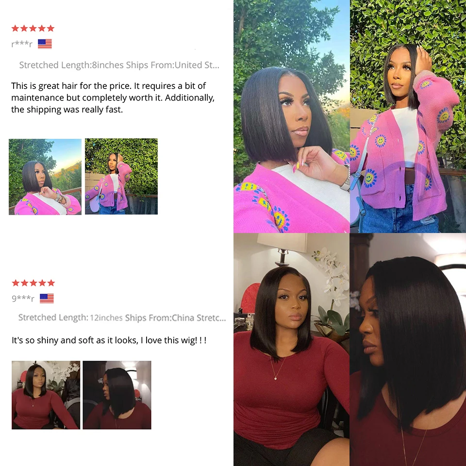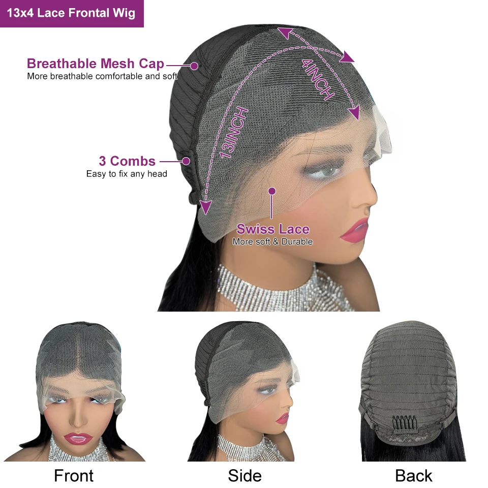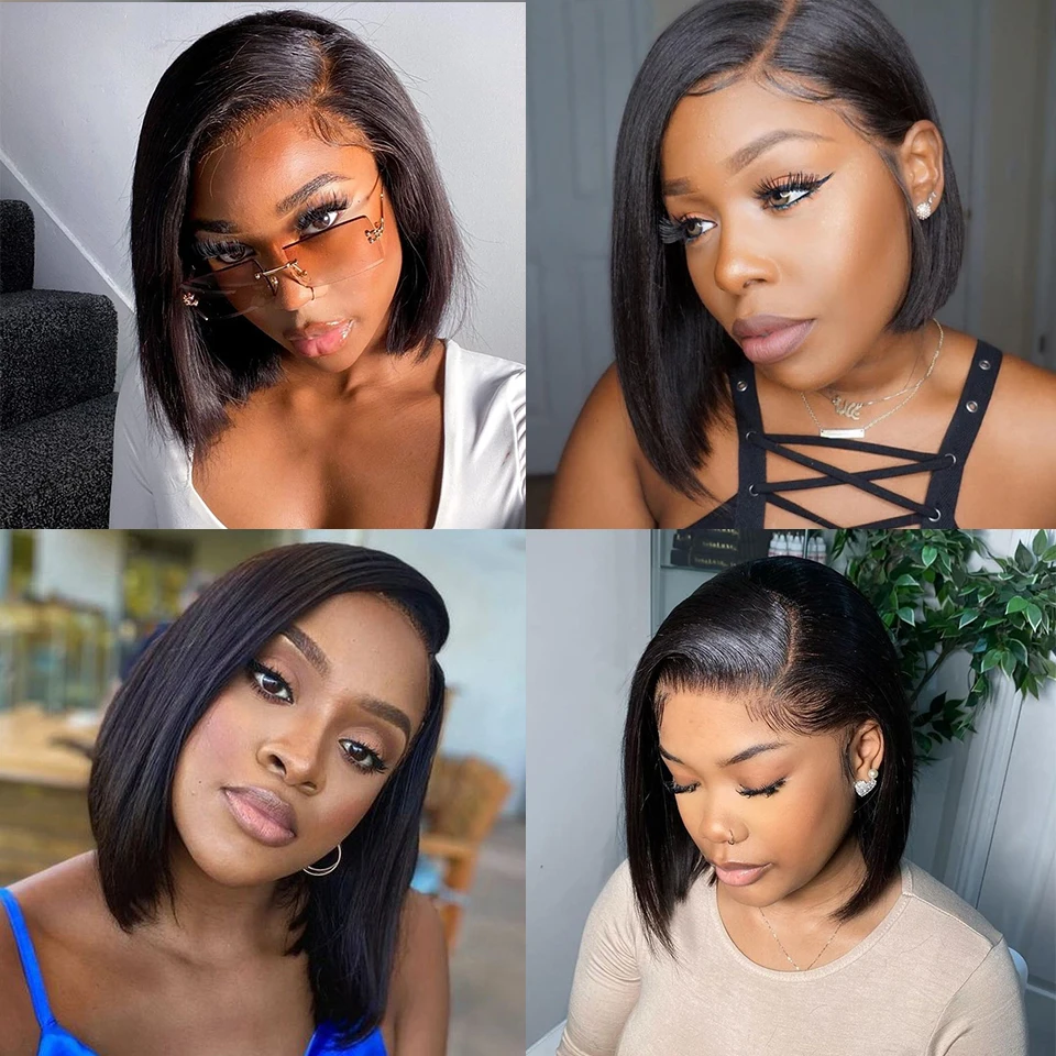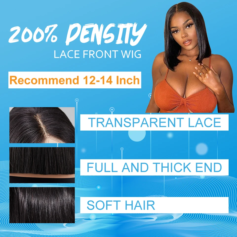 13x4 Lace Frontal Human Hair Wig Transparent Lace Front Wigs For Black Women Short Bob Wig Remy Straight Natural Wig