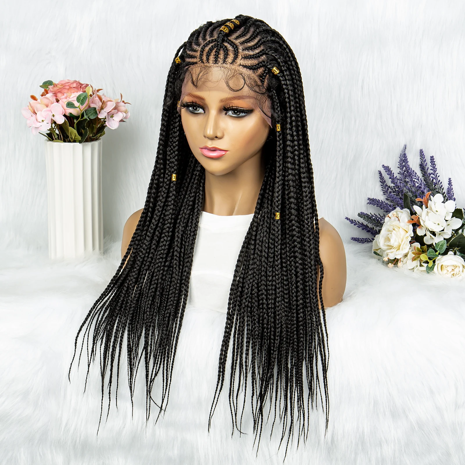 13x5 Lace Front Synthetic Box Braided Wig New Style Braids Wig Knotless African Braiding Wig With Hair Accessories