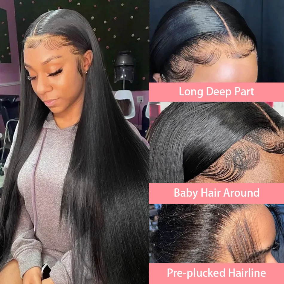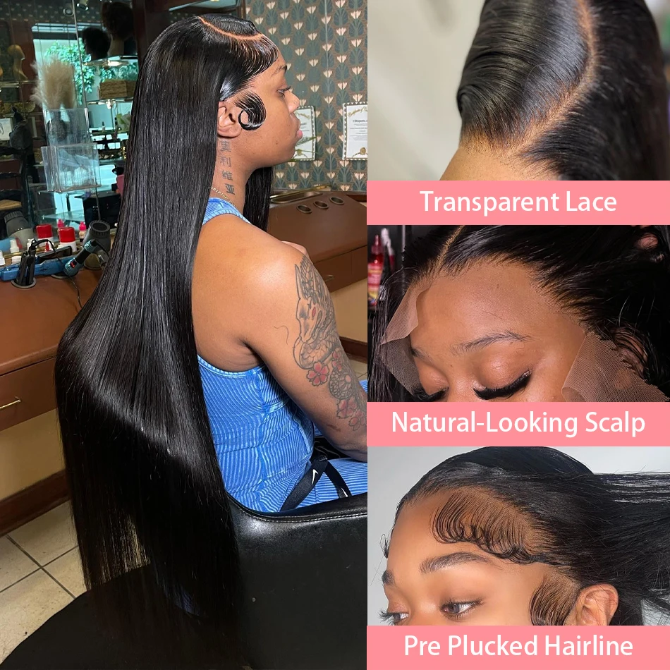 13x6 HD Transparent Straight Lace Front Human Hair Wigs Brazilian Remy 26 30 inch Bone Straight 13x4 Lace Closure Wig For Women