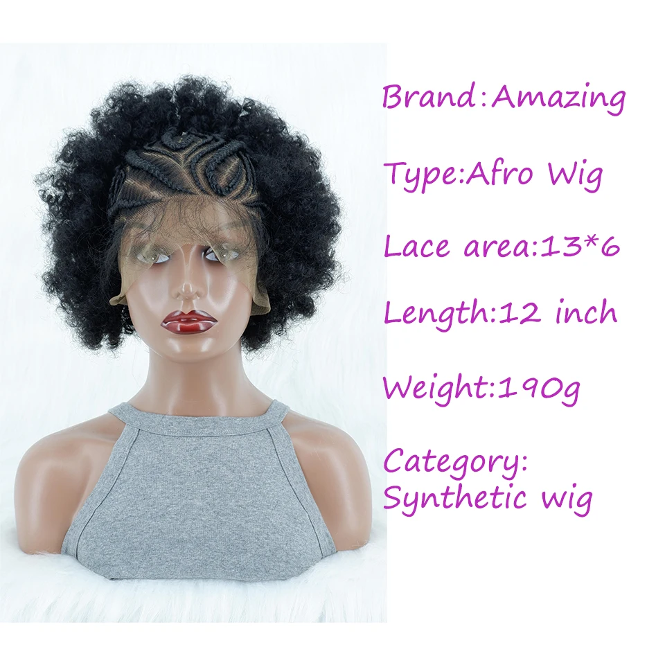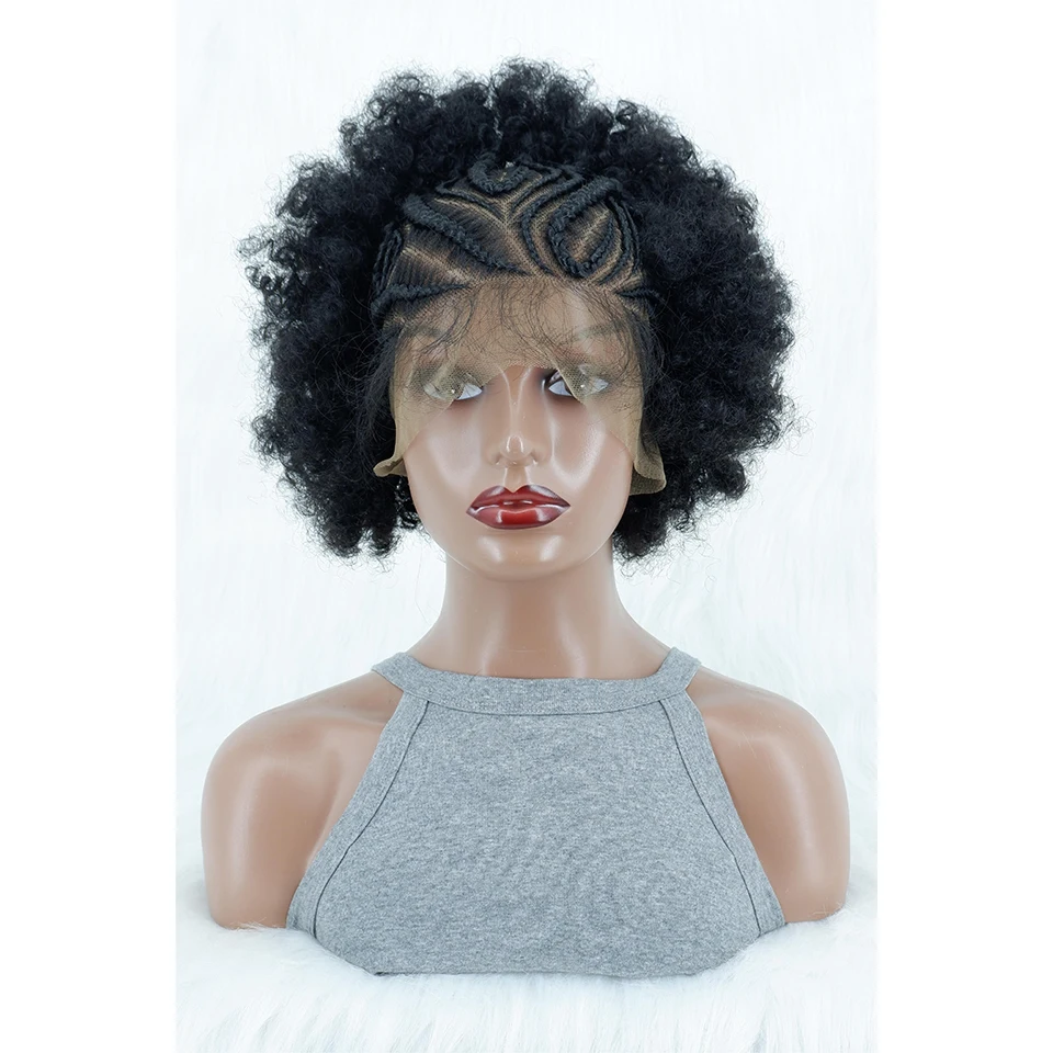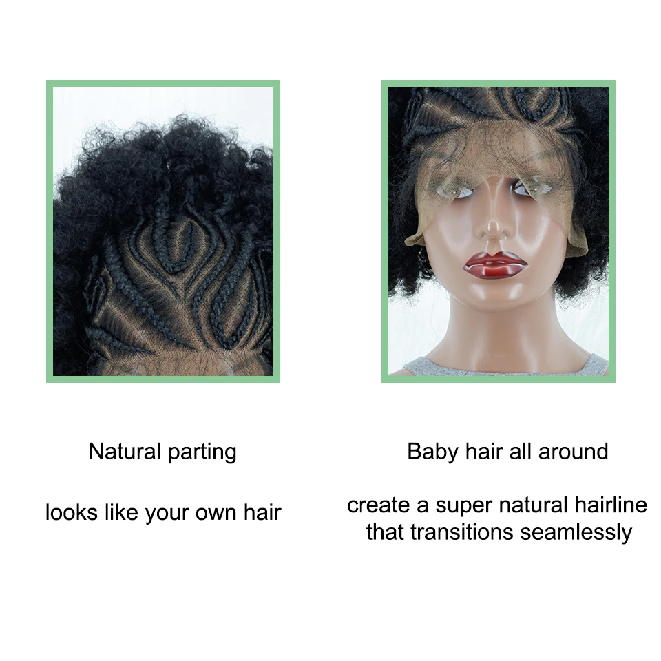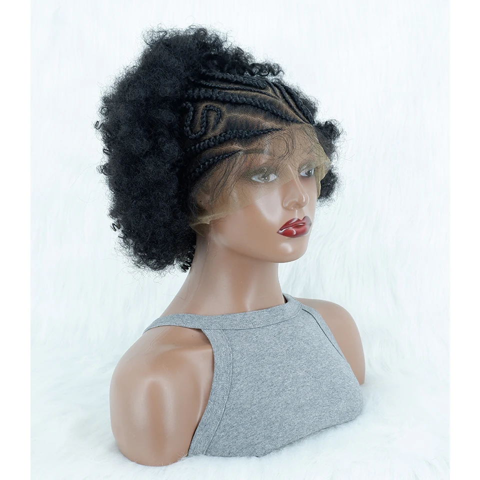 13x6 Synthetic Lace Front Braided Wigs Afro Lace Front Wig With Baby Hair For Black Women Kinky Curly Hair Wigs