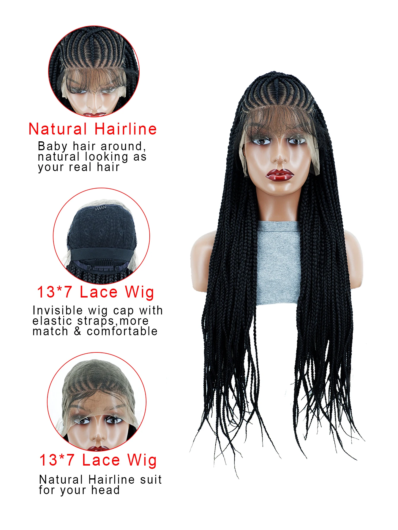 13X7 Lace Braided Wig Synthetic Braid Wigs Lace Frontal Wig with Baby Hair Box Braided Wig for Black Women Knotless Braid Wigs