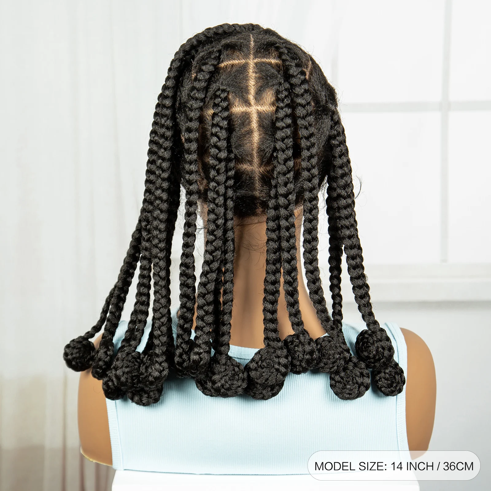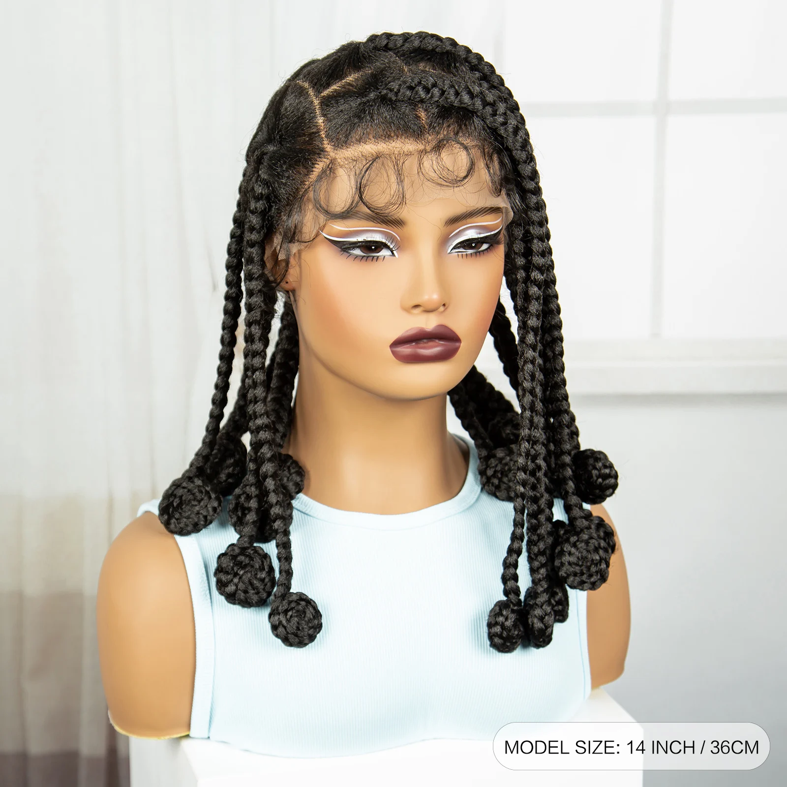 14 Inch Natural Synthetic Bantu Braided Wigs Transparent Full Lace Hair Wigs Knotless Box Braids with Baby Hair for Black Women