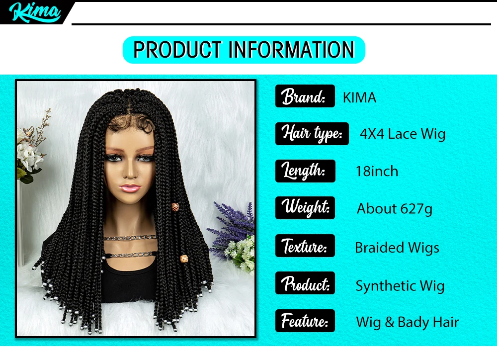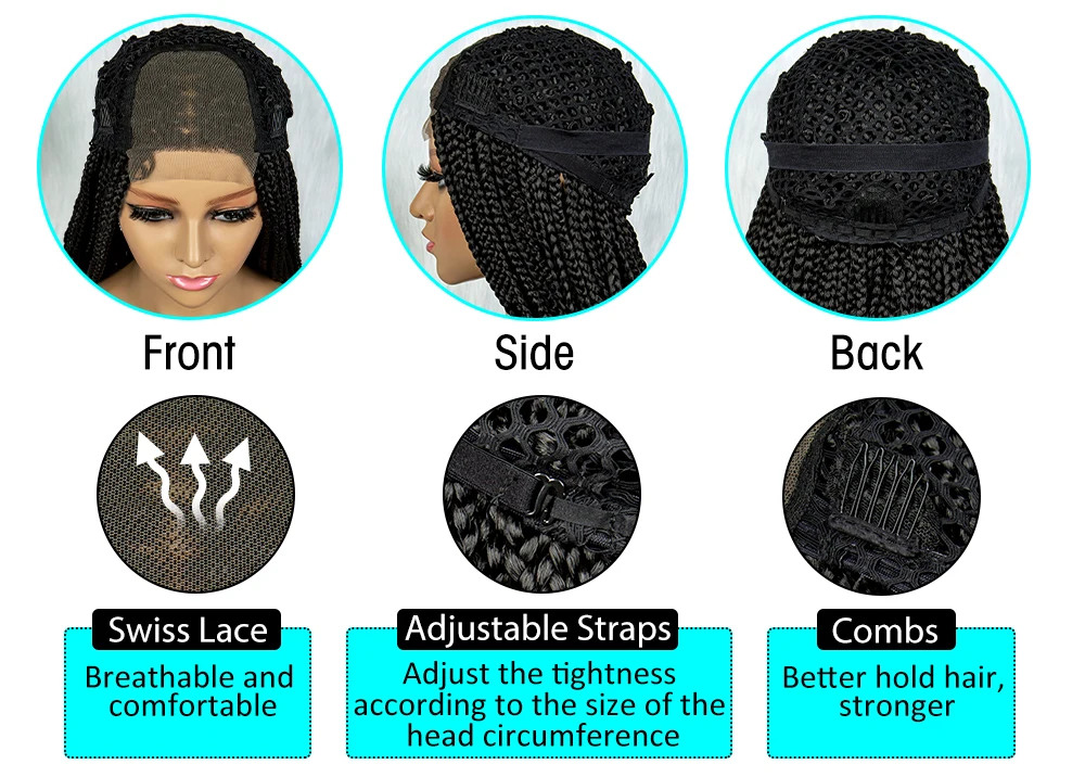 18 Inch Bob Wig Braided Wigs Synthetic Lace Front Wig Heat Resistant 4x4 Lace Synthetic Braiding Hair Wig For Black Women