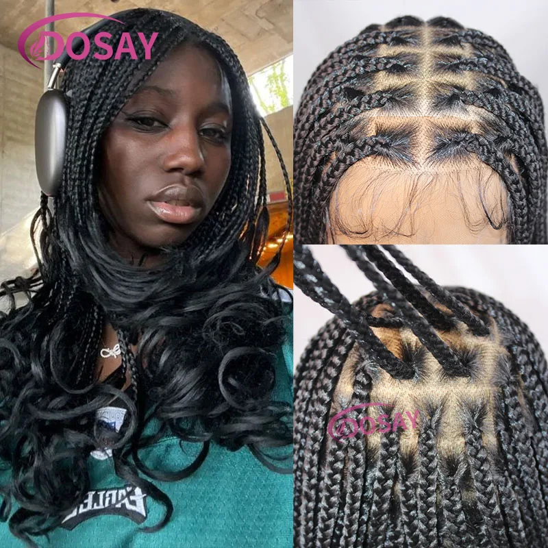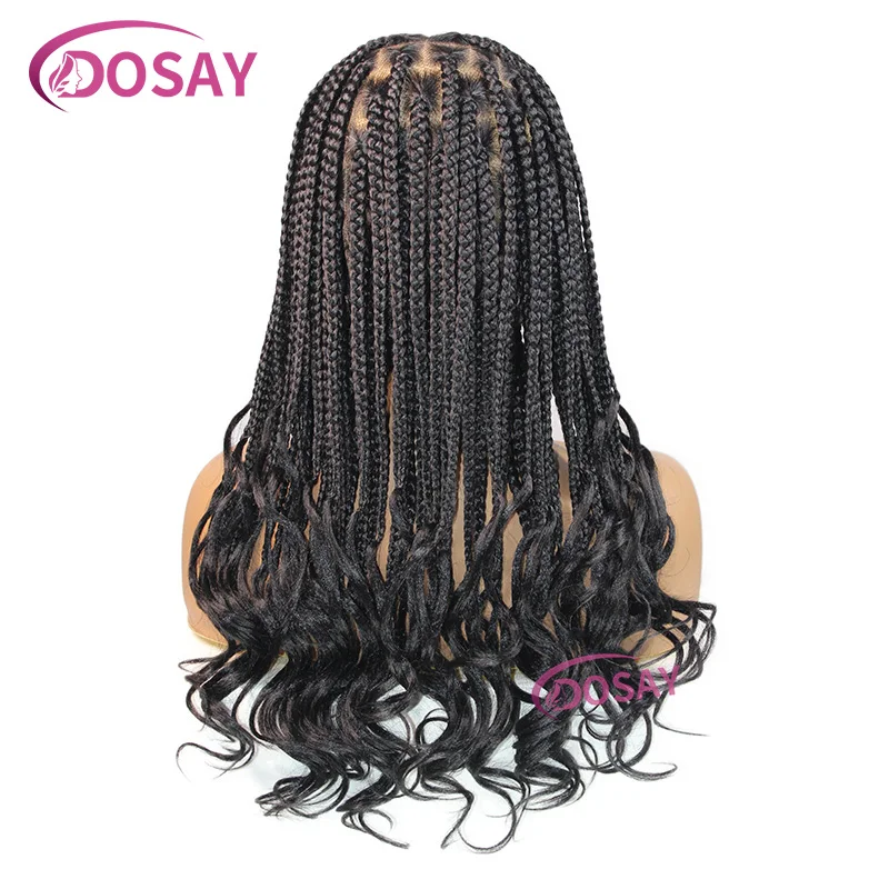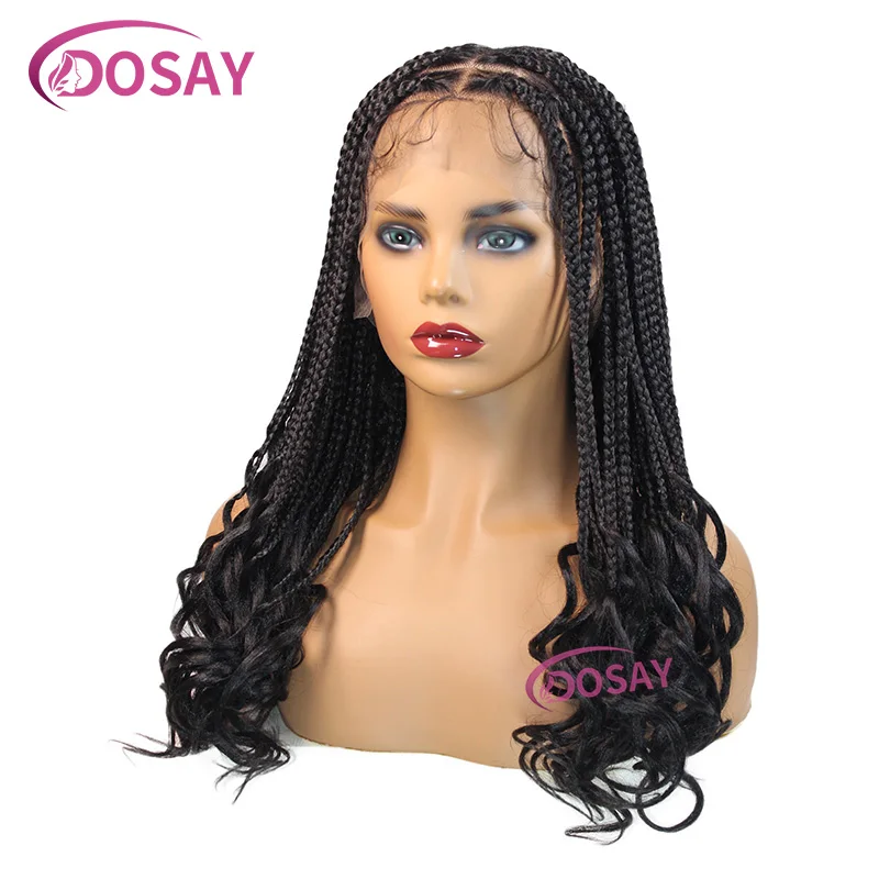 18" Synthetic Braided Wig With Curly End Full Lace Front Wig Transparent Lace For Women Box Braid Wig Curly Hair Lightweight Wig