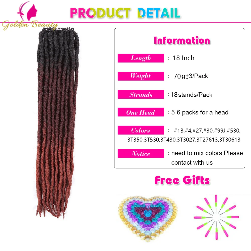 18" Synthetic Faux Locs Braiding Hair Extensions Ombre Dreadlocks Crochet Braids Straight Goddess Locs Hair Golden Beauty
