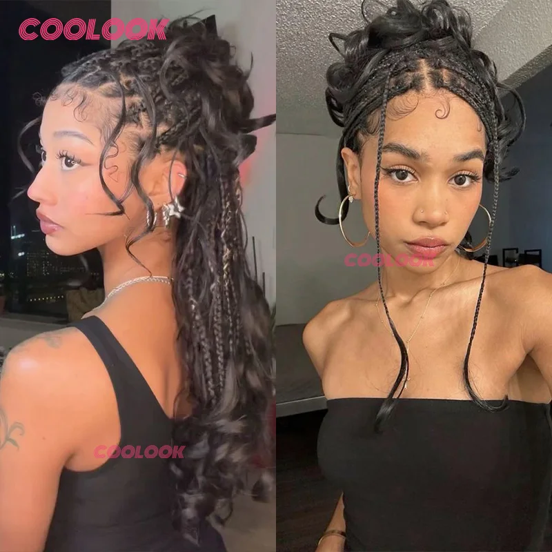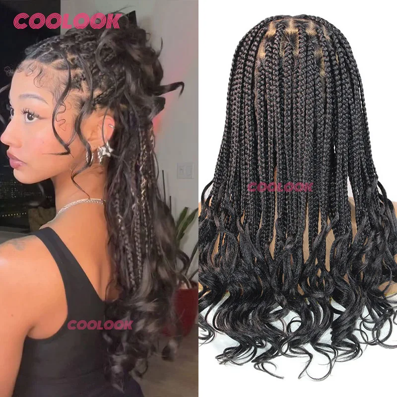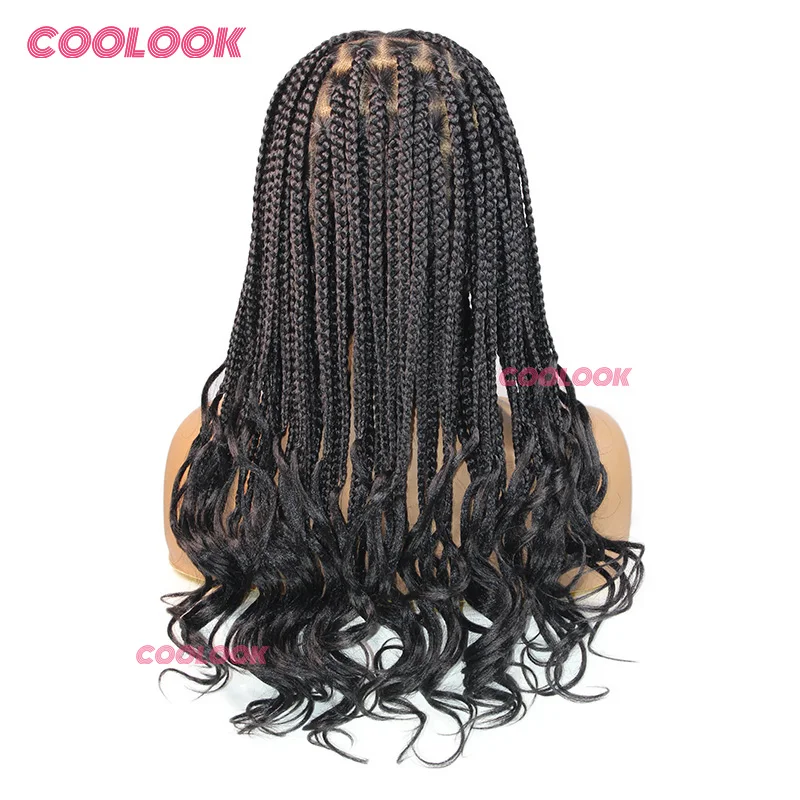 18" Synthetic Full Lace Front Wig Transparent Lace Braided Wigs With Curly Ends For Women Box Braid Wig Curly Lightweight Hair