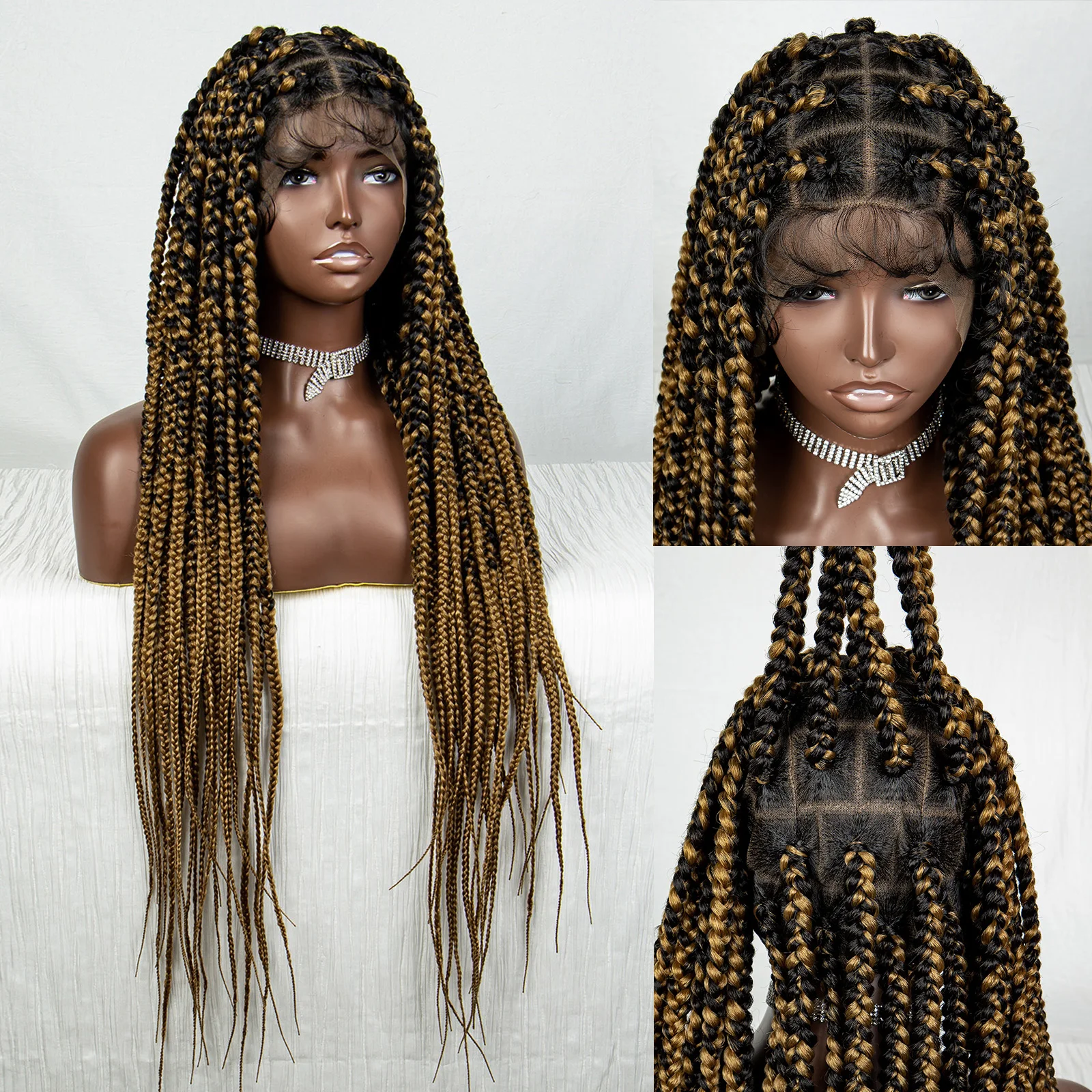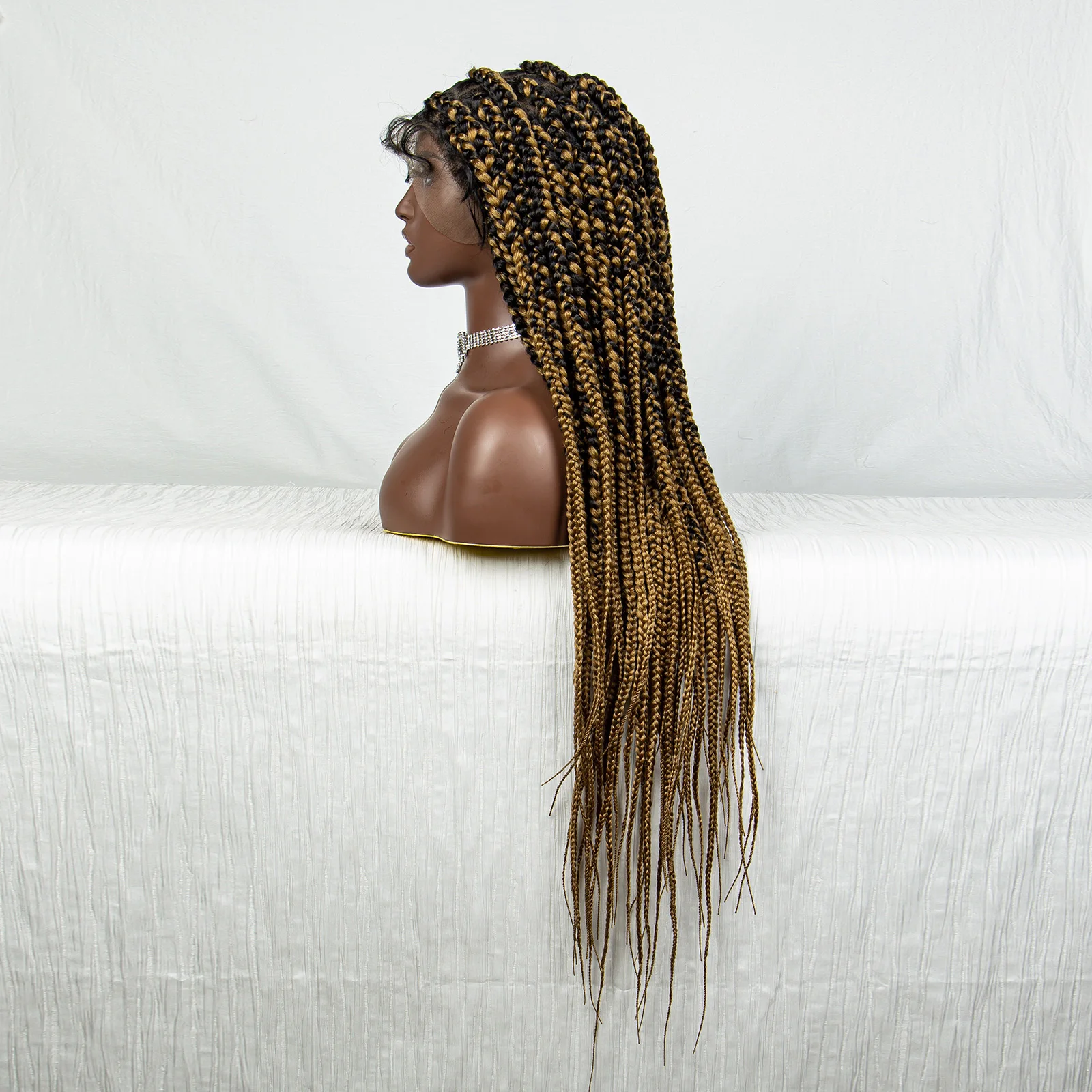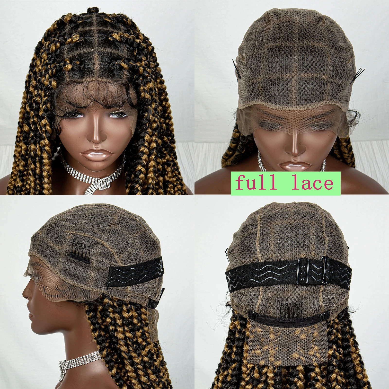 1B/27 Color Full Lace Synthetic Braided Wig Crochet Braid Lace Front Wig Knotless Box Braids Wig with Baby Hair for Black Women