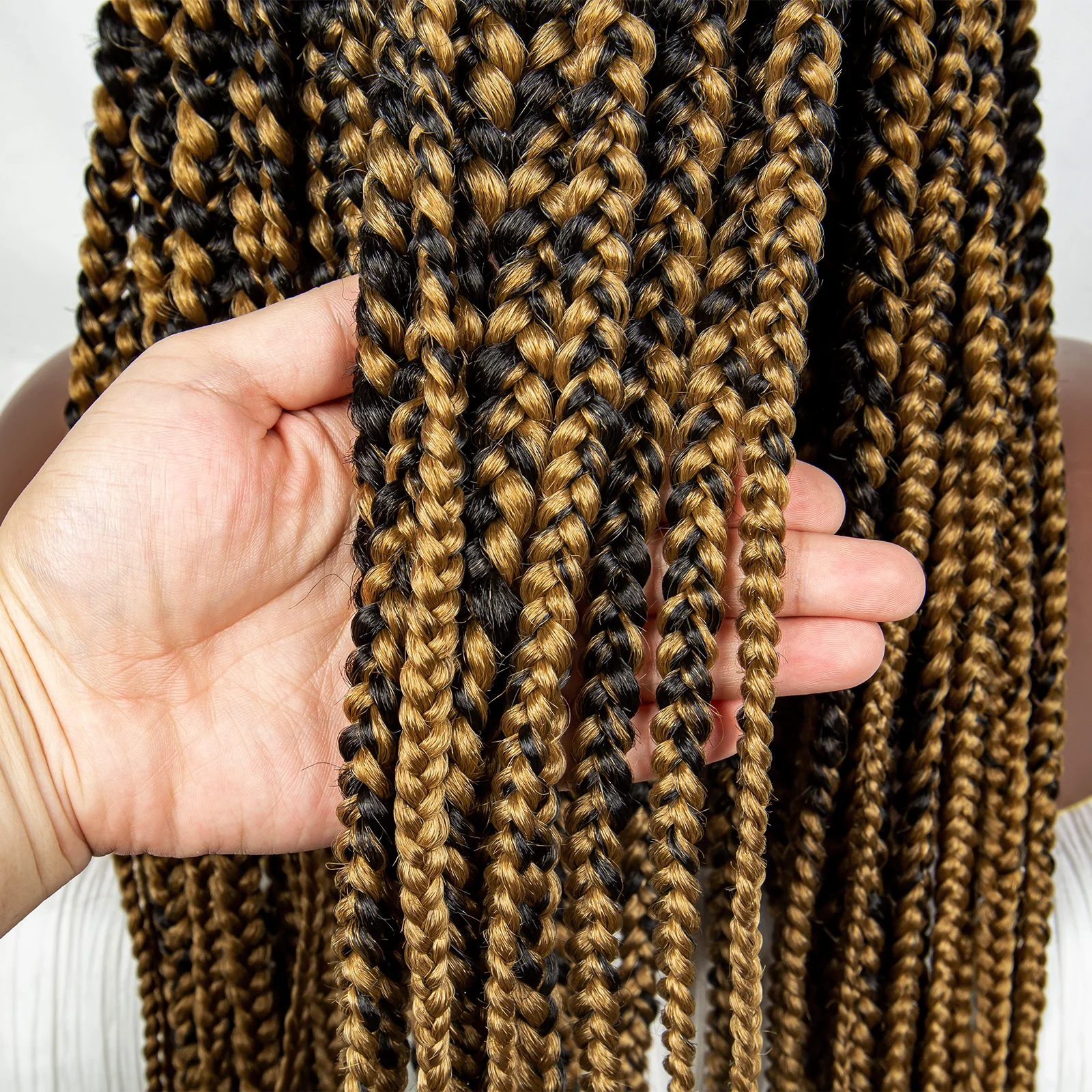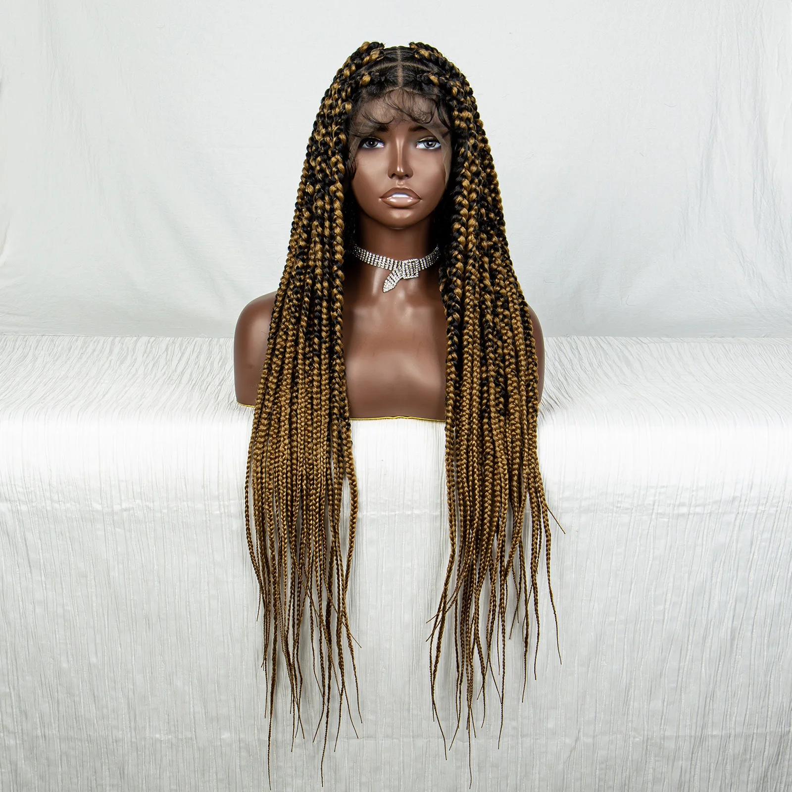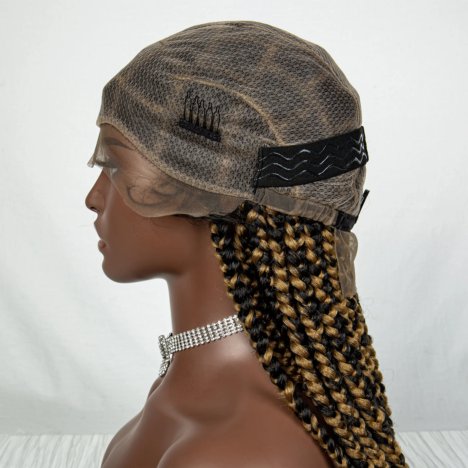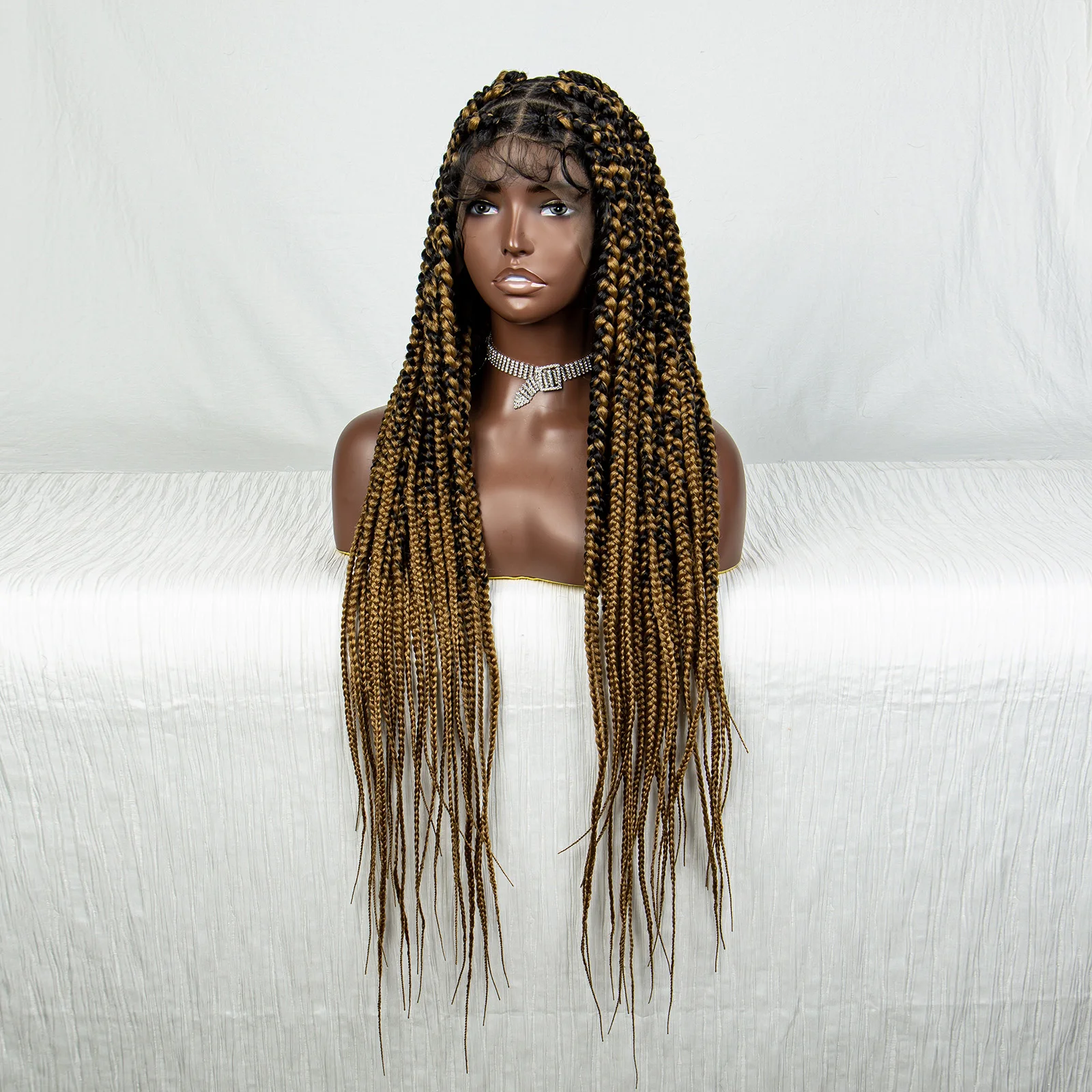1B/27 Color Full Lace Synthetic Braided Wig Crochet Braid Lace Front Wig Knotless Box Braids Wig with Baby Hair for Black Women