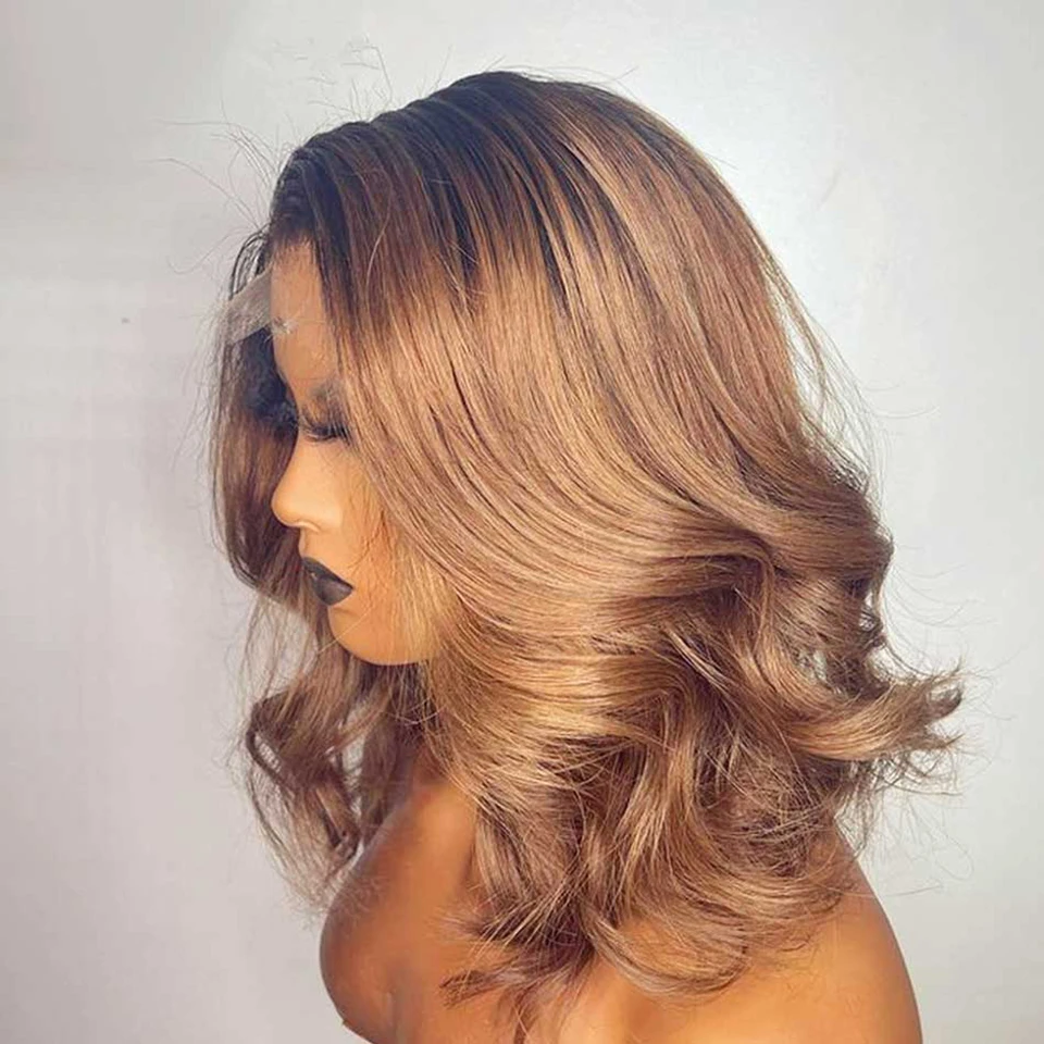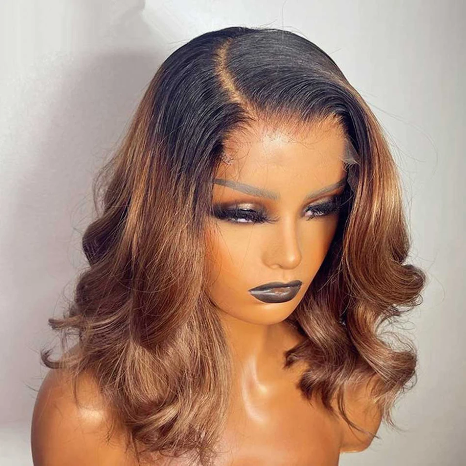 1B 30 Body Wave Lace Front Wig HD Ombre Lace Wig Human Hair Wigs Ombre Brown Colored Human Hair Bob Wig For Women Preplucked