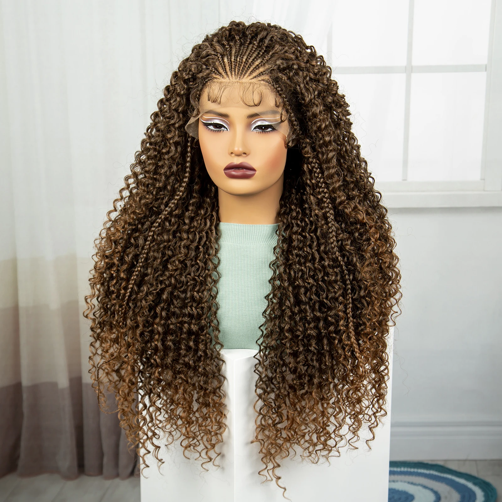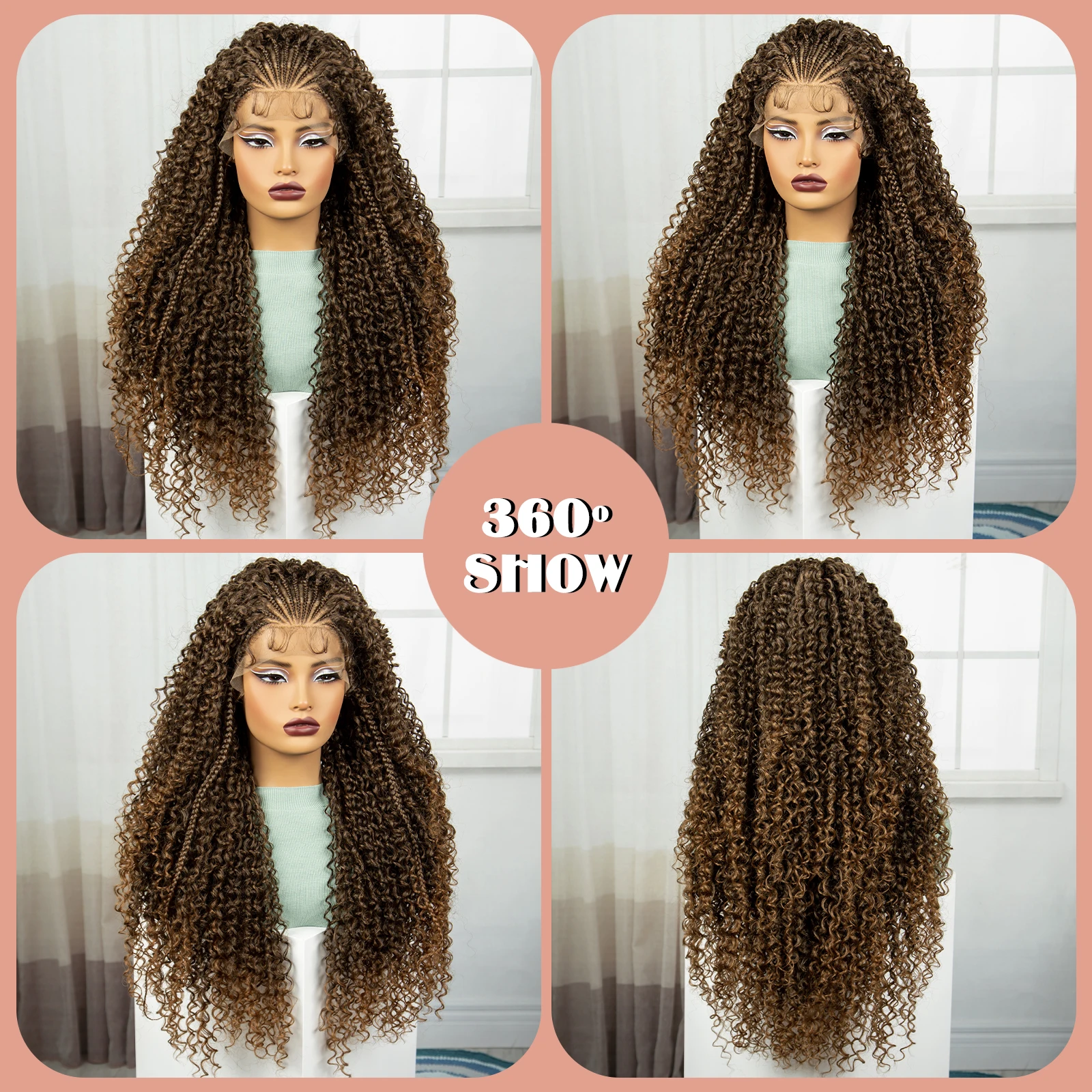 1B-30 Color 28 Inch Ombre Synthetic Braided Wigs Lace Braided Wigs Curly Knotless Box Braids Wigs with Baby Hair for Black Woman