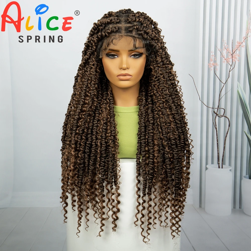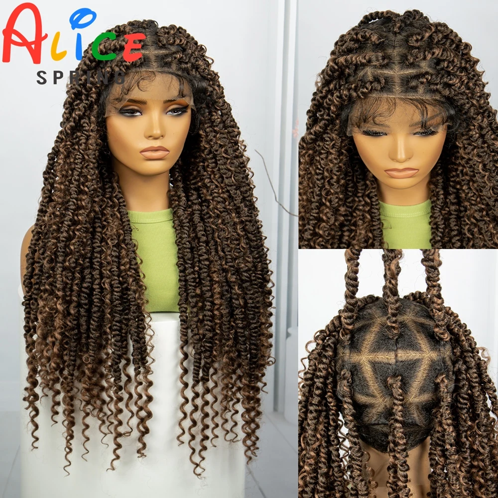 1B-30 Color Synthetic Braided Wig Knotless Braided Wig for Black Women Long Colored Cornrow Box Braiding Wig with Baby Hair