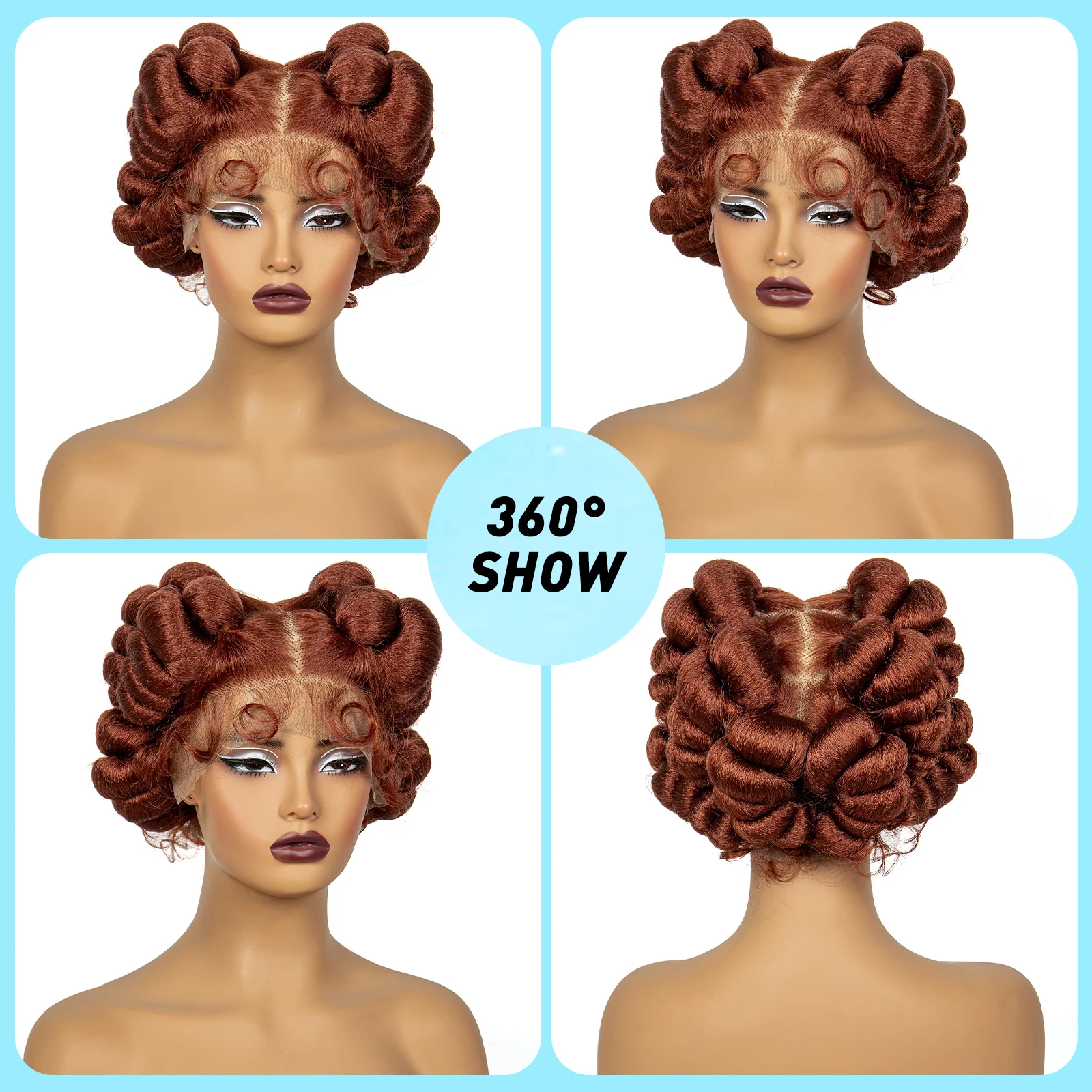 1B-30 Ombre Brown Handmade Bantu Braided Wigs with Baby Hair Short Synthetic Full Lace Knotless Braided Lace Wig For Black Women