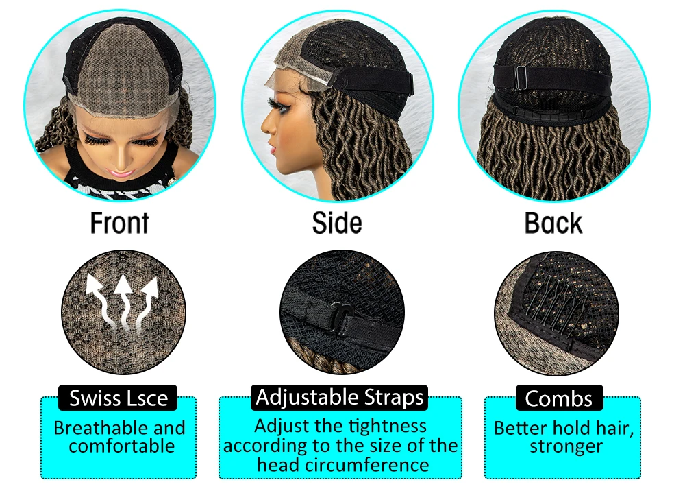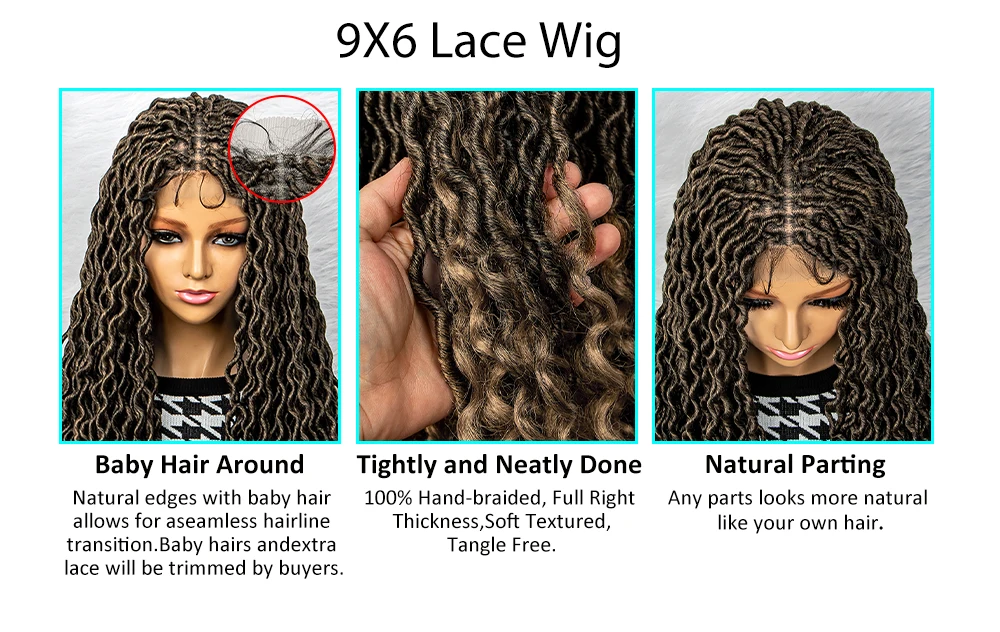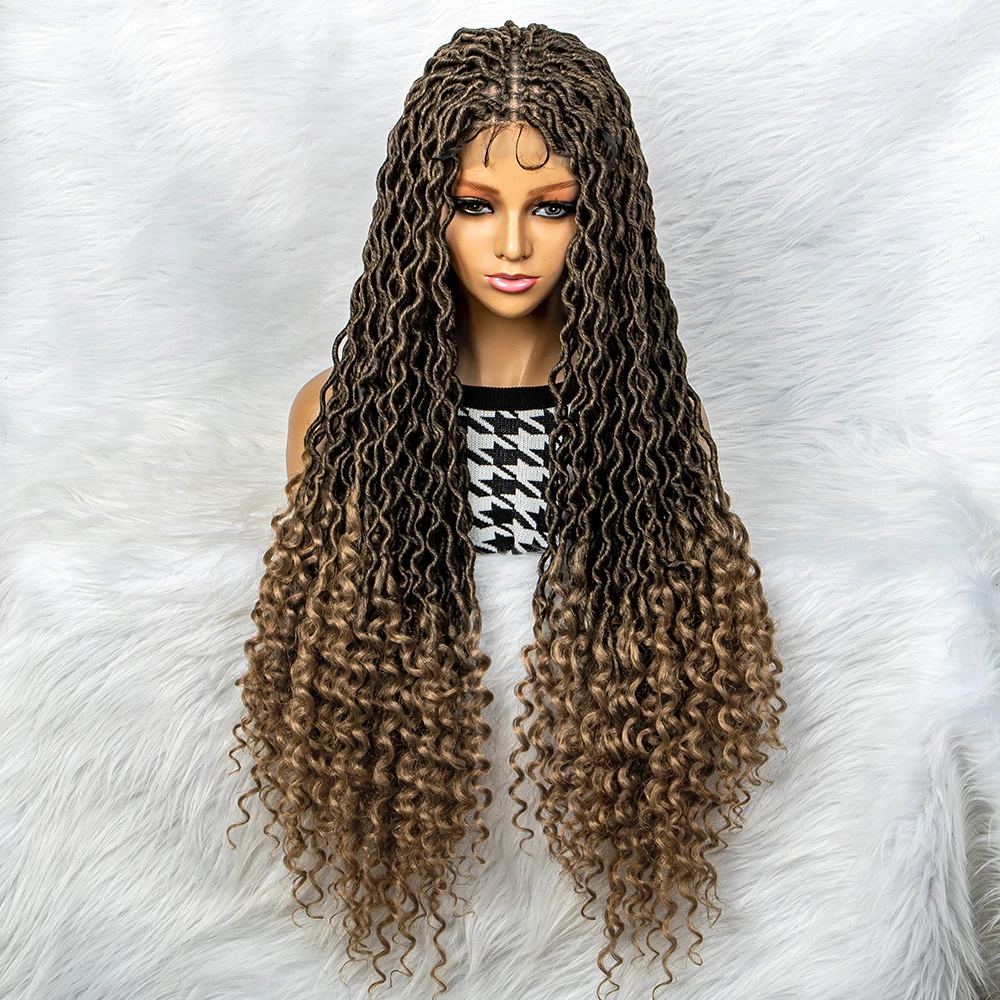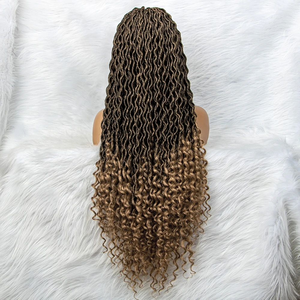 1B27 Color 32" Synthetic Lace Front Wig Braided Wigs Braid African With Baby Hair Braided Lace Front Wigs Curly Dreadlocks Wigs