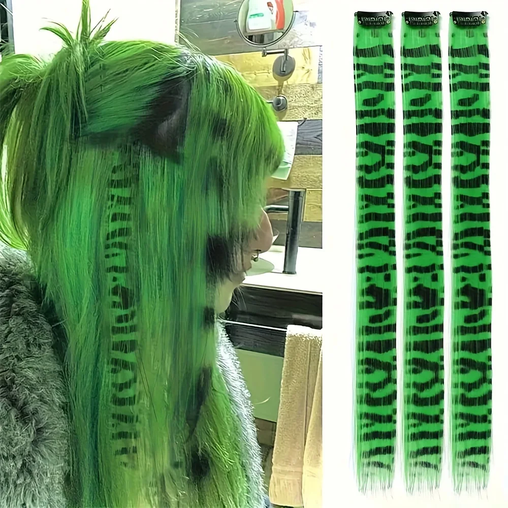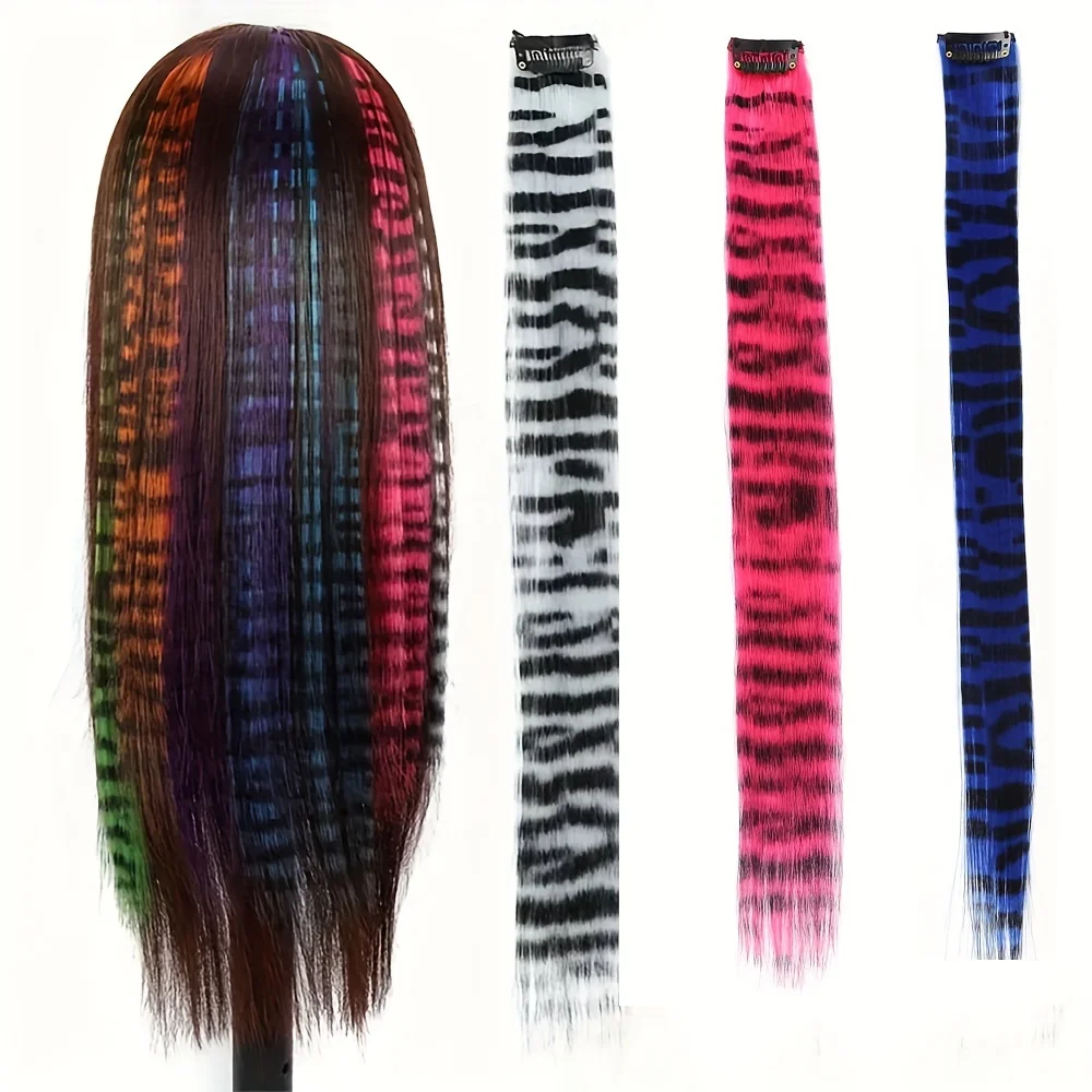 1PCS Y2K Colorful Hair Extensions Leopard print long Straight wig One-piece Clip-In Synthetic Hairpieces cosplay Hair accessory