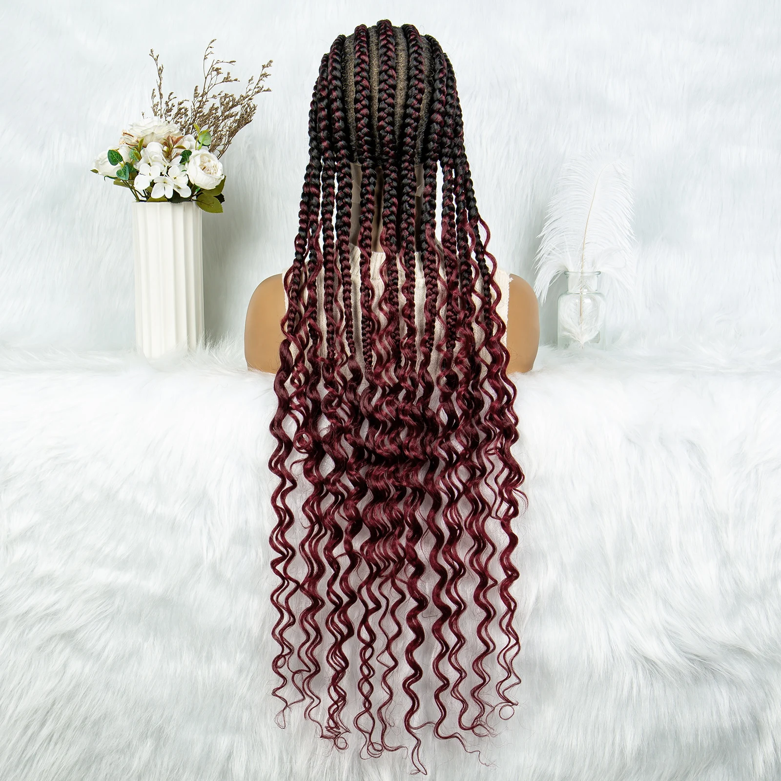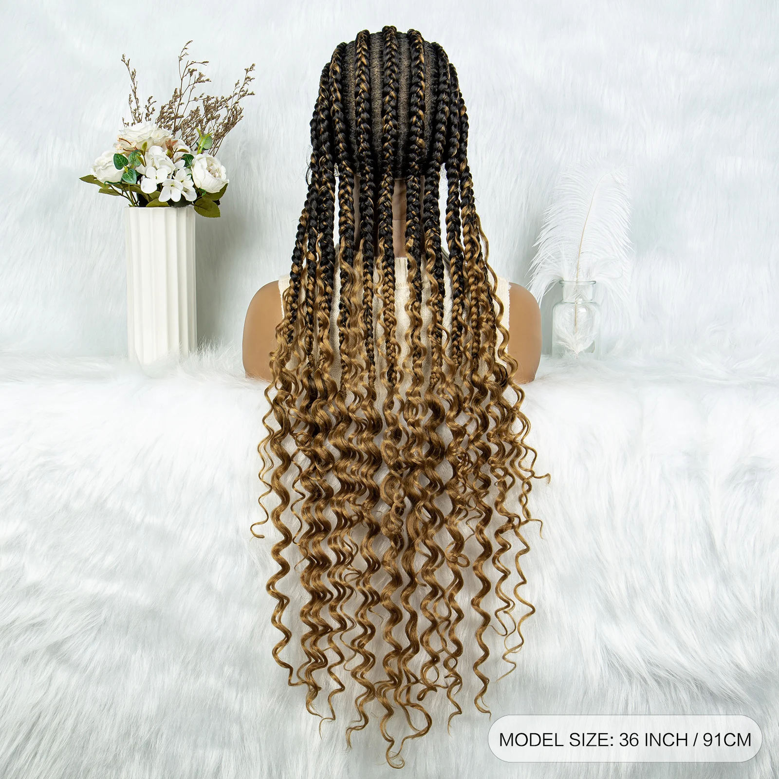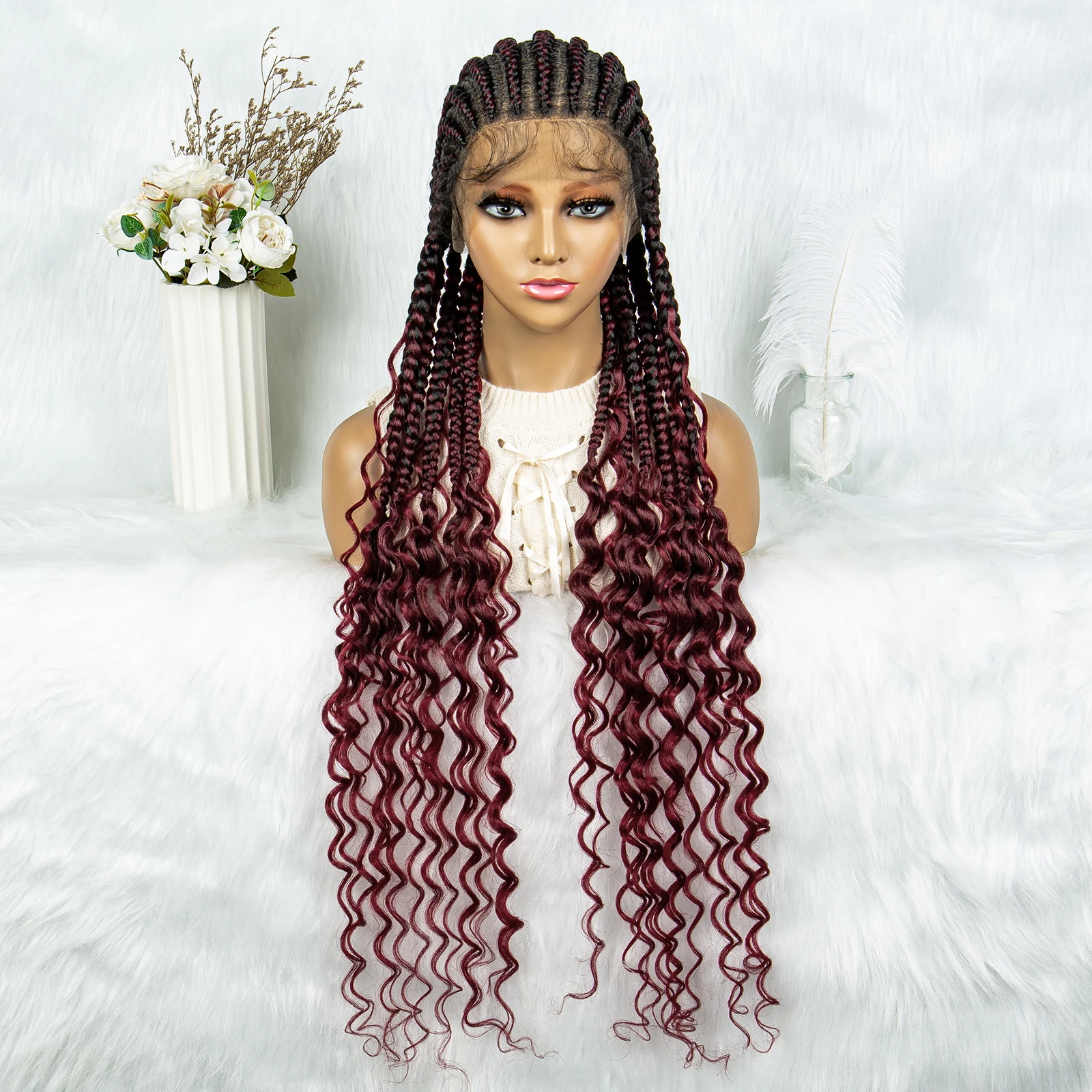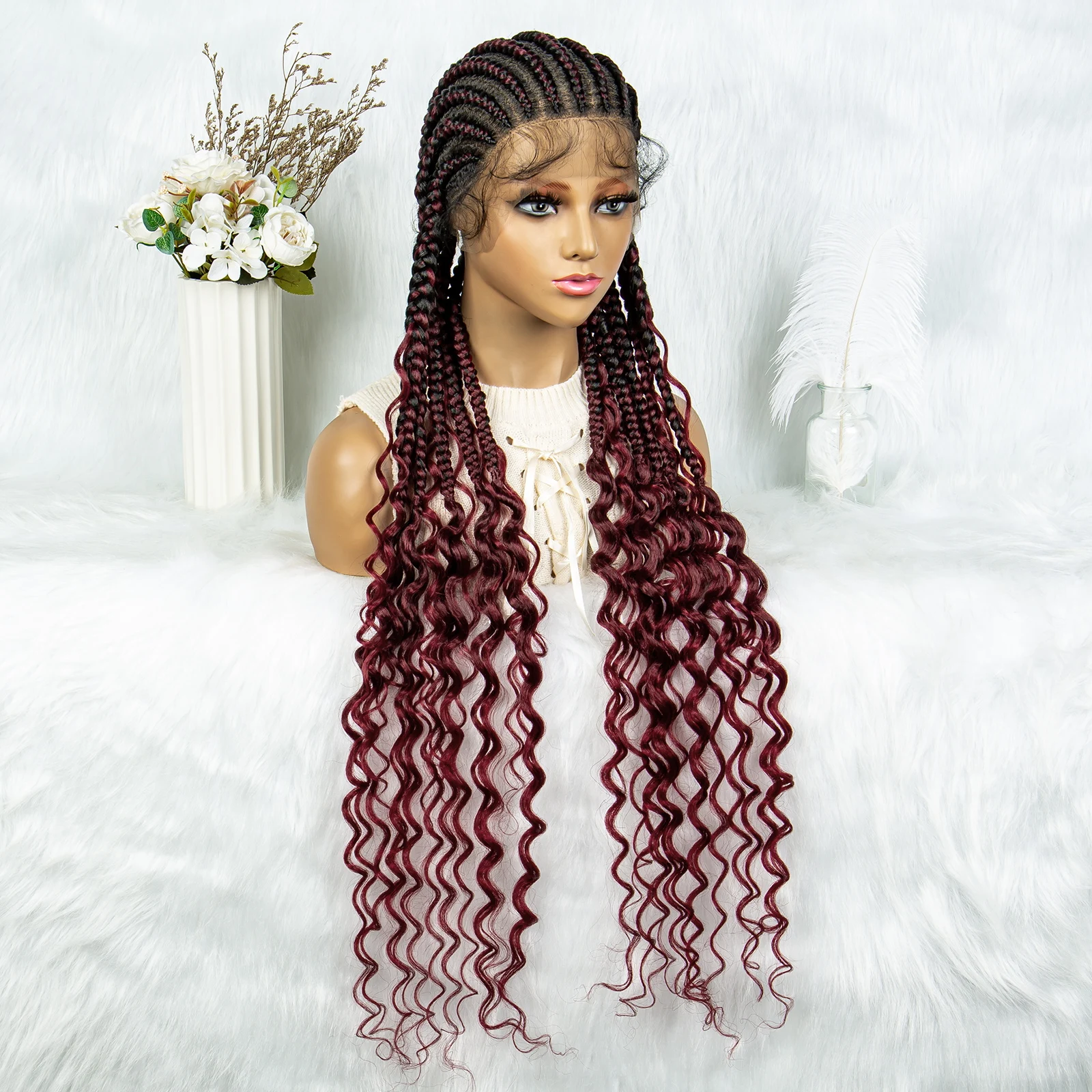 2024 KIMA Cornrow Full Lace Braided Wigs Synthetic Lace Front Wig Braid African With Baby Hair Braided Wigs Water Wavy Wigs