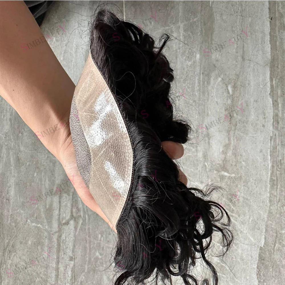 20mm Curly Toupee for Men 8”x6” Euro Virgin Human Hair Replacement Systems Men's Hairpieces Mono Lace Top with Durable PU Around