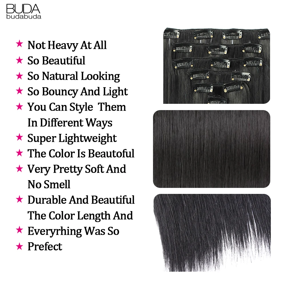 22 Inch 16 Clips Long Straight Synthetic Hair Extensions Clips in High Temperature Fiber Black Brown Ombre Hairpiece BUDABUDA