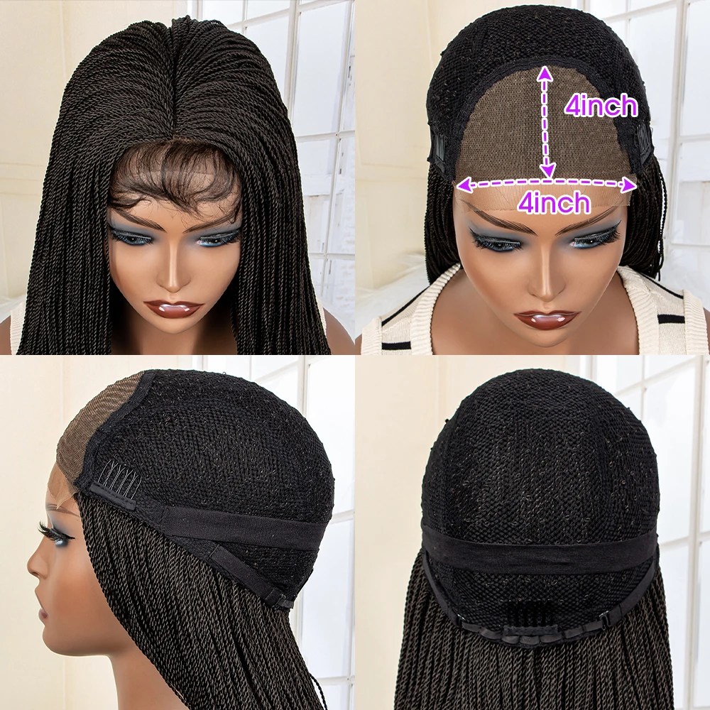 22 Inches Synthetic Straight Twist Braided Wigs with Baby Hair for Black Women Heat Resistant Lace Frontal Braiding Hair Wig