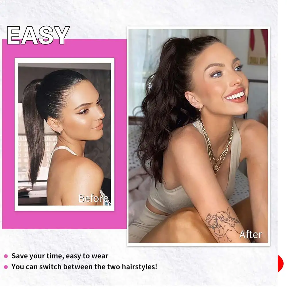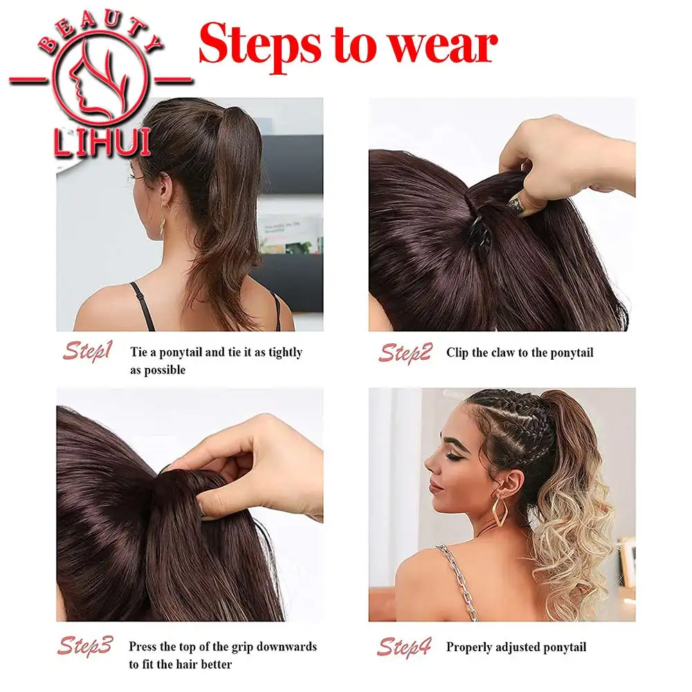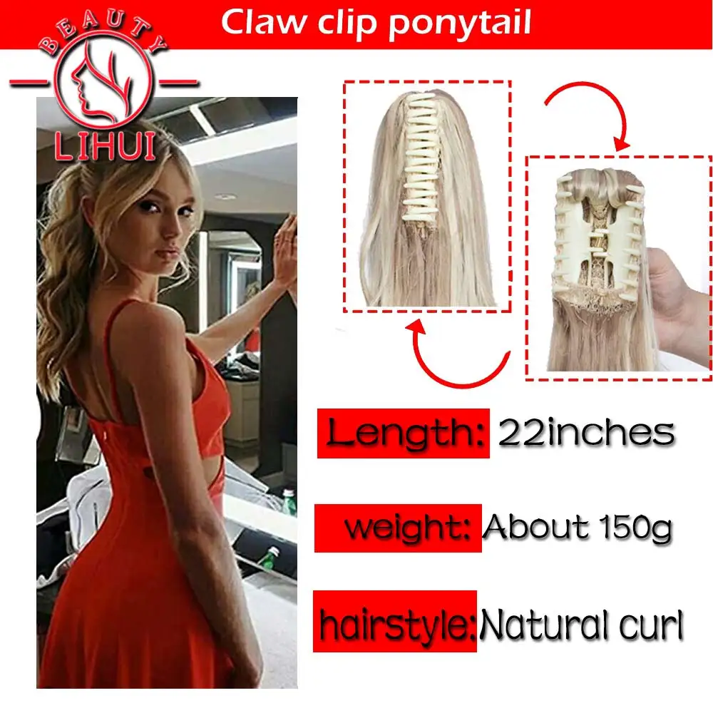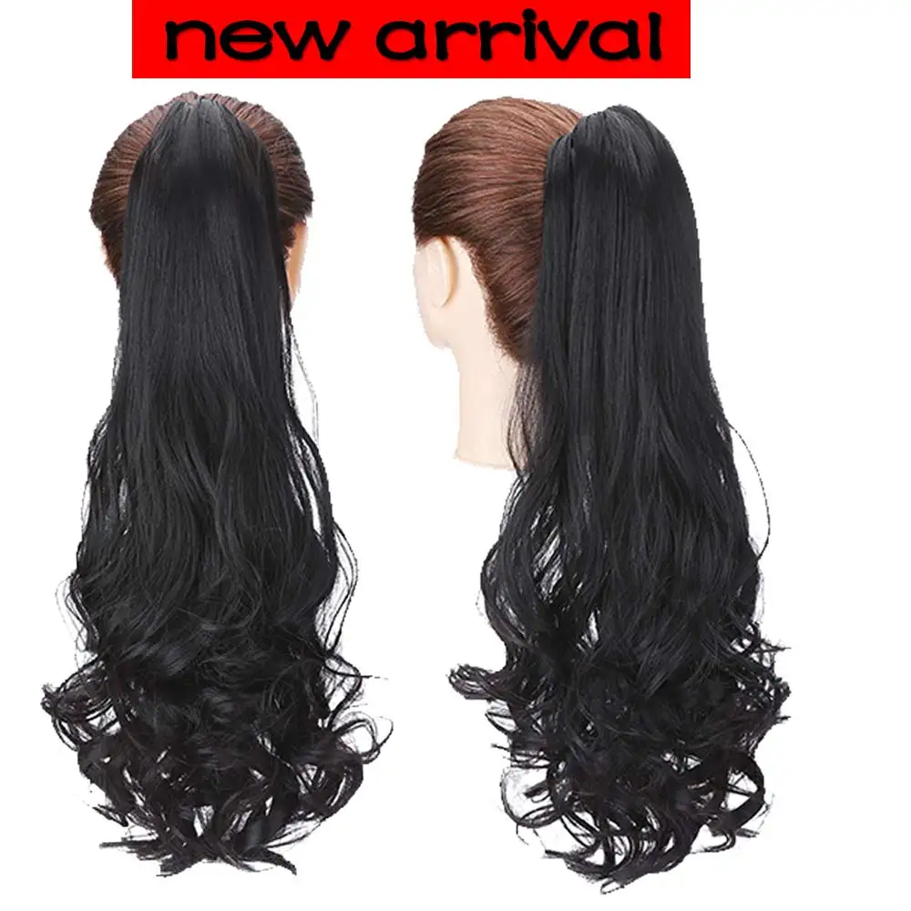 22" Synthetic Long Curly Claw Clip On Ponytail Hair Extensions Heat Resistant Jaw Clip Pony Tail Hairpiece For Women