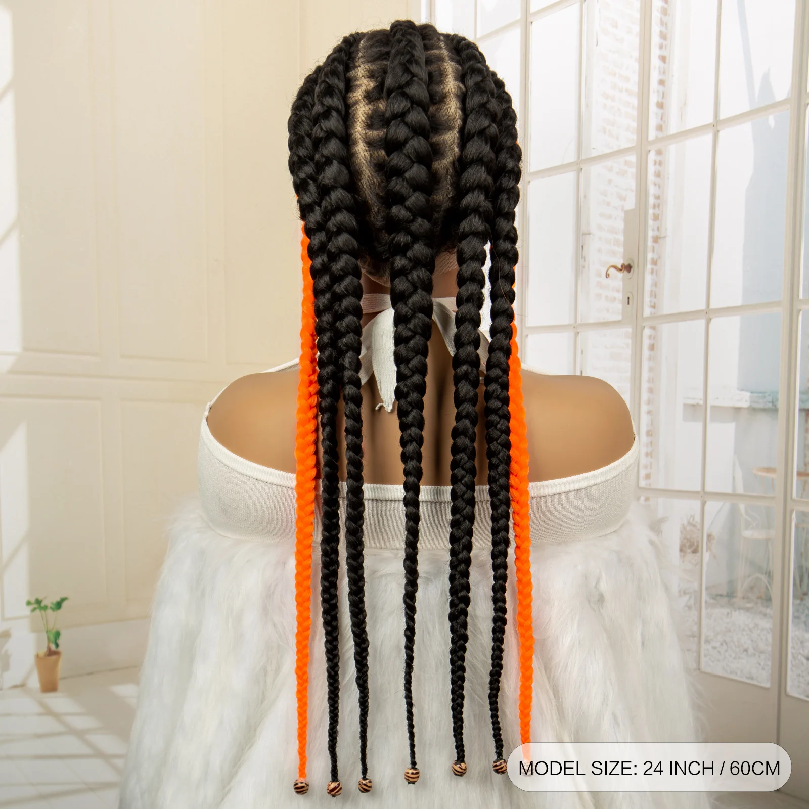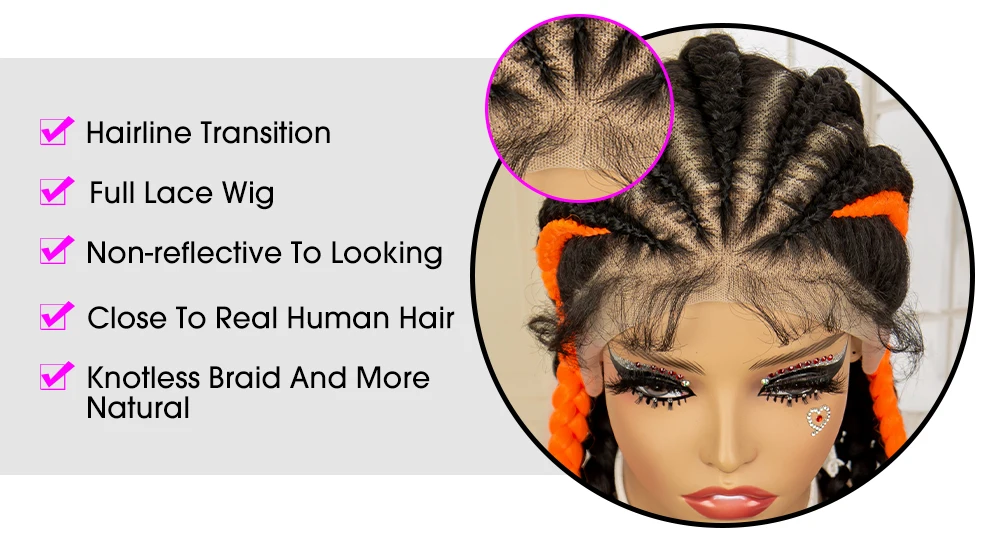 24 Inches Synthetic Full Handmade Lace Cornrow Braiding Wigs with Baby Hair for African Women 1B/Orange Colorful Braided Wig