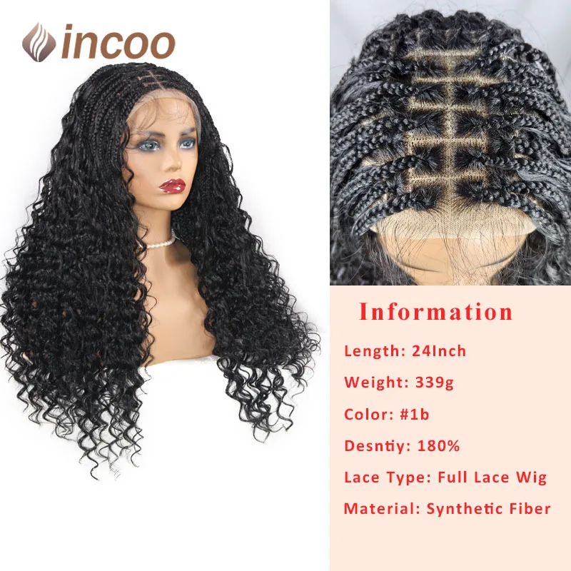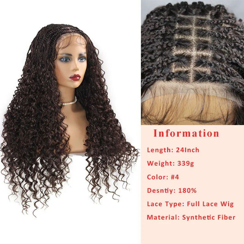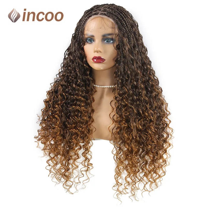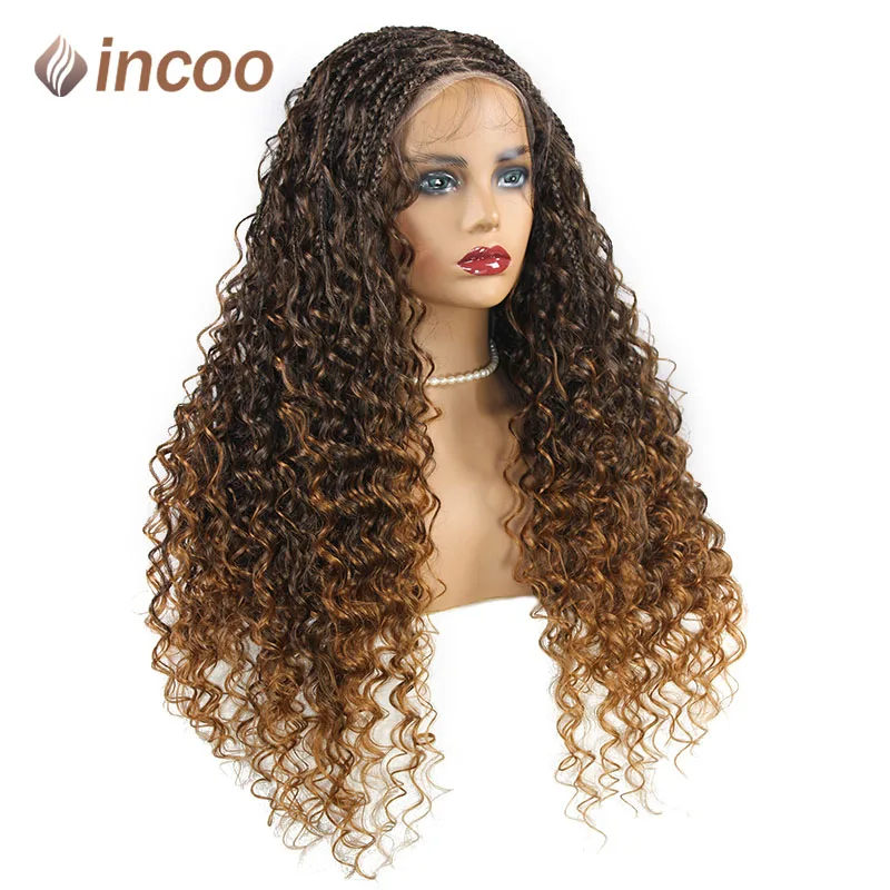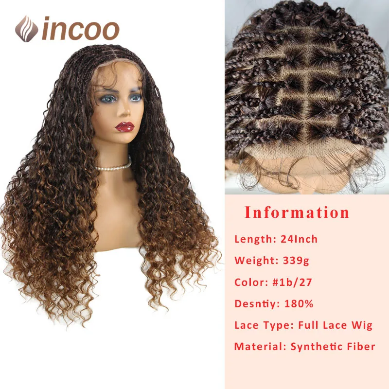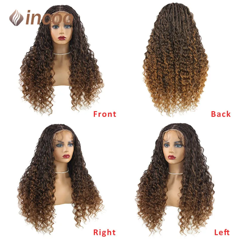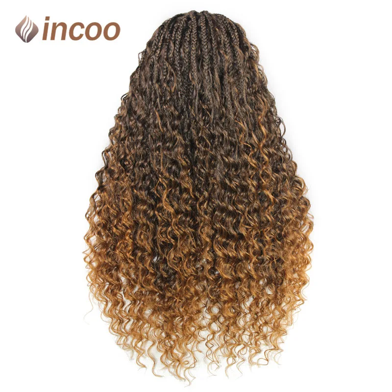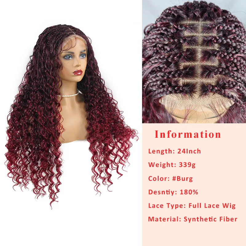 24'' Bohemia Full Lace Box Braided Wig Synthetic Lace Frontal Wig for Braiding Wih Curly Hair Ombre Blonde Goddess Faux Locs Wig