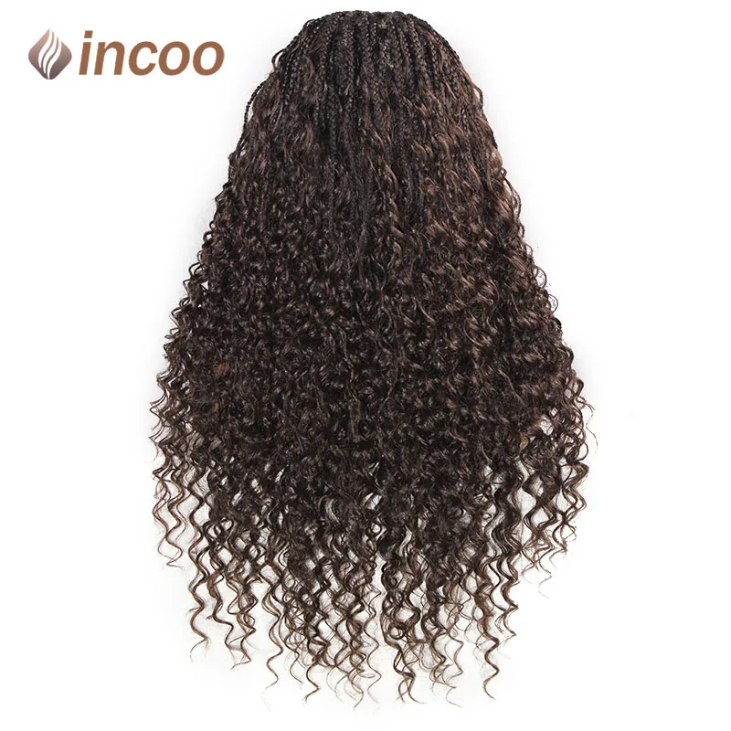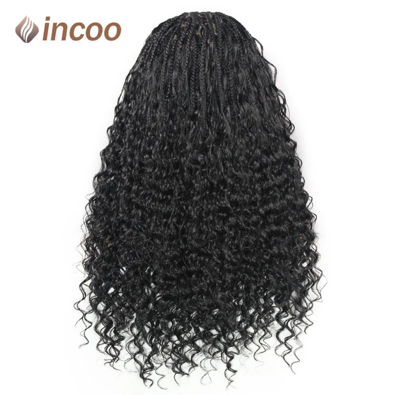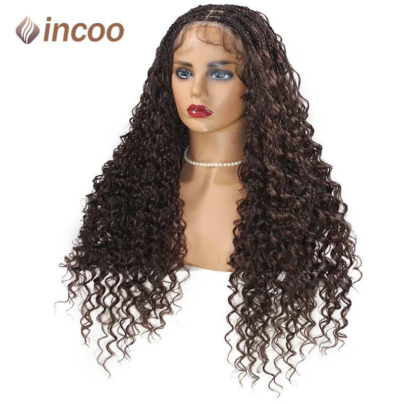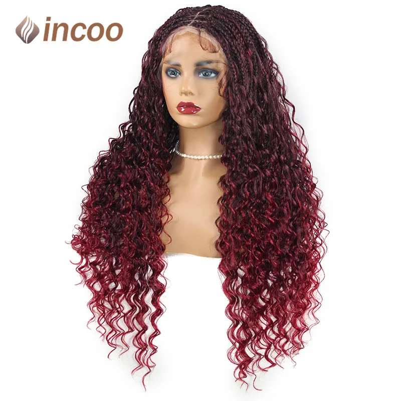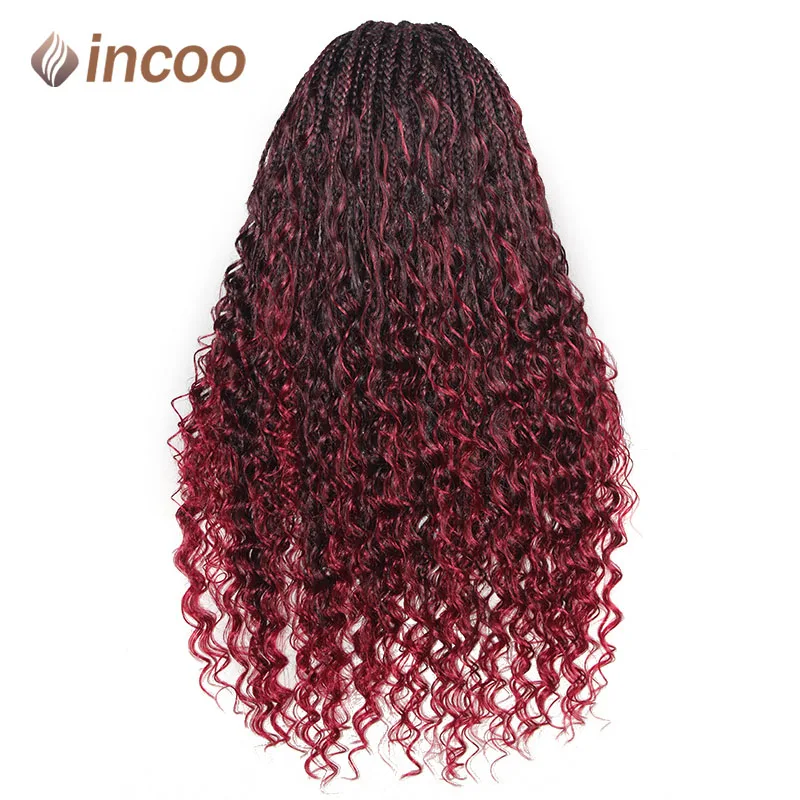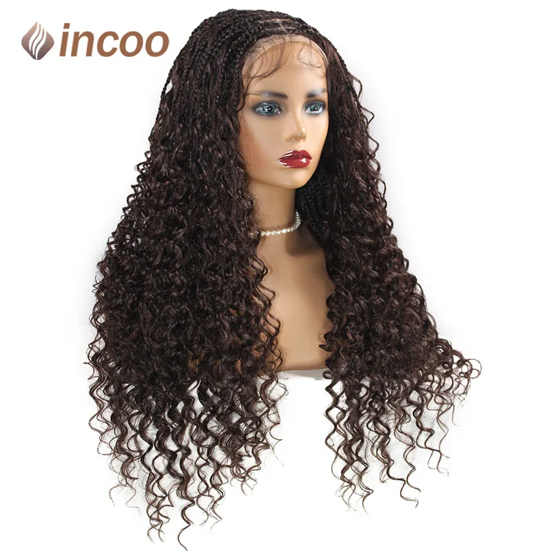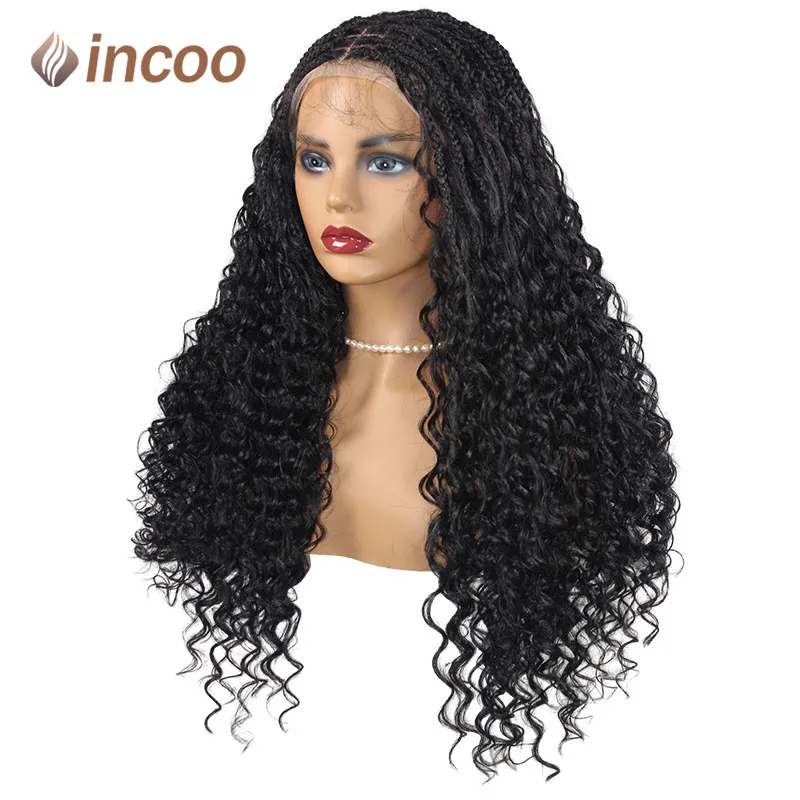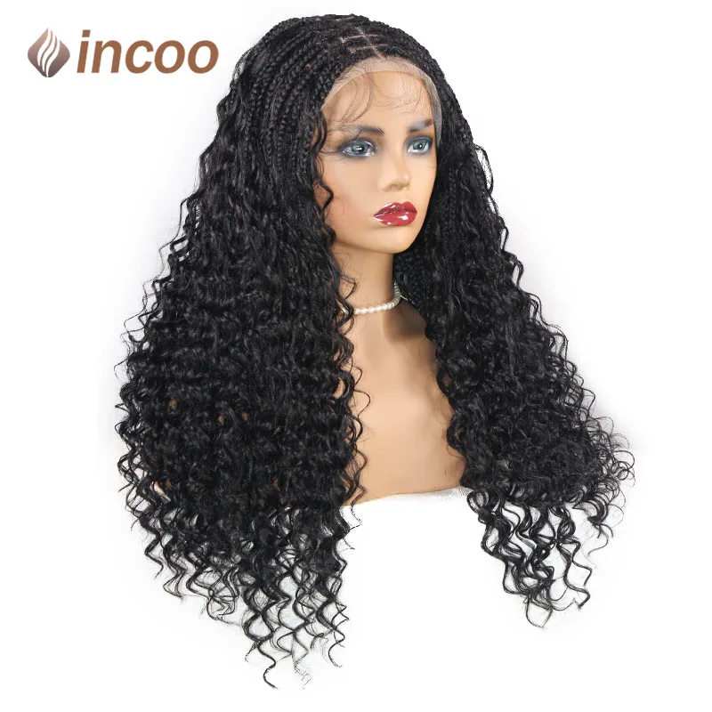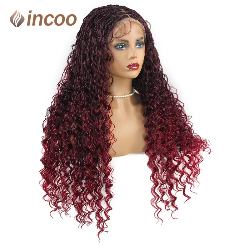 24'' Bohemia Full Lace Box Braided Wig Synthetic Lace Frontal Wig for Braiding Wih Curly Hair Ombre Blonde Goddess Faux Locs Wig