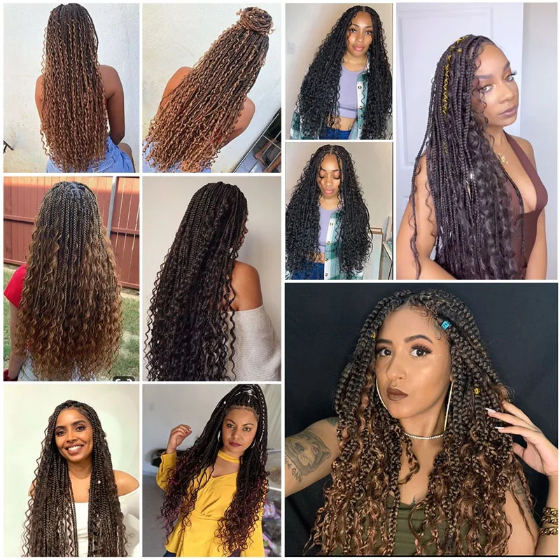 24'' Synthetic Bohemia Full Lace Box Braided Wig Lace Frontal Wig for Braiding Wih Curly Hair Ombre Blonde Goddess Faux Locs Wig
