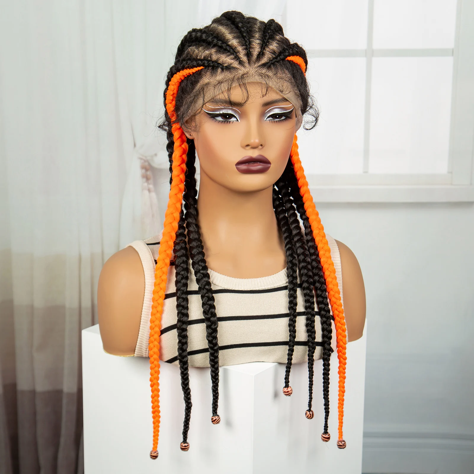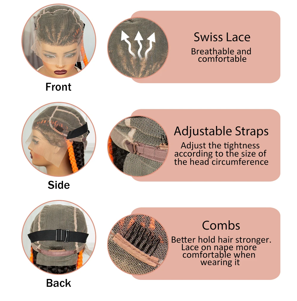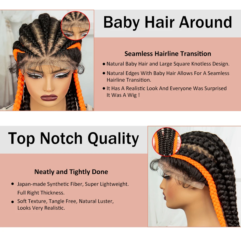 24inch Cornrow Braided Wigs with Orange Braiding Hair Synthetic Full Lace Braids Wig For Black Women Knotless Braided Lace Wigs