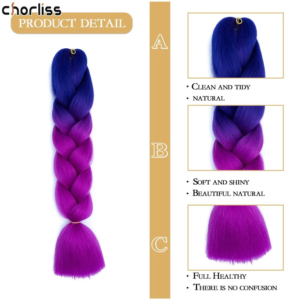 24inch Long Synthetic Hair Braids Kanekalon Ombre Synthetic Braiding Hair Braids Black Pink Crochet Braiding Box Braid Hair