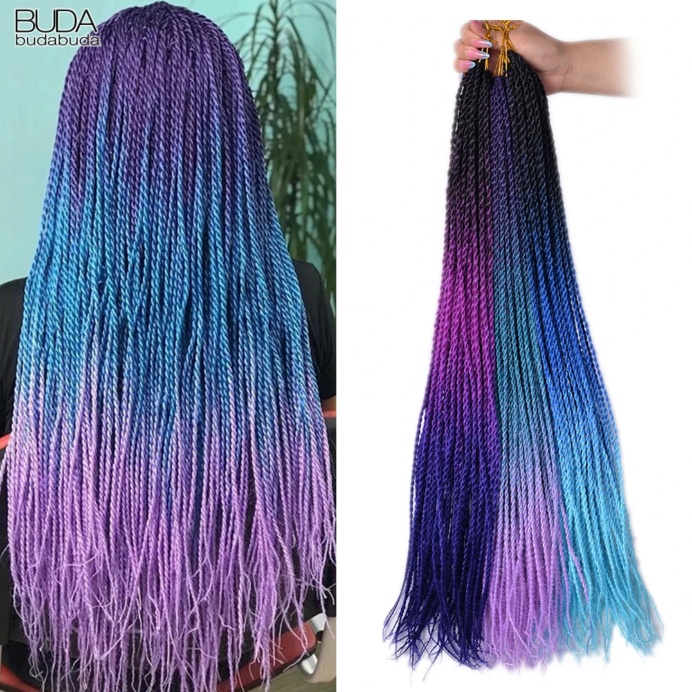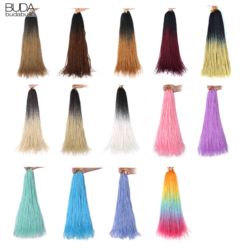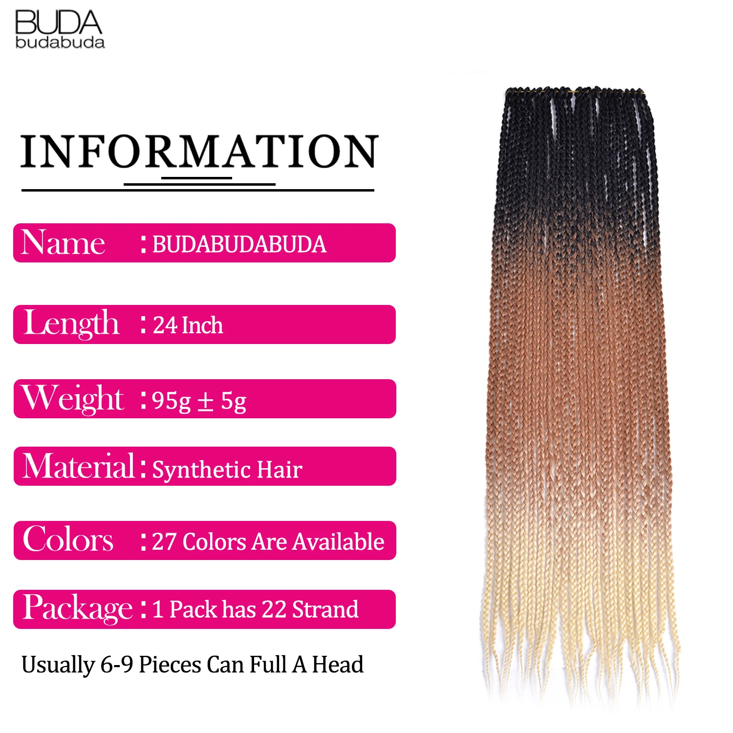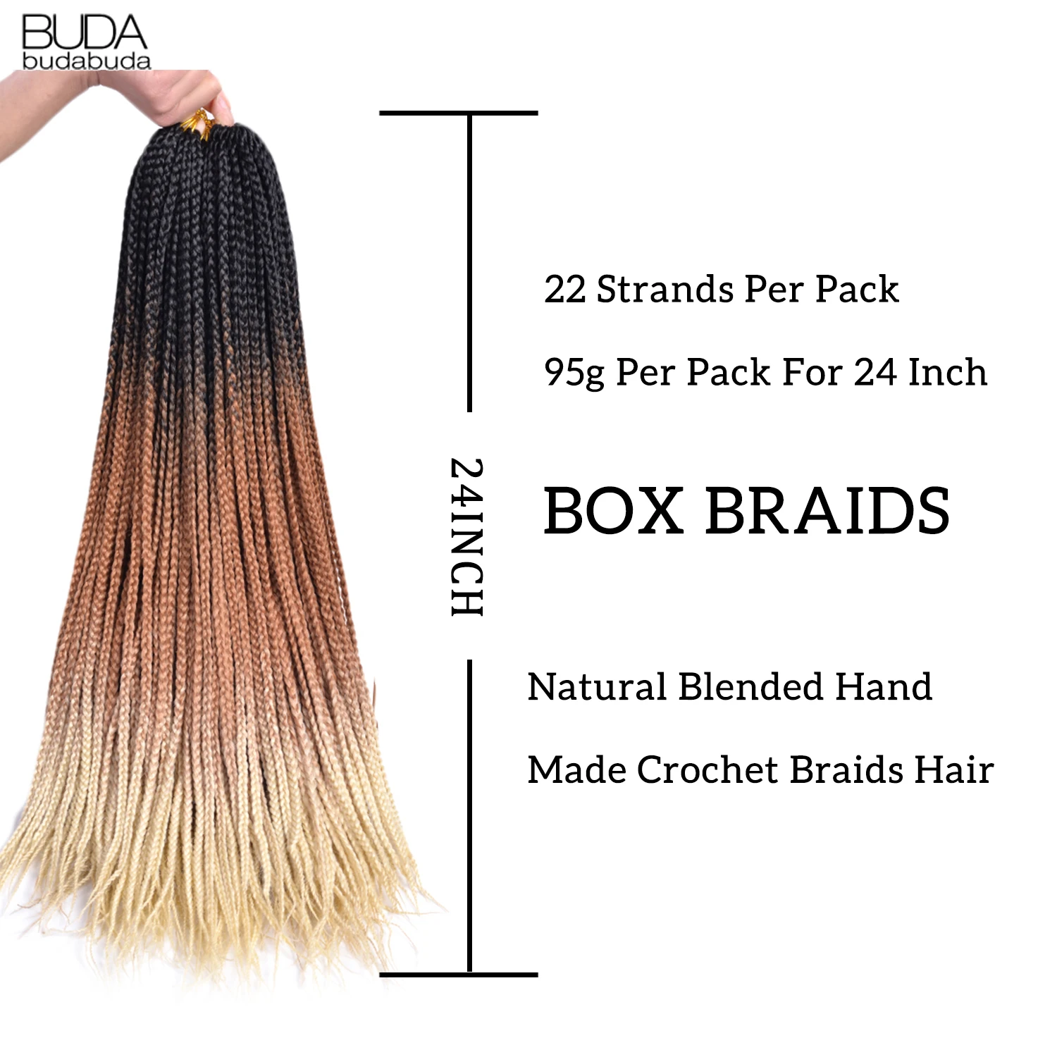 24inch Ombre Box Braids Crochet Hair Long Pre-Looped Crochet Braids For Women Girls Synthetic Braiding Hair Extensions BUDABUDA