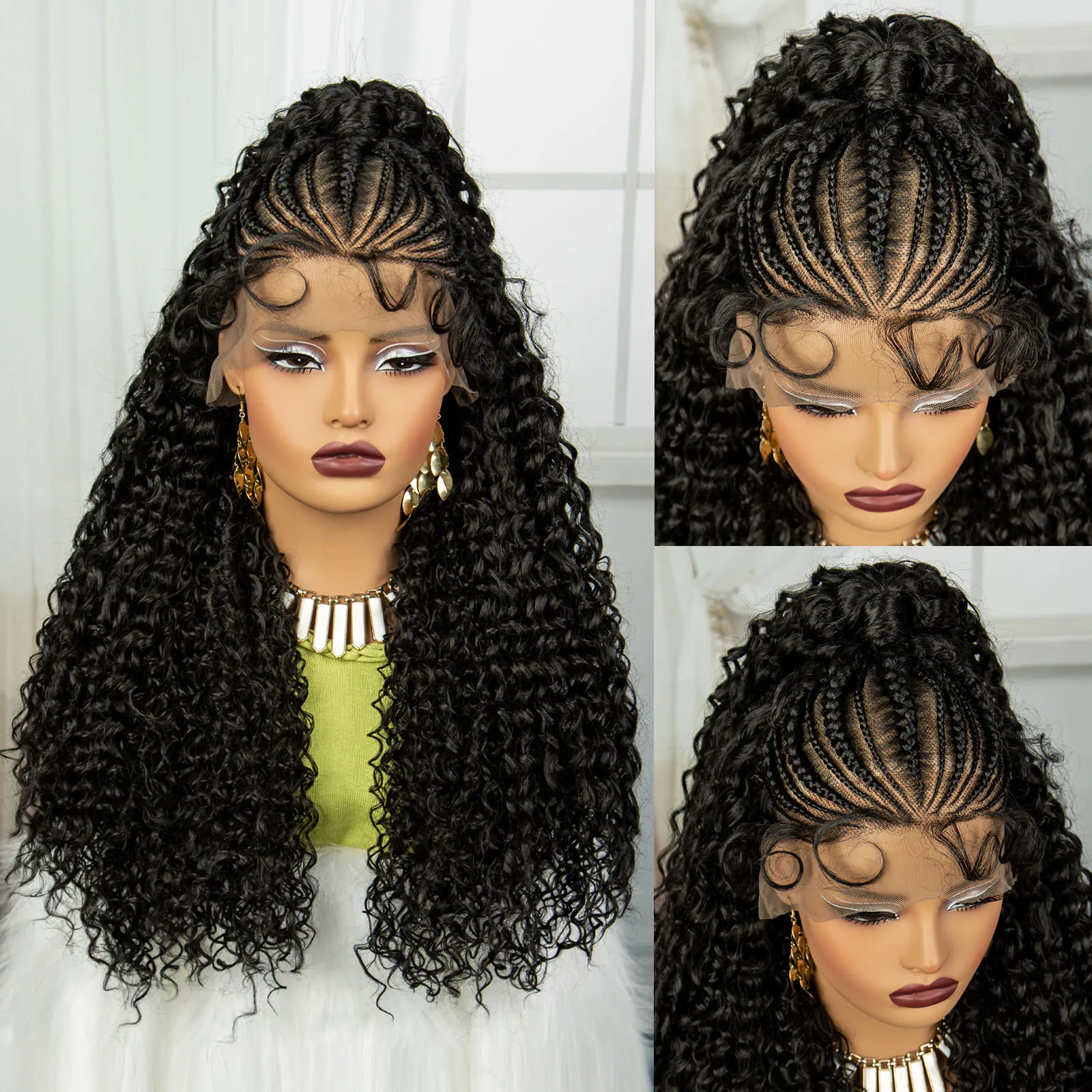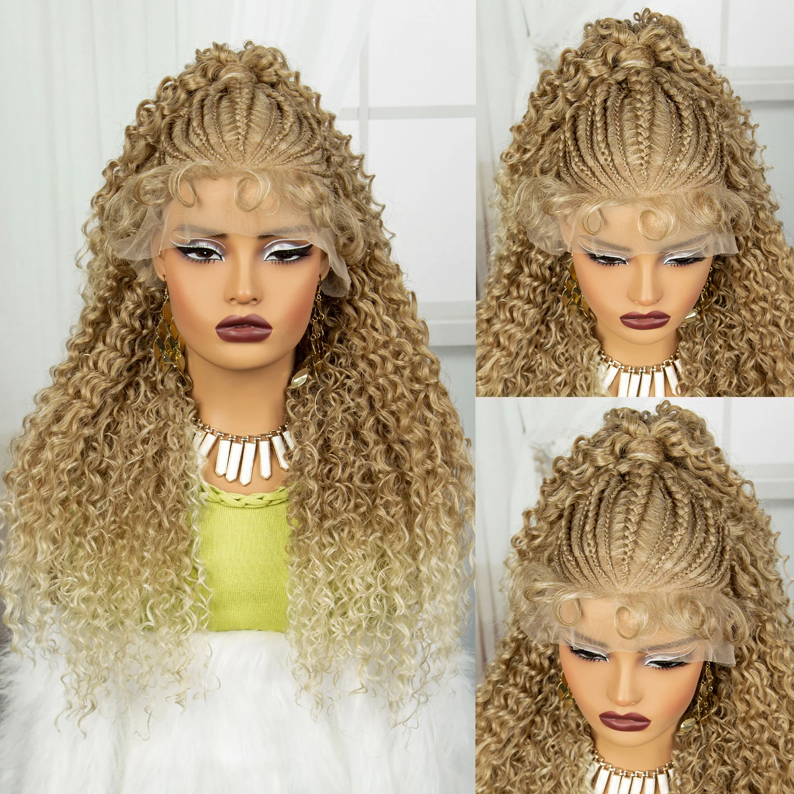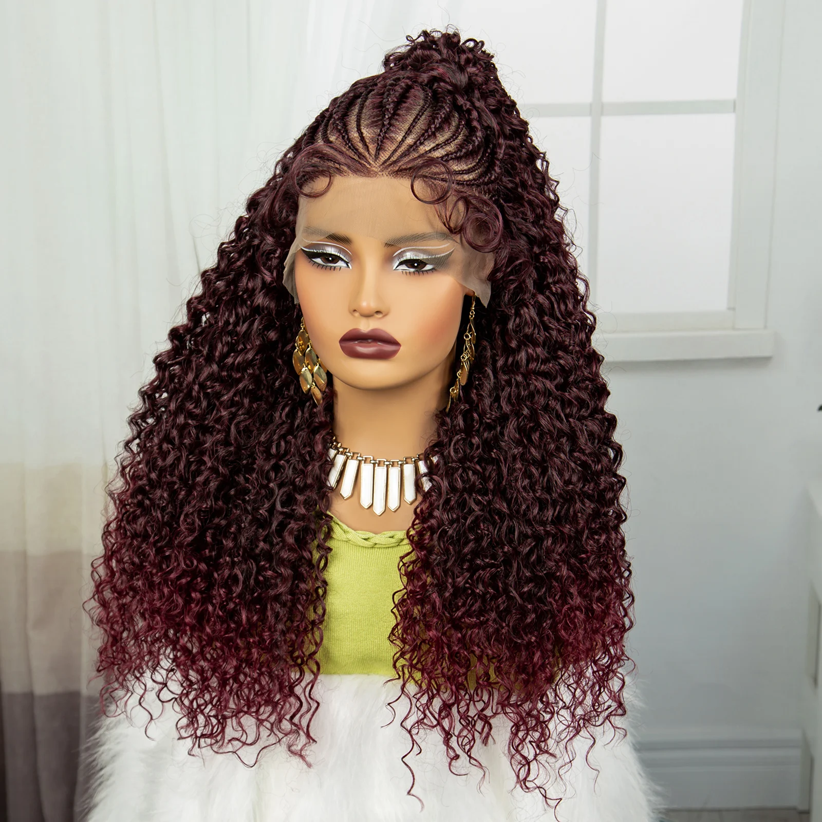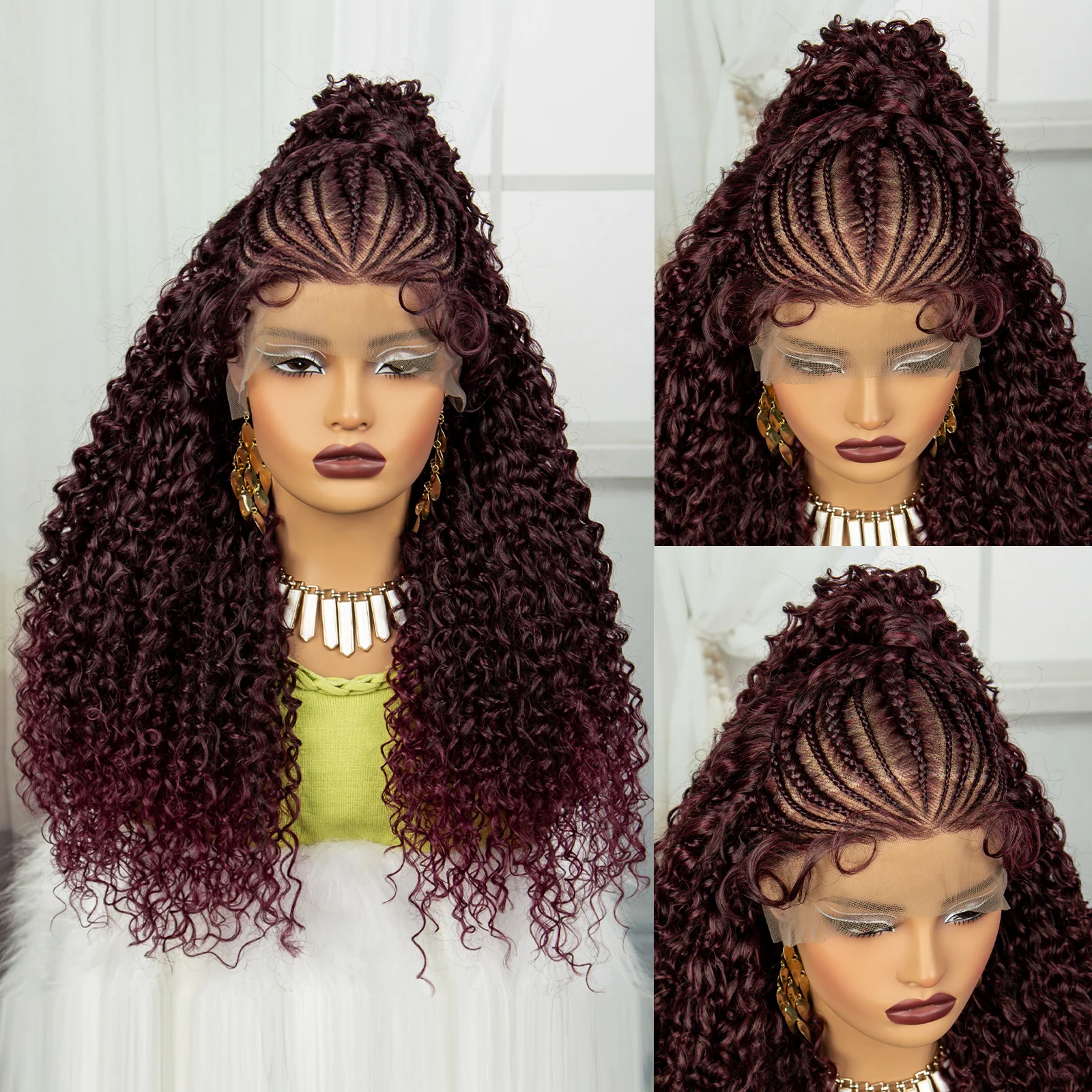 24Inch Synthetic Hair Wig Transparent 13x6 Lace Frontal Braided Wig 1B30 Color Curly Cornrow Braids Wig with Baby Hair for Women