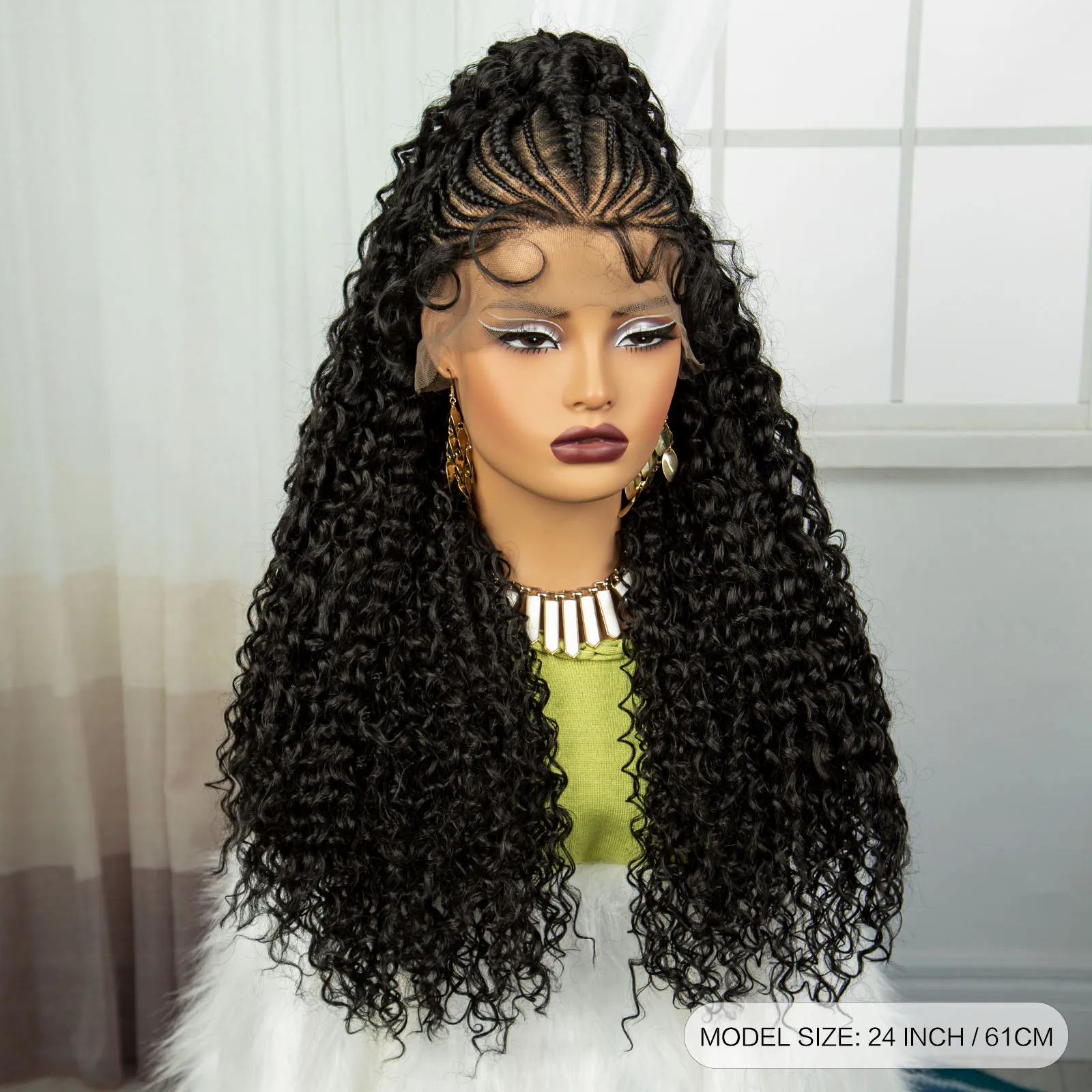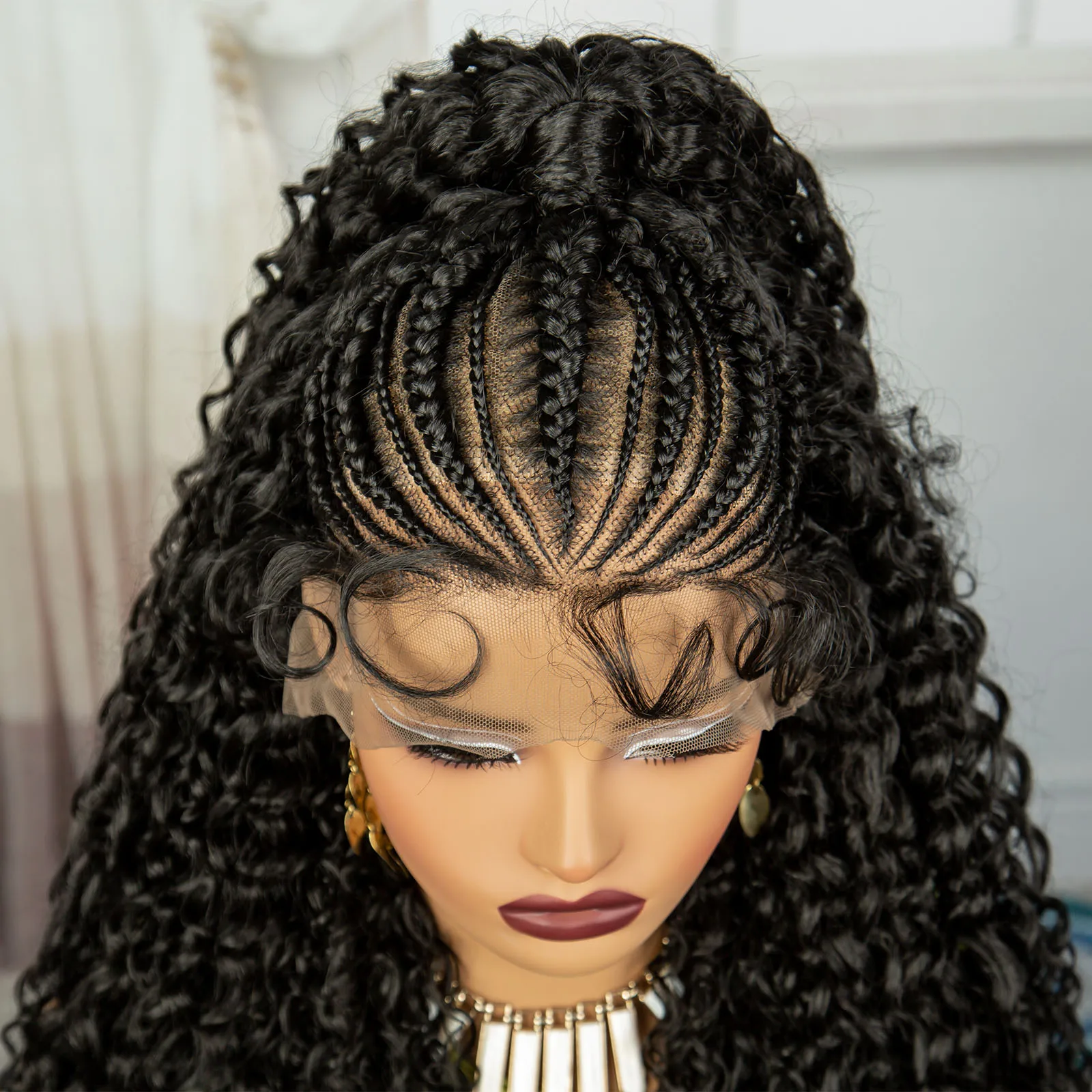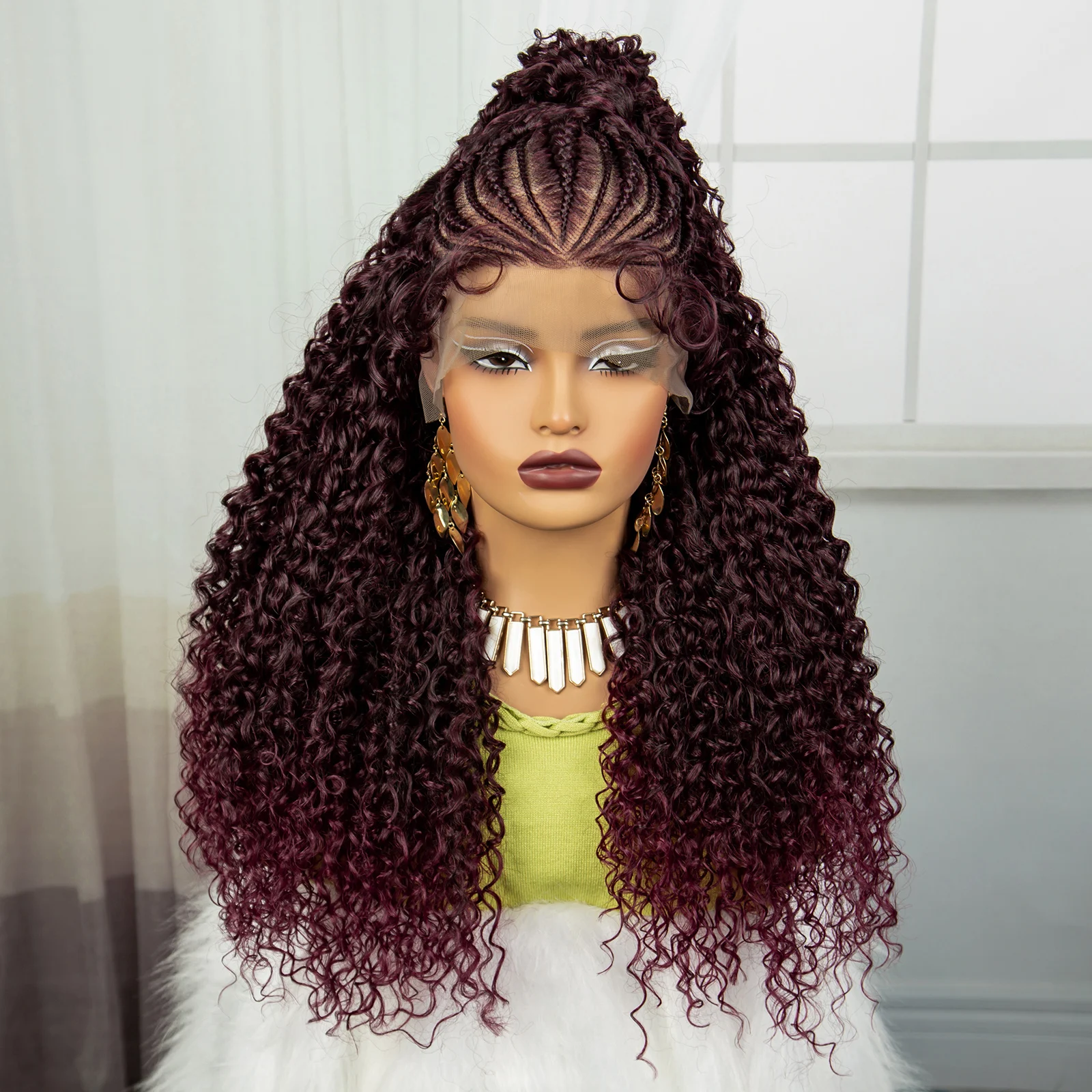 24Inch Synthetic Hair Wig Transparent 13x6 Lace Frontal Braided Wig 1B30 Color Curly Cornrow Braids Wig with Baby Hair for Women
