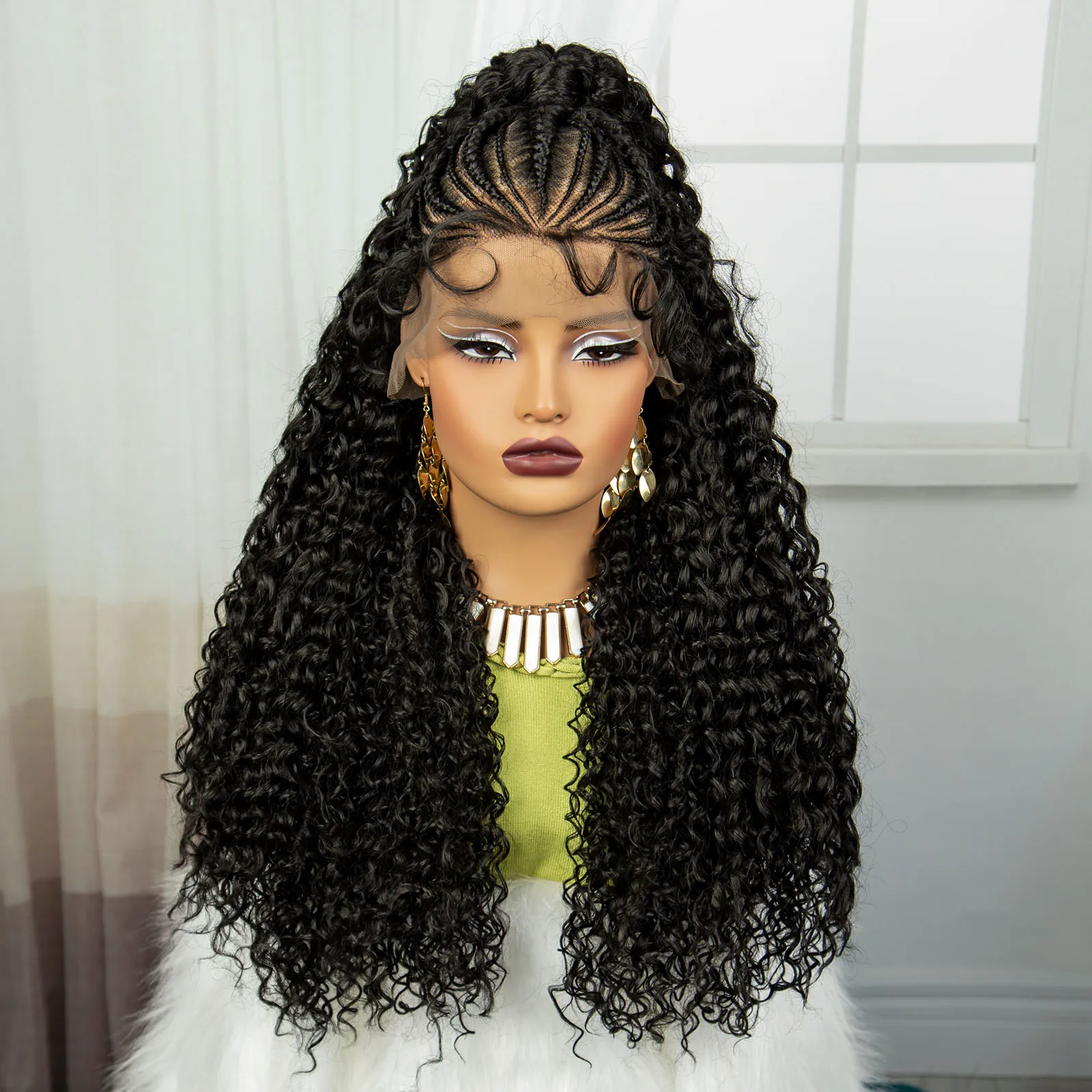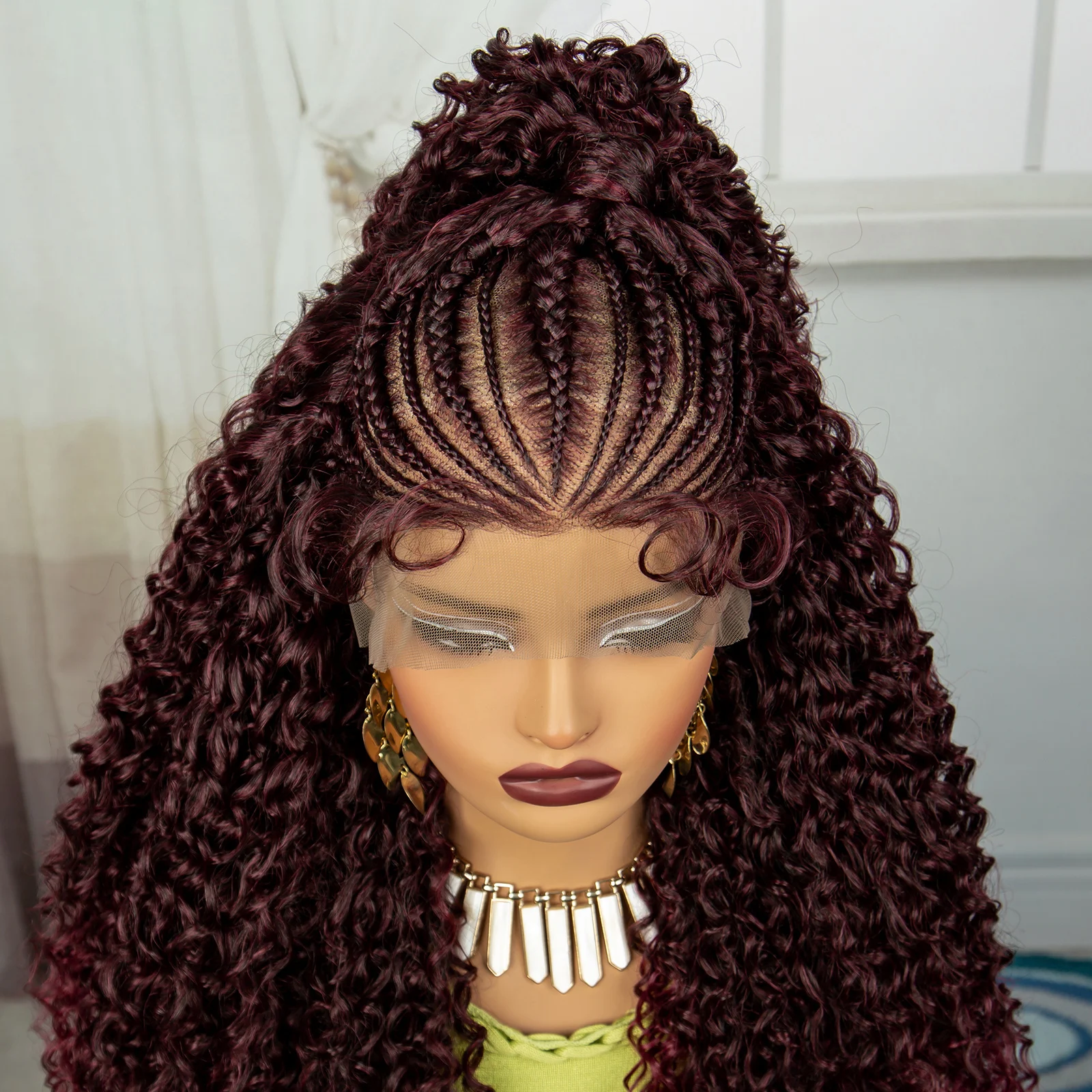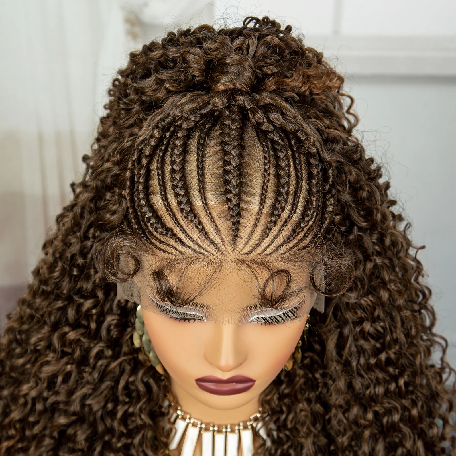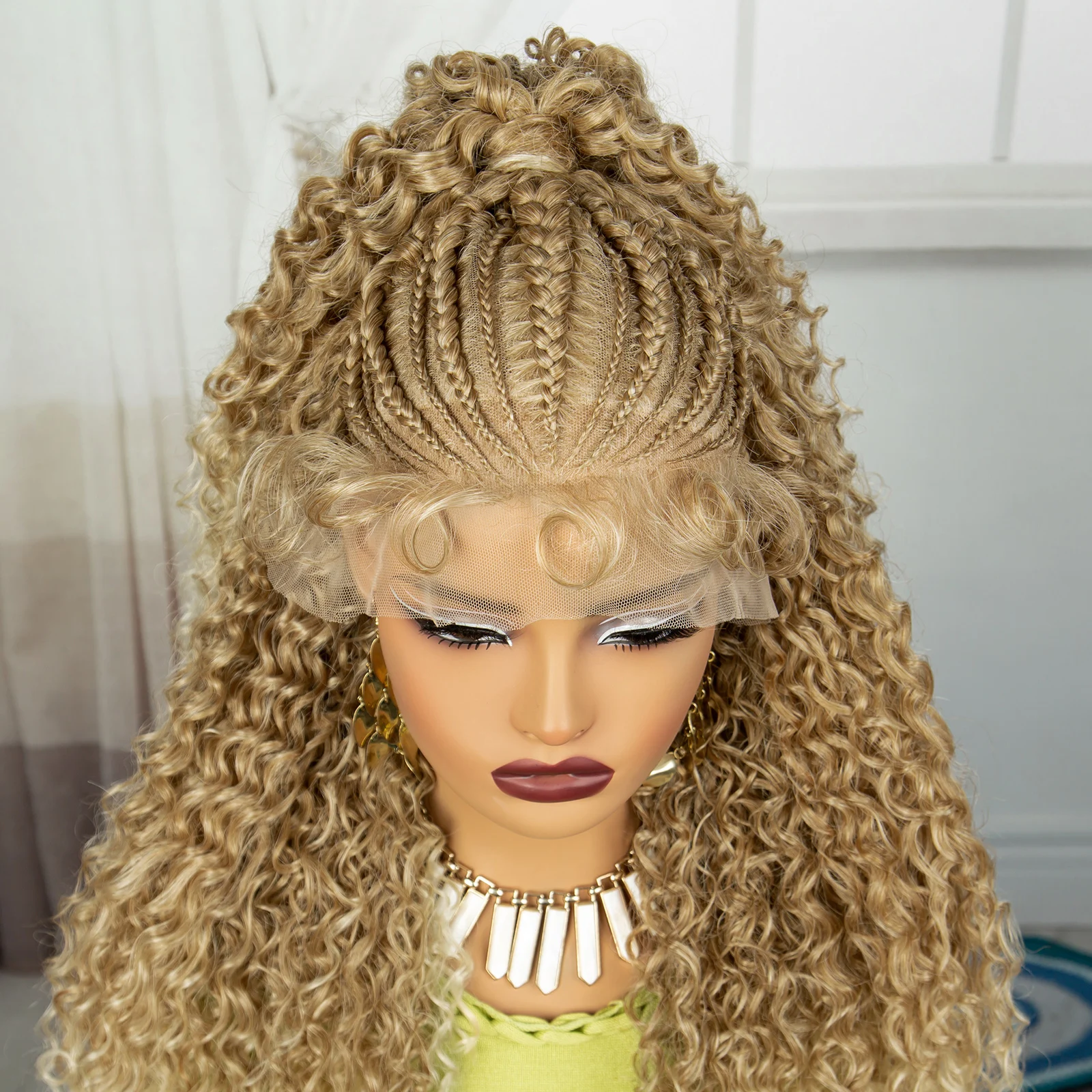 24Inch Synthetic Hair Wig Transparent 13x6 Lace Frontal Braided Wig 1B30 Color Curly Cornrow Braids Wig with Baby Hair for Women