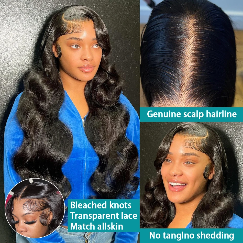 250 Density 30 Inch HD Transparent 13x4 13x6 Pre Plucked Body Wave Lace Frontal Wig Human Hair Brazilian Hair Wig Women