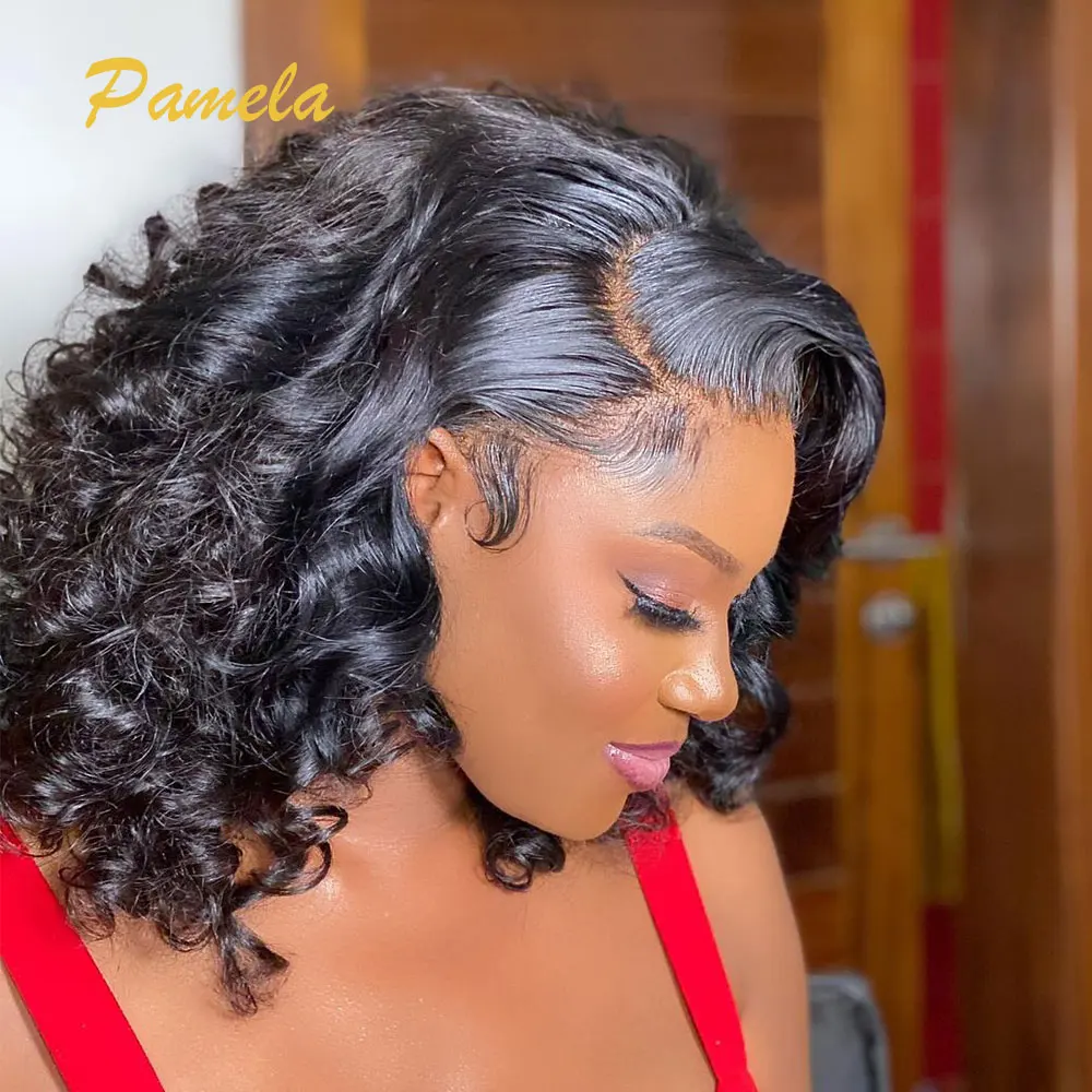 250% Density Short Loose Deep Wave Bob Wear and Go Glueless Wig Brazilian 360 Transparent Lace Frontal Human Hair Wig Preplucked